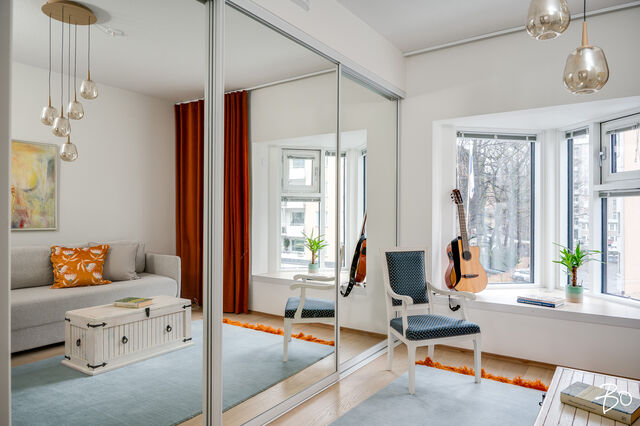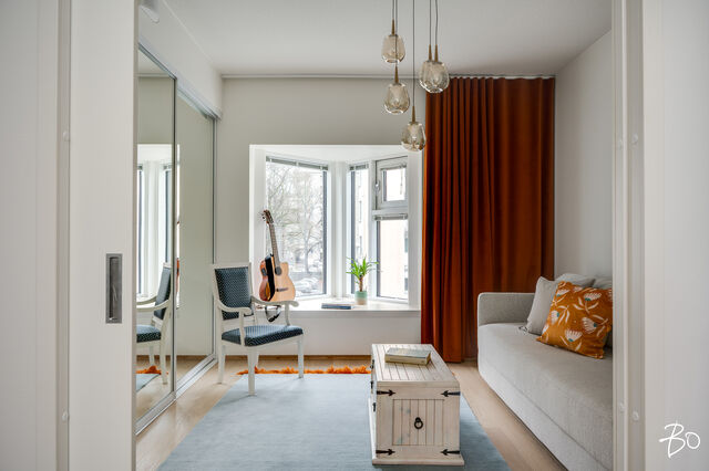 Seinät maalattu, lattia 1-sauvainen lankkuparketti (Timberwise).