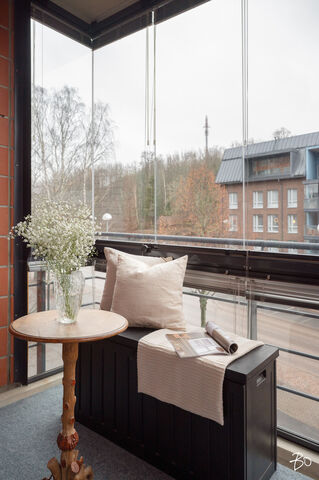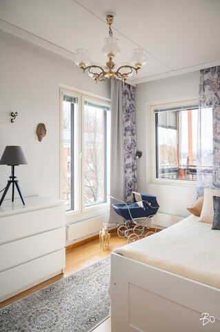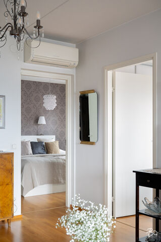 pienenä kesähuone, johon saat laitettua kesäkalusteet, kesäkukat ja paljon muutakin kesään kuuluvaa. Toinen lasitetuista parvekkeista on isomman makuuhuoneen yhteydessä ja sinne on ihana laittaa kesäajaksi vaikkapa iso nojatuli ja viettää aikaa lasitetulla parvekkeella kesästä nauttien ja lueskellen tai äänikirjaa kuunnellen. Tässä kodissa on huomioitu myös se, että kesällä asunto saattaa lämmetä varsinkin pitempien hellejaksojen aikana ja siksi asuntoon on asennettu myös ilmalämpöpumppu viilennykseen.