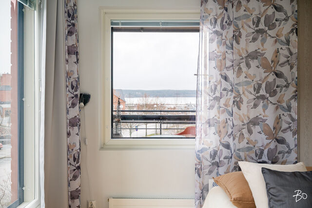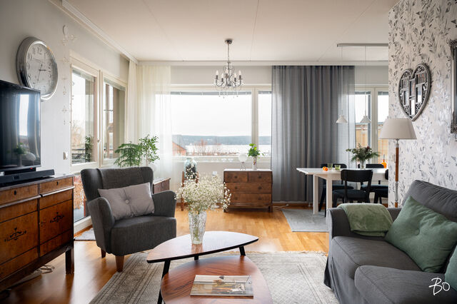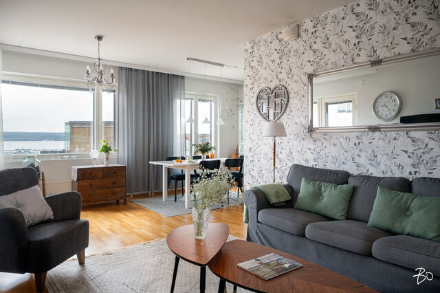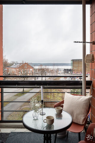 Olohuoneesta sekä lasitetulta parvekkeelta on hyvä näköala Vesijärvelle ja Satama-alueelle sekä Sibeliustalolle.