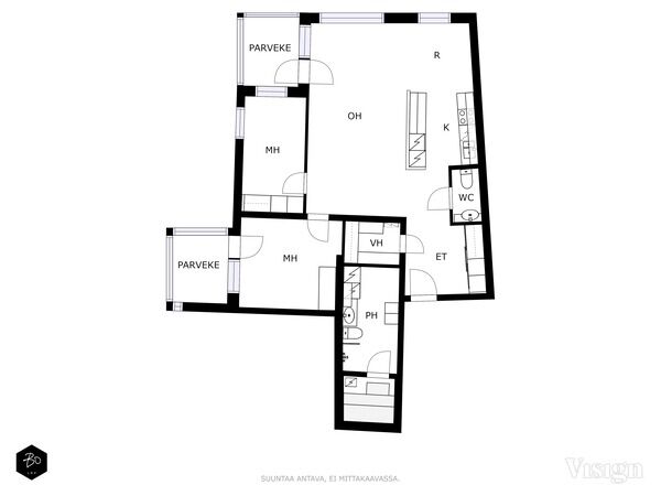 Lattiassa on tammiparketti. Olohuoneesta on käynti pääparvekkeelle.