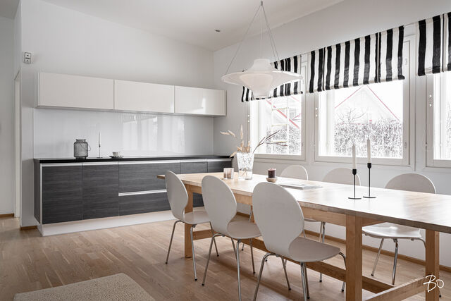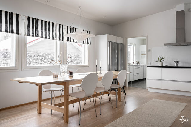 Nyt on vapautumassa seuraaville omistajille tyylikäs, käytännöllinen ja hyvin pidetty omakotitalo huippusuositulta Metsokankaan alueelta. Tämä yksitasoinen 121,5 neliöinen koti hurmaa toimivalla pohjaratkaisullaan. Talosta löytyy kolme makuuhuonetta, joista pieninkin on yli kymmenen neliön kokoinen. Olohuoneesta löytyy takka lämpöä ja tunnelmaa tuomaan. Kodin ehdottomiin kohokohtiin kuuluu tilava ja hyvin varusteltu keittiö, josta todellakin löytyy kaappi- ja työskentelytilaa sekä paikka isommallekin ruokapöydälle. Käytännöllisyyttä tuo erillinen kodinhoitohuone, josta on myös suora kulku pihalle. Kylpyhuoneen yhteydessä on tietysti oma sauna.