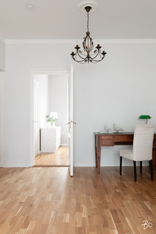 Huoneistossa on säilytetty juuri sopiva määrä alkuperäistä Töölöläistä 30-luvun tunnelmaa.