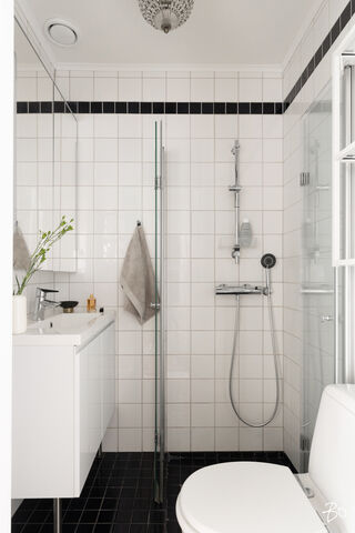 Kylpyhuoneessa on lattialämmitys sekä -22 uusitut kalusteet ja paikka pyykinpesukoneelle.