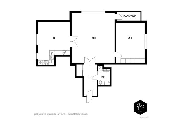 Valoisa huoneisto on päätyasunto, joten ikkunoita löytyy kolmeen suuntaan ja lisäksi olohuoneen yhteydessä on mukavan kokoinen parveke.