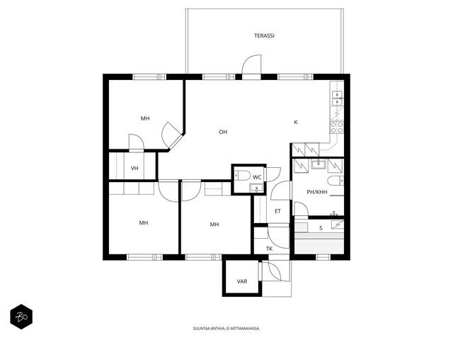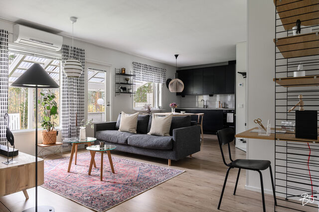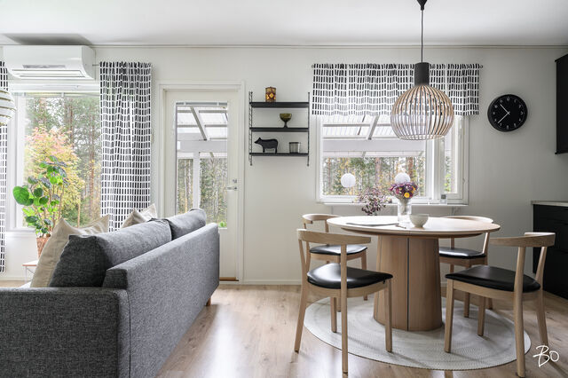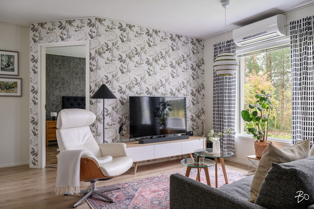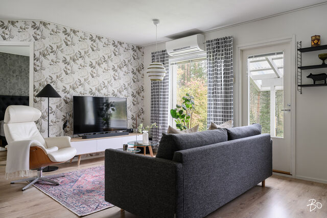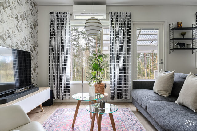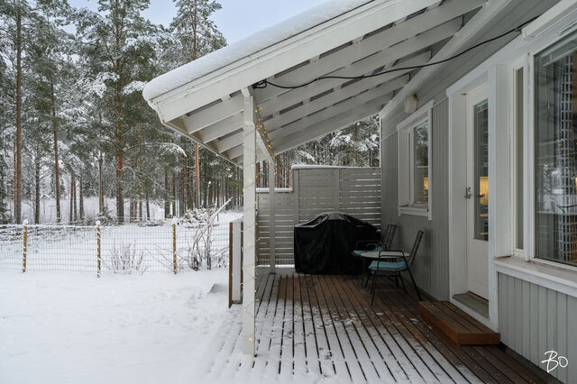 Tämä vuonna 2001 rakennettu koti tarjoaa avaran ja valoisan pohjaratkaisun, jossa olohuone ja keittiö yhdistyvät saumattomasti muodostaen kodikkaan keskuksen arjen elämälle. Vuoden 2023 aikana uusittu tunnelmallinen keittiö kutsuu innostumaan ruoanlaitosta ja yhdessäolosta. Keittiöön on remontin yhteydessä valittu laadukkaat kodinkoneet. Olohuoneesta on kulku takapihan katetulle terassille. Täältä avautuvat loistavat lenkkimaastot aivan omalta pihalta! Tässä yksitasoisessa kodissa on kolme makuuhuonetta, jotka ovat tilavia. Säilytystilasta kaapistojen lisäksi huolehtii hyvänkokoinen vaatehuone sekä ulkovarasto, joka sijaitseekin ulko-oven vieressä. Sähkölämmitystä tukee energiatehokas ilmalämpöpumppu.