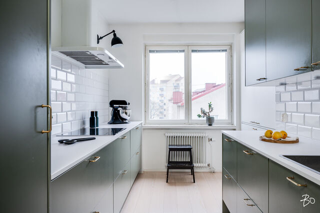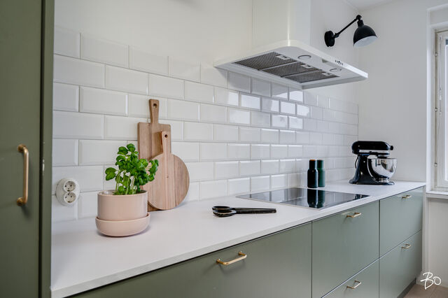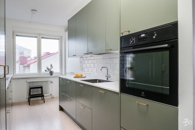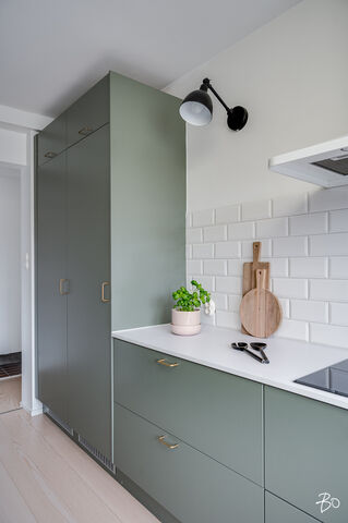 Varustelu: jääkaappi, pakastin, induktioliesi, uuni (2025), astianpesukone, kaapistot, aamiaiskaappi.