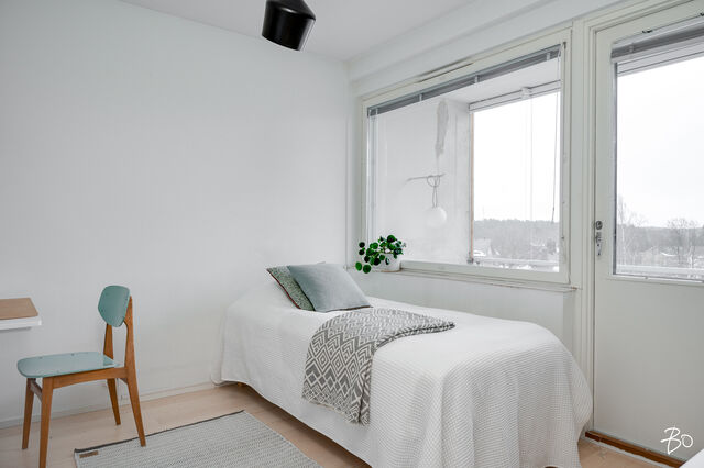 Yhdestä makuuhuoneesta kulku parvekkeelle.