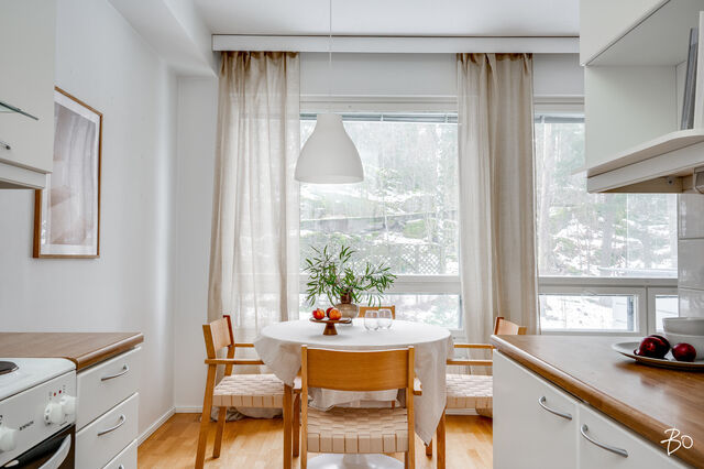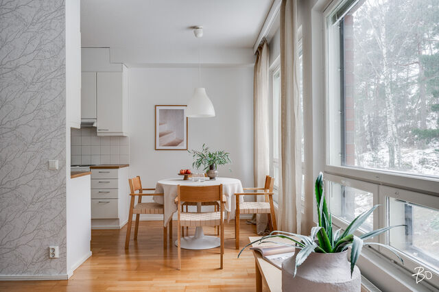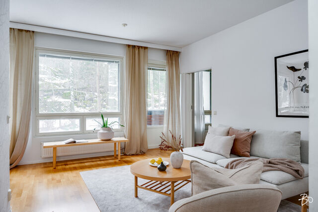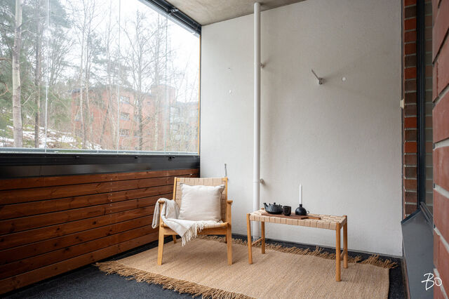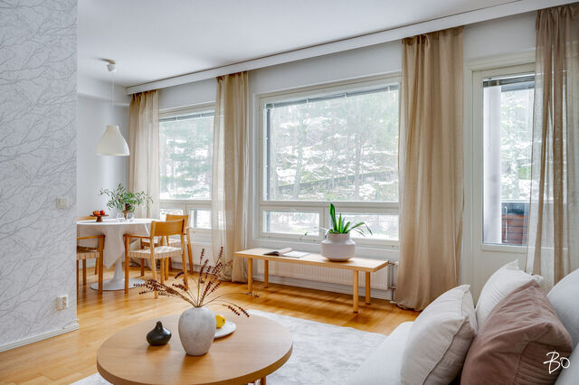 Asunnon 54,5 neliötä on suunniteltu tehokkaasti ja arkea sujuvoittavasti. Avarasta olohuoneesta on käynti tilavalle parvekkeelle, josta avautuvat rauhoittavat näkymät metsäiselle rinteelle täydellinen paikka aamukahville tai rentoutumiseen. Olohuoneen yhteydessä oleva avokeittiö sulautuu luontevasti oleskelutilaan ja tarjoaa toimivat puitteet niin arkeen kuin yhdessäoloon.