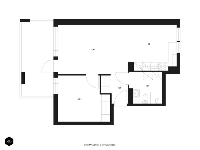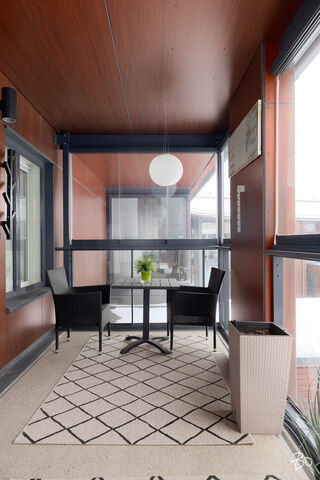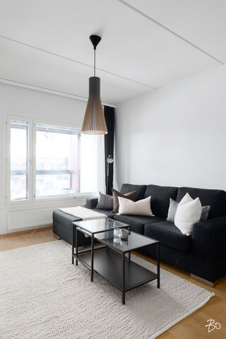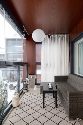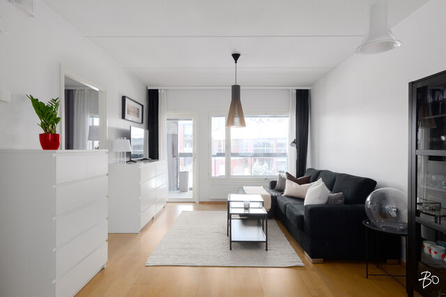 Olohuone on helposti kalustettava ja sieltä on käynti lasitetulle parvekkeelle, joka tuo mukavasti lisätilaa pitkälle keväästä syksyyn. Parveke toimii luontevana jatkeena oleskelutilalle - paikkana aamukahville, viherkasveille tai iltahetkille.