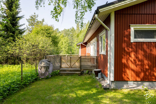 Etusivu / Uusimaa / Siuntio / Solgårdintie 9 1 / 1 Solgårdintie 9 Gårdsböle, Siuntio | Omakotitalo | 4mh+oh+k+kph+s++2wc+khh+terassi+at 264 000 € Velaton hinta 118,5 m2 Asuinpinta-ala 150,0 m2 Kokonaispinta-ala 1991 Rakennusvuosi Rauhallinen, sopusuhtainen, yksitasoinen talo maalaismaiseman ympäröimänä.Luonto on täällä tärkeässä roolissa ja isolla tontilla voi viljellä ja harrastaa puutarhatöitä niin halutessa. Asuintilat ovat selkeät ja avarat.Paljon parannuksia on vuosien varrella tehty, mm. laminaattia lattioihin, pinnat maalattu, keittiön kaapit, tasot ja kodinkoneet uusittu, ikkunat, kylpyhuone ja sauna, ulko-ovet ja peltikatto on uusittu, salaojat on uusittu ja ulkoverhouksen maalaus.Täällä on hyvä asua kertoo omistaja.Ota yhteyttä Kerstiniin, 0400 487 478 tai kerstin@bo.fi ja tule asumaan kehittyvään Siuntioon.Ett väl fungerande hus med en stor tomt och bra läge. Kiinnostaako tämä kohde?Ota meihin yhteyttä tai jätä viesti Kerstin Ståhlberg asuntomyyjä, partner 0400 487 478 kerstin@bo.fi Tutustu välittäjään RakennusKäyttöönottovuosi1991RakennusmateriaaliPuuKattotyyppiHarjakattoKatePeltiKaton kuntoKatto uusittu 2018Asuinpinta-ala118,5 m2 (150,0 m2)Lisätietoja pinta-alastaPinta-alatiedot on saatu rakennuslupapiirustuksista eikä niitä ole tarkistusmitattu, joten ne saattavat poiketa olennaisestikin nykymääräysten mukaan mitattavista pinta-aloista. Kerrosala 132m2. Muut tilat autotalli ja varasto. Asuinpinta-ala ei ole mitattu. Suositellaan tarkistus mittausta.Kerrokset1Muut tilat31,5 m2Lämmitysjärjestelmän kuvausPuu, sähkö, ilmalämpöpumppuLämmön jakotapaSähköinen lattialämmitys, sähköinen kattolämmitysHuoneluku4mh+oh+k+kph+s++2wc+khh+terassi+atKeittiön muut varusteetAstianpesukone, liesituuletin / suodatinLiesiKeraaminen liesi, leivinuuni, puuliesi, erillisuuniKeittiön työtasojen materiaaliLaminaattiKeittiön lattiamateriaaliLaminaattiKeittiön seinien materiaaliMaalattuPesutilojen kuvaus, lisätiedot ja varustusKylpyhuone uusittu kokonaan 2012.Kylpyhuoneen varustusLattialämmitys, wc-istuin, suihkuKylpyhuoneen lattiamateriaaliLaattaKylpyhuoneen seinämateriaaliKaakeliSaunaAsunnossa on saunaSaunan kuvaus, lisätiedot ja varustusSauna ja kiuas on uusittu 2012.WC-tilojen kuvausSuihkua ei ole käytetty nykyisen omistajan aikana (vuodesta 2012 alkaen).Varustus: lattiakaivo, suihkuLukumäärä: 2Lattiamateriaalit: muoviSeinämateriaalit: muoviKodinhoitohuoneVarustus: pesukoneliitäntä, pesuallas, lattiakaivoLattiamateriaalit: laattaSeinämateriaalit: maalattuMakuuhuoneen kuvaus, lisätiedot ja varustusLukumäärä: 4Lattiamateriaalit: laminaattiSeinämateriaalit: maalattuOleskelutilojen kuvaus, lisätiedot ja varustusKulku terassille, leivinuuni/puuhella (takkaimuri asennettu) ja ilmalämpöpumppu. Lattiamateriaalit: laminaattiSeinämateriaalit: maalattuTulisijaLeivinuuni ja puuhellaTakkatiedotMuuMuut säilytystilatVaatehuoneTehdyt korjaukset2024: alapohjan kunnostustyöt 2022: kylpyhuoneen/kodinhoitohuoneen termostaatit vaihdettu. 2019: pihavalo asennettu. 2018: peltikatto uusittu, kattoturvatuotteet ja lumiesteet. Räystäskourut ja syöksyt uusittu. 2017: ilmalämpöpumppu uusittu. 2015: ulkoverhouksen maalaus. 2012: pintaremontti, pinnat maalattu ja laminaattia lattioihin, keittiön kaapit, tasot ja kodinkoneet uusittu, ikkunat uusittu, puhallusvillan lisäys yläpohjaan, kylpyhuone ja sauna uusittu, hanat ja sekoittajat (ei erillisen wc:n kalusteet) vaihdettu, lämminvesivaraaja uusittu (varoventtiili vaihdettu 2023), patolevy asennettu, vierustäytöt uusittu, sepelikaista laitettu ja maanpinnan kallistukset korjattu, salaojat uusittu ja tarkastuskaivot asennettu. Muuta kauppaan kuuluvaaNuohous tehty 06/2024.Kohteen kuvausRauhallinen sijainti, toimiva talo ja hyvä pohja. Makuuhuoneet ovat vähän erillään, on omaa yksityisyyttä. Harrastusmahdollisuudet lähellä. Naapureita on mutta ei liian lähellä. Tontilla reilusti tilaa, mahdollisuus vaikka pihasaunaan, grillikatokseen, autokatokseen, askarteluhuoneeseen/talousrakennukseen.KuntoTyydyttäväEnergiatodistusKylläEnergialuokkaD2018Lisätietoja energiatodistuksestaVoimassa 21.05.2034 saakka. KiinteistötiedotKiinteistötunnus755-422-1-16Kortteli/Kiinteistön nimiBethenTyyppiTilaTontin tyyppiTasamaatonttiTontin koko7 917,00 m2Tontin omistusOmaPanttikirjat250 000,00 €Lisätietoja tontistaIso tasamaatontti missä rakennukset ovat. Rakentamaton osio on rinnettäTie perilleVesijohtoKunnanViemäriOma, saostuskaivo, umpisäiliöRakennusoikeus, e-luku0.10Lisätietoja rakennusoikeudestaSiuntion kunta, tekninen osasto, 09 260 611 Muita tietojaPalvelutSiuntion asemalle on n. 6km matkaa missä löytyy lähipalvelut. Virkkalaan on matkaa n. 11km ja Lohjalle n. 19km mistä löytyy kaikki palvelut.KouluAleksis Kiven koulu 1-9lk. Sjundeå svenska skola 1-6kl.PäiväkotiJukolan päiväkoti, Lilla LottaLiikenneyhteydetLinja-auto ja juna Siuntion asemalta. Linja-auto Lappersintieltä. AsumiskustannuksetSähkölämmitys120,00 €Kiinteistövero490,25 €Muut maksut / lisätietoa maksuistaSähkön hinta riippuu sähkösopimuksesta; kulutus vaihdellut 11 000 - 16 000kWh. Syyskuusta 2024 alkaen Carunan sähkönsiirron hinnat: Perusmaksu 38,03 €/kk, Päiväsiirto 5,11 snt/kWh, Yösiirto 3,12 snt/kWh, Vero 2,82752 snt/kWh. HintaVelaton hinta264 000,00 €Myyntihinta264 000,00 € VapautuuSopimuksen mukaanMaksuehtoKäteinen. Sinua voisi kiinnostaa Asunnon hinta-arvio ja arviokäynti Asunnon hinta-arvio ja arviokäynti Mitä hinta-arvio maksaa tai miten arviokäyntiä varten kannattaa valmistautua? Katso vastauksemme usein kysyttyihin ky… Sneak Peek® Sneak Peek® Sneak Peek® -palvelumme on askeleen edellä! Löydä alueesi uusimmat ja upeimmat asunnot jo ennen kuin ne ilmestyvät as… Asuntovahti Asuntovahti Etsimässä uutta asuntoa? Aseta itsellesi Bo-asuntovahti. Saat tiedon heti, kun unelmiesi asunto tulee myyntiin. Bo Match Bo Match Kun asuntounelmat ja unelmien asunnot ko