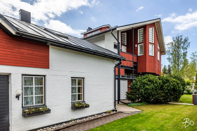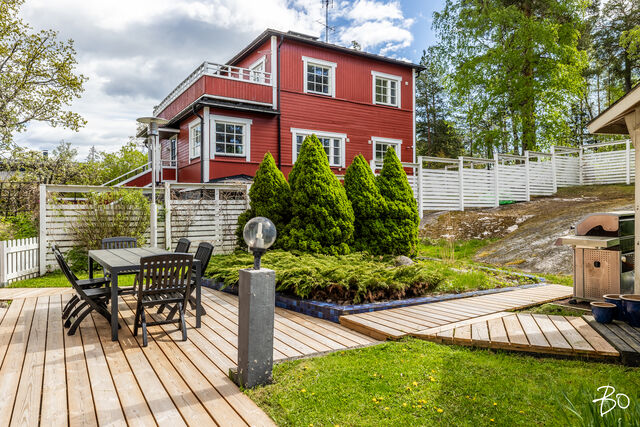 Etusivu / Uusimaa / Helsinki / Strömsintie 14 1 / 1 Strömsintie 14 Marjaniemi, Helsinki | Omakotitalo | 8 h, k, s, 273 m2, Sivurakennus (konttori 85m ja at 30 m2) yhteensä neliöitä 378 m2 930 000 € Velaton hinta 273,0 m2 Asuinpinta-ala 1986 Rakennusvuosi Ainutlaatuinen omakotitalo, jossa modernit mukavuudet yhdistyvät tyylikkääseen arkkitehtuuriin.Myyjä voi mahdollisesti ottaa vaihdossa pienemmän asunnon.Tämä uniikki koti tarjoaa tilaa suuremmallekin perheelle, sillä talossa on kahdeksan huonetta, moderni keittiö ja lisäksi erillinen sivurakennus varasto- ja toimistotiloineen. Talon sisätiloissa korostuvat korkeat katot ja skandinaavisen sekä industriaalisen tyylin taitava yhdistelmä. Olohuoneesta avautuu näkymä suojaisalle puutarhapihalle, joka tuo vehreyttä ja valoa sisätiloihin. Upea ja erittäin hyvin varusteltu keittiö, joka on remontoitu vähän aikaa sitten, on todellinen kodin sydän ja perheen kokoontumispaikka.Pohjaratkaisussa on otettu hyvin huomioon lapsiperheen tarpeet, kaikki 6 makuuhuonetta sijaitsevat yläkerrassa ja työhuone alakerrassa lähellä ulko-ovea. Avarat hallit lisäävät tilan tuntua.Erillinen piharakennus palvelee perheen erilaisia tarpeita. Autotalliin lisäksi siellä on toimistotilaa ja vintillä viihtyisät oleskelutilat. Kokonaisuudessaan neliöitä on reilusti yli 300 m2.Talo sijaitsee omalla tontilla, johon kuuluu vehreä ja hoidettu piha-alue sekä viihtyisä oleskelualue. Hyvin suunnitellulla piha-alueella on tilaa leikkiä ja pelata.Koti sijaitsee Marjaniemessä, lapsiperheiden suosimassa pientaloalueella, josta löytyvät erinomaiset ulkoilumahdollisuudet sekä päivittäispalvelut läheltä. Alue tarjoaa rauhallisen ympäristön, jossa lasten voi turvallisesti leikkiä ja kasvaa.Meri on lähellä, kävelymatkan päässä sekä uimaranta että venesatamat. Alue kutsuu nauttimaan luonnosta ja aktiivisesta elämäntavasta. Tämä koti on keskellä kaikkea, tarjoten samanaikaisesti suojaisan pakopaikan vilkkaan kaupungin sykkeestä.Tule tutustumaan ja ihastu tähän uniikkiin kotiin, joka tarjoaa kaikki edellytykset viihtyisään ja monipuoliseen asumiseen!Myynti/Försäljning/SalesVirpi Romu Matias von Schantz040 0610 018 0500 870 872virpi@bo.fi matias@bo.fi Kiinnostaako tämä kohde?Ota meihin yhteyttä tai jätä viesti Virpi Romu myyntijohtaja Ullanlinna, kiinteistönvälittäjä LKV, partner 040 061 0018 virpi@bo.fi Tutustu välittäjään Varaa aika kalenteristani RakennusKäyttöönottovuosi1986RakennusmateriaaliPuu, kiviKattotyyppiAuma-/harjakattoAsuinpinta-ala273,0 m2 (273,0 m2)Lisätietoja pinta-alastaSivurakennuksessa yhtiöjärjestyksen muk. 115 m2. Helsingin kaupungin epävirallisen rakennus- ja huoneistorekisterin muk. omakotitalo, huoneistoala 247 m2, kerros- ja kokonaisala 273 m2 talousrakennus, kerros- ja kokonaisala 70 m2 Yhtiön huoneistojen pinta-aloja ei ole tarkistusmitattu, tämän vuoksi pinta-alat saattavat poiketa olennaisestikin nykystandardien mukaan laskettavasta huoneistoalasta. Huoneiston todellinen asuinpinta-ala voi siten olla yhtiöjärjestyksessä ja esitteessä ilmoitettua suurempi tai pienempi. Kerrokset2Muut tilat0,0 m2Lämmitysjärjestelmän kuvausSähkö, ilmalämpöpumppuHuoneluku8 h, k, s, 273 m2, Sivurakennus (konttori 85m ja at 30 m2) yhteensä neliöitä 378 m2Keittiön kuvaus, lisätiedot ja varustusKeittiömaailman (Novart) keittiö vuodelta 2022. Kodinkoneet AEGKeittiön muut varusteetLiesituuletin, mikroaaltouuni, astianpesukoneLiesiKeraaminen liesiKeittiön työtasojen materiaaliKiviKeittiön lattiamateriaaliLaattaKeittiön seinien materiaaliMaalattuPesutilojen kuvaus, lisätiedot ja varustusRemontoitu 2012-2014 ja 2021Kylpyhuoneen varustusLattialämmitys, wc-istuin, suihku, peilikaappiKylpyhuoneen lattiamateriaaliLaattaKylpyhuoneen seinämateriaaliKaakeliSaunaAsunnossa on saunaSaunan kuvaus, lisätiedot ja varustusRemontoitu 2014. Kiuas uusittu 2023.WC-tilojen kuvausKiinteistöissä 5 WC:tä, joista 2 otettu pois käytöstä koska niille ei ole tarvetta.Lukumäärä: 5KodinhoitohuoneVarustus: pesukoneliitäntä, pesuallas, lattialämmitys, lattiakaivoLattiamateriaalit: laattaSeinämateriaalit: maalattuMakuuhuoneen kuvaus, lisätiedot ja varustusLukumäärä: 6Lattiamateriaalit: lautaSeinämateriaalit: maalattuOleskelutilojen kuvaus, lisätiedot ja varustusLattiamateriaalit: laminaattiSeinämateriaalit: maalattuMuut tilatTerassiTulisija2 x takkaTakkatiedotTakkaMuuta kauppaan kuuluvaaIlmalämpöpumppu/lattia ja katto.KuntoHyvä KiinteistötiedotTontin koko1 730,00 m2Tontin omistusOmaKäyttö- ja luovutusrajoituksetOsakkeenomistajat vastaavat itse hallitsemiensa rakennusten ja piha-alueen kunnostamisesta, ylläpidosta ja kaikista kustannuksista. 6§ Korjaus- ja kunnossapitovastuu Yhtiöllä ei ole asunto-osakeyhtiölain 78 §:n mukaista kunnossapitovastuuta huoneistojen osalta, vaan päätökset tekee ja siitä aiheutuneet kustannukset maksaa kunkin huoneiston hallintaan oikeuttavien osakkeiden omistaja. Muita tietojaPalvelutItis/Easton 1 kmKouluSuomen, Englannin ja Ruotsinkieliset koulut löytyvät 5 km sisältäPäiväkotiSuomen ja RuotsinkielisetLiikenneyhteydetBussi 200 m ja metro 1,1km AsumiskustannuksetMuut maksut / lisätietoa maksuistaSähkön kulutus 1.1-14.11.2024; talo 19,87 MWh, sivurakennus 7 747 kWh 2023; talo 25 201 kWh, sivurakennus 10 515 kWh Jätehuolto 164,47 €/kk, 1 krt viikossa sis. Biojäte Vesi n. 15 €/henk/kk, oma mittari Kiinteistövero 2 395,48 €/v Rakennusten vakuutukset 1 985,82€/v Esitetyt sähkön kulutusmäärät/asumiskustannukset perustuvat nykykäyttöön ja voivat siten olla suurempia tai pienempiä riippuen asukasmäärästä, asumistottumuksista sekä palveluntarjoajasta. Varainsiirtovero 1,5 % Taloyhtiön osakeluettelo on siirretty huoneistotietojärjestelmään. Ostajan tulee hakea omistusoikeuden rekisteröintiä Maanmittauslaitokselta kaupan jälkeen. Ostaja vastaa omistusoikeuden rekisteröintikustannuksista, mahdollisista osake