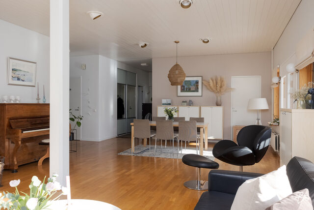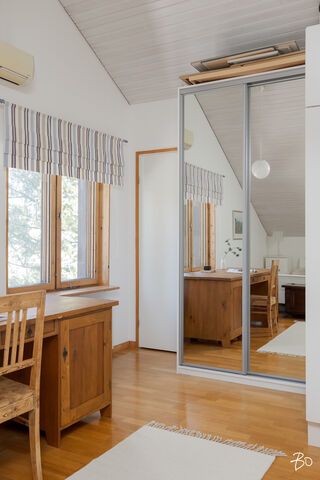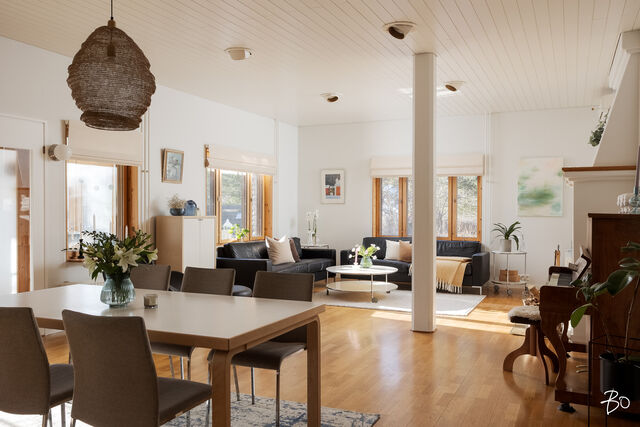 Etusivu / Keski-Suomi / Jyväskylä / Vainionkatu 22 1 / 1 Vainionkatu 22 Mäki-Matti, Jyväskylä | Omakotitalo | 5h,k,s,kph,khh,aula,autotalli,lasikuisti,terassi,parveke,varasto 415 000 € Velaton hinta 199,0 m2 Asuinpinta-ala 242,0 m2 Kokonaispinta-ala 1984 Rakennusvuosi Bo! Tervetuloa tutustumaan uniikkiin omakotitaloon, joka sijaitsee halutulla Mäki-Matin alueella Jyväskylässä - tällainen huippusijainnilla varustettu kaunis koti on vain harvoin tarjolla ja odottaa juuri sinua!Tämä kahteen kerrokseen jakautuva vuonna 1984 käyttöön otettu omakotitalo tarjoaa tilaa koko perheelle. Kodissa on mm. neljä tilavaa makuuhuonetta, tilava keittiö, sauna, kodinhoitohuone ja valoisa yläkerran aula. Sisustus on monipuolinen yhdistelmä kauniita puupintoja ja upeita ikkunalautoja, mikä luo kotiin kodikkaan ja lämpimän tunnelman. Huoneiden avaruus ja valoisuus tekevät asunnosta viihtyisän asua ja kutsuvat viihtymään pidemmäksikin aikaa. Todella suuri olohuone funkkistakkoineen ei jätä ketään kylmäksi. Kiinteistö on suunniteltu vaativampaankin makuun, tarjoten muun muassa tilavan lasikuistin, jolta avautuu näkymä viehättävään puutarhaan. Piha-alueella sijaitsee lisäksi suuri terassi, joka toimii erinomaisena oleskelualueena kesäpäivien viettoon. Hyvin hoidettu kiinteistö omaa myös autotallin, joka tuo lisää arjen mukavuutta. Useat kunnostukset talossa varmistavat, että voit nauttia asumisesta huolettomasti. Kuntokartoitus on juuri tehty ja sen saa sitten näytön yhteydessä. Mäki-Matin alue tunnetaan idyllisyydestään ja sopivuudestaan vaikkapa lapsiperheille - kaikki mitä tarvitset, on todella lähellä. Alueen palvelut, laajat harrastusmahdollisuudet ja julkiset liikenneyhteydet ovat vain kävelymatkan päässä, mikä tekee arjesta helppoa ja sujuvaa. Jos etsit kodikasta ja ainutlaatuista kokonaisuutta erinomaisella sijainnilla, tämä on tilaisuutesi. Tule ihastumaan tähän kotiin paikan päälle ja anna sen hurmata sinut! Sovi äkkiä oma yksityinen näyttösi. Anna-Kaisa Viljanmaakiinteistönvälittäjä LKV, insinööri AMK, ammatillinen opettaja, partner045 182 9525anna-kaisa@bo.fi Kiinnostaako tämä kohde?Ota meihin yhteyttä tai jätä viesti Anna-Kaisa Viljanmaa kiinteistönvälittäjä LKV, insinööri AMK, ammatillinen opettaja, partner 045 182 9525 anna-kaisa@bo.fi Tutustu välittäjään Varaa aika kalenteristani RakennusRakennusvuosi (aloitettu)1983Käyttöönottovuosi1984RakennusmateriaaliPuu, tiiliKattotyyppiHarjakattoKateBetonitiilikateAsuinpinta-ala199,0 m2 (242,0 m2)Lisätietoja pinta-alastaPinta-alatiedot on saatu käyttämällä rakennuslupapiirustuksista saatuja ulkomittoja (13,2mx9,6m) sekä kerrointa 0,85. Muihin tiloihin on kirjattu arvioiduilla ulkomitoilla ja 0,85 kerrointa käyttäen alakerran tekninen tila n. 8m2, yläkerran varasto n. 9m2 sekä talon yhteydessä olevat varasto ja autotalli n. 26m2. Todellinen asuinpinta-ala on pienempi huomioiden yläkerran osittaisen matalan huonekorkeuden. Pinta-alatiedot ovat arvioita, eikä niitä ole tarkistusmitattu.Kerrokset2Muut tilat43,0 m2IlmanvaihtojärjestelmäManuaalisesti ohjataan keittiöstäLämmitysjärjestelmän kuvausSähkö, muuLämmön jakotapaVesikiertoinen patterilämmitys, muuHuoneluku5h,k,s,kph,khh,aula,autotalli,lasikuisti,terassi,parveke,varastoKeittiön muut varusteetAstianpesukone, kiinteät valaisimet, liesituuletin / hormiLiesiInduktioliesiKeittiön työtasojen materiaaliLaminaatti, metalliKeittiön lattiamateriaaliMuuKeittiön seinien materiaaliKaakeli, maalattu, muuKylpyhuoneen varustusSuihkuseinä, lattialämmitys, suihku, kiinteät valaisimet, asennettuja erikoisvarusteitaKylpyhuoneen lattiamateriaaliLaattaKylpyhuoneen seinämateriaaliKaakeliSaunaAsunnossa on saunaSaunan kuvaus, lisätiedot ja varustusTornikiuas uusittu 2021Saunan lattiamateriaaliLaattaSaunan seinämateriaaliPuuWC-tilojen kuvausVarustus: bidee-suihkuLukumäärä: 2Lattiamateriaalit: laattaSeinämateriaalit: kaakeli, tapettiKodinhoitohuoneSuihkukaappi ja wc-istuin/lavuaariVarustus: pesukoneliitäntä, pesuallas, lattialämmitys, lattiakaivo, pöytätasoLattiamateriaalit: laattaSeinämateriaalit: kaakeli, tapettiMakuuhuoneen kuvaus, lisätiedot ja varustusLukumäärä: 4Lattiamateriaalit: parkettiSeinämateriaalit: maalattu, tapettiOleskelutilojen kuvaus, lisätiedot ja varustusLattiamateriaalit: parkettiSeinämateriaalit: maalattuMuut tilatPukuhuoneessa laattalattia ja seinät maalattu, yläkerran aulassa lattia parkettia ja seinät maalattu/tapettia, kylmä lasikuisti, parvekeTakkatiedotTakkaMuut säilytystilatVaatehuone, ulkovarastoTehdyt korjaukset-Kodinhoitohuone ja alakerran wc-tila remontoitu 2009 -Ilmalämpöpumppuja asennettu 2010 yksi ulkoyksikkö kahdella sisäyksiköllä ja 2019 yksi ulkoyksikkö kahdella sisäyksiköllä -Yläkerran wc-tila remontoitu 2012 -Ulkoverhouksen puuosien huoltomaalaus 2015 -Ulko-oven vaihto 2016 -Autotallin katto huollettu 2016 -Talon katon takapihan puoli huollettu 2017 -Talon katon etupihan puoli huollettu 2018-2019 -Isomman ulkoterassin rakentaminen 2020 -Käyttövesiputkiston uusiminen 2021 -Pesuhuoneen ja saunan remontointi 2021 -Viemäreiden sukitus 2021 -Olohuoneen katon korjaaminen (vuoto) 2021 -Pienemmän ulkoterassin rakentaminen 2021 -Roskakatoksen rakentaminen 2022 -Paisuntasäiliö uusittu 2024 -Sokkelia maalattu eri kohdista useaan otteeseen 2009-2024. Lisäksi etupuolen kahden terassin teon yhteydessä sokkelin kunnollinen puhdistus ja maalaus sekä maan vaihto sepeliin 2020-2021 -Auringon puolen ikkunoita maalattu systemaattisesti. Idän puolen ikkunoita huoltomaalattu ja -lakattu tarpeen mukaan -Savuhormit nuohottu säännöllisestiMuuta kauppaan kuuluvaaPäämakuuhuoneessa peililiukuovikaapisto ja kaapisto sekä työtaso, yläkerran pienempien mh peililiukuovelliset kaapistot sekä irtokaapit, yläkerran aulan valkoinen sohva sekä Lundian kirjahylly, alakerran mh avohyllystö, postilaatikko, yläkerran vaatehuoneen kaapisto ja tan
