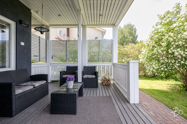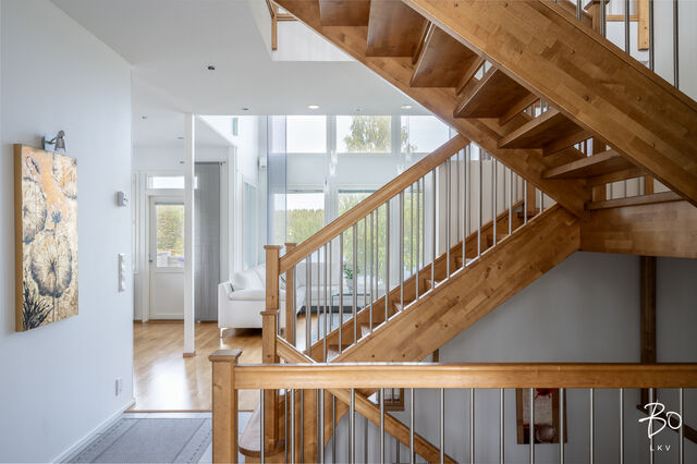 Etusivu / Pohjois-Savo / Kuopio / Savolanniityntie 11 1 / 1 Savolanniityntie 11 Savolanniemi, Kuopio | Omakotitalo | 5h,k,th,khh,s,at,ak + tupak,mh,ph 749 000 € Velaton hinta 251,0 m2 Asuinpinta-ala 333,5 m2 Kokonaispinta-ala 2008 Rakennusvuosi Näyttävä omakotitalo Kallaveden rannalla tasokkaaseen elämään.Vuonna 2008 rakennettu talo on arkkitehtoorisesti tyylikäs ja elegantti kokonaisuus omalla Kallaveden 1360 neliön rantatontilla. Yleisilmeeltään talo on valoisa, avara ja harmoninen. Talon pohjaratkaisu on suunniteltu ottaen huomioon perheen tarpeet ja lopputuloksena onkin moni-ilmeinen ja erittäin toimiva sekä erilaisiin tarpeisiin muuntautuva kokonaisuus. Asuitilat ovat kolmessa kerroksessa. Sisääntulokerroksessa on perheen yhteiset oleskelutilat; keittiö, ruokailutila, olohuone sekä yksi makuuhuoneista ja kodinhoitohuone, joka toimii myös toisena arkieteisenä. Ylimmässä kerroksessa on kolme makuuhuonetta, valoisa aula ja kolme parveketta, joita talossa on yhteensä viisi. Alakerran erillisessä huoneistossa on tupakeittiö, makuuhuone ja kylpyhuone sekä oma sisäänkäynti ja oma terassi rannan puolelle. Huoneisto sopii moniin tarpeisiin; itsenäistyvälle nuorelle, opiskelijalle, rauhalliseksi työhuoneeksi, harrastetilaksi tai vaikka Aupairille ja huoneiston vuokraukseen. Talon edustalla on lämmin autotalli sekä autokatos ja varastotilaa on myös todella hyvin.Tämän upean rantatalon kruunaa tasainen ja helppohoitoinen piha nuotiopaikkoineen ja laitureineen.Viihtyisän asumisen ja laadukkaan kodin merkitykset ovat korostuneet ja ne tulevat olemaan tärkeitä meille jatkossakin. Kotona on ihana viettää arkipäivien lisäksi myös arvokasta vapaa-aikaa. Mikä olisikaan ihanampaa kuin raikkaana kesäaamuna pulahtaa aamu-uinnille omasta rannasta, lähteä omalla veneellä rannasta veneilemään ja talvisin ulkoilla jäällä. Tämä koti mahdollistaa tasokkaan asumisen ja vapaa-ajan Kuopion Savolanniemessä. Kiinnostaako tämä kohde?Ota meihin yhteyttä tai jätä viesti Maria Keinänen kiinteistönvälittäjä LKV, kaupanvahvistaja, partner 044 989 3404 maria@bo.fi Tutustu välittäjään Varaa aika kalenteristani RakennusRakennusvuosi (aloitettu)2005Käyttöönottovuosi2008RakennusmateriaaliPuuRakennusmateriaalien kuvausVaajatalon täyselemetti. Alimmainen kerros harkkorakenteinen, keski- ja ylin kerros puurakenteinen.KattotyyppiHarjakattoKateTiilikateAsuinpinta-ala251,0 m2 (333,5 m2)Lisätietoja pinta-alastaMuita tiloja on autotalli, varastot ja tekninen tila 82,5 m2. Rahu-raportin mukaan huoneistoala on 251 m2 ja kerrosala 383 m2Kerrokset3Muut tilat82,5 m2Lämmitysjärjestelmän kuvausKaukoLämmön jakotapaVesikiertoinen lattialämmitysHuoneluku5h,k,th,khh,s,at,ak + tupak,mh,phKeittiön kuvaus, lisätiedot ja varustusKeittiön alakaappien ovet uusittu 2025, mikroaaltouuni ja astianpesukone uusittu 2024.Keittiön muut varusteetLiesituuletin, mikroaaltouuni, astianpesukoneLiesiInduktioliesi, erillisuuniKeittiön työtasojen materiaaliPuuKeittiön lattiamateriaaliLaattaKeittiön seinien materiaaliMaalattuKylpyhuoneen varustusLattialämmitys, wc-istuin, suihkuKylpyhuoneen lattiamateriaaliLaattaKylpyhuoneen seinämateriaaliKaakeliSaunaAsunnossa on saunaSaunan kuvaus, lisätiedot ja varustusLauteet: lämpökäsitelty haapa. Kiuas uusittu 2020Saunan lattiamateriaaliLaattaSaunan seinämateriaaliPuuWC-tilojen kuvausYläkerran kylpyhuoneessa kylpyamme ja wc, keskikerroksessa erillinen wc, alakerran kylpyhuoneen yhteydessä wc, erillisen huoneiston yhteydessä wcLattiamateriaalit: laattaSeinämateriaalit: kaakeliKodinhoitohuoneKuivauspatteriVarustus: pesukone, pesukoneliitäntä, kuivausrumpu, pesuallas, lattialämmitys, pyykkikaapit, kurapiste, pöytätasoLattiamateriaalit: laattaSeinämateriaalit: maalattuMakuuhuoneen kuvaus, lisätiedot ja varustusLukumäärä: 4Lattiamateriaalit: parkettiSeinämateriaalit: maalattuOleskelutilojen kuvaus, lisätiedot ja varustusLattiamateriaalit: parkettiSeinämateriaalit: maalattuMuut tilatAula, takkahuone, kaksi varastoa ja kolmen makuuhuoneen yhteydessä parvekkeet. Alimmassa kerroksessa erillinen huoneisto omalla sisäänkäynnillä, jossa tupakeittiö, makuuhuone, kylpyhuone jossa suihku, pesukoneliitäntä ja wc sekä olohuoneesta käynti terassille. TulisijaVaraava takka olohuoneessa ja takkahuoneessaTehdyt korjauksetLämmönvaihtimen kiertovesipumppu uusittu 2019 ja sen tiivisteet uusittu 2024, alakerran jätevesipumppu uusittu, kaikkien terassikaiteiden maalaus 2023, terassien lattiat käsitelty ja laiturin ponttoonit uusittu 2024, autokatoksen lattiaan erikoiskova betonipinnoite 2023, autotallin lattia ja seinät maalattu. Talon kaikki julkisivut ja sokkelit maalattu kesäkuussa 2025.Muuta kauppaan kuuluvaaIkkunoiden ristikot (otettu pois)KuntoHyväEnergiatodistusKylläEnergialuokkaB2018 KiinteistötiedotKiinteistötunnus297-34-179-6TyyppiTonttiTontin tyyppiRinnetonttiTontin koko1 360,00 m2Tontin omistusOmaPanttikirjat150 000,00 €Lisätietoja tontistaTie perilleVesijohtoKunnanViemäriKunnanRakennusoikeus476,0 m2Rakennusoikeus, e-luku0.35 Muita tietojaRannan kuvausLaiturin päässä noin 1,5 m syvää. Ruopattu, hiekkapohja. Rannassa venepoiju.Vesistön nimiKallavesi AsumiskustannuksetKiinteistövero1 600,00 €Muut maksut / lisätietoa maksuistaKaukolämmön kustannukset noin 2500 €/v. Sähkönkulutus noin 5 500 kWh/v. Jäte- ja vesimaksu noin 600 €/v, jätehuolto noin 200 €/v HintaVelaton hinta749 000,00 €Myyntihinta749 000,00 € VapautuuSopimuksen mukaanMaksuehtoKäteinen. Sinua voisi kiinnostaa Asunnon hinta-arvio ja arviokäynti Asunnon hinta-arvio ja arviokäynti Mitä hinta-arvio maksaa tai miten arviokäyntiä varten kannattaa valmistautua? Katso vastauksemme usein kysyttyihin ky… Sneak Peek® Sneak Peek® Sneak Peek® -palvelumme on askeleen edellä! Löydä alueesi uusimmat ja upeimmat asunnot jo ennen kuin ne ilmestyvät as… Asuntovahti Asuntovahti Etsimässä uutta asuntoa? Aseta itsellesi Bo