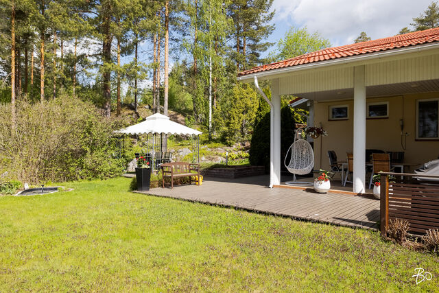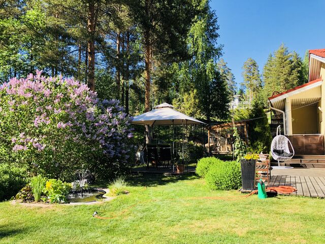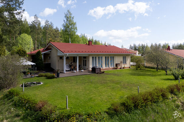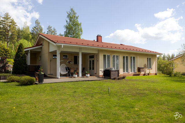 Etusivu / Keski-Suomi / Jyväskylä / Päivänkaari 13 1 / 1 Päivänkaari 13 Kinkovuori, Jyväskylä | Omakotitalo | 5h,k,rt,khh,s,kp,3wc 450 000 € Velaton hinta 154,9 m2 Asuinpinta-ala 207,4 m2 Kokonaispinta-ala 2005 Rakennusvuosi Laadukas Lammi Kivitalo Päijänteen rantamaisemissa!Tässä kodissa on tilaa, tyyliä ja toimivia ratkaisuja. Vuonna 2005 valmistunut omakotitalo hurmaa hyvin suunnitellulla, porrastetulla pohjaratkaisullaan. Talo pitää sisällään neljä makuuhuonetta, valoa tulvivan olohuoneen, toimivan keittiön, ruokailutilan, kolme wc:tä, saunaosaston sekä tilavan kodinhoitohuoneen omalla sisään käynnillään. Kodikas tunnelma ja talon erittäin siisti kunto tekevät siitä muuttovalmiin seuraavalle perheelle. Isona plussana talosta löytyy myös joka miehen unelma; kahden auton lämmin talli ja loistavat varastotilat. Maalämmön ansioista asuminen on huippuedullista, 14 000 kWh/vuosi sisältäen lämmityksen ja käyttösähkön.Talon sijaitsee lähellä Päijännettä, joka pilkotteleekin mukavasti 1261 neliöiselle, aurinkoiselle puutarhatontille. Piha on suojaisa ja takapiha rajoittuu metsäalueeseen. Isolla, katetulla terassialueella on mukava viettää kesäpäiviä ja lasten pelailla ja telmiä tasaisella nurmipihalla.Säynätsalo tarjoaa kauniin ympäristön rauhalliselle asumiselle lapsiystävällisessä ympäristössä. Muuramen ja Jyväskylän monipuoliset palvelut harrastusmahdollisuuksineen ovat kätevästi saavutettavissa, ja lähistöltä löytyy kouluja, päiväkoteja sekä päivittäistavarakauppoja.Tervetuloa tutustumaan tähän komeaan kokonaisuuteen, tilaamalla oma yksityinen näyttöaikasi minulta.Päivi RiuttamäkiKiinteistönvälittäjä, LKV, Partnerp.045-182 5863paivi@bo.fi Kiinnostaako tämä kohde?Ota meihin yhteyttä tai jätä viesti Päivi Riuttamäki kiinteistönvälittäjä LKV, LVV, partner 045 182 5863 paivi@bo.fi Tutustu välittäjään Varaa aika kalenteristani RakennusKäyttöönottovuosi2005RakennusmateriaaliKiviRakennusmateriaalien kuvausLammi Kivitalojen matalaenergiatalo.KattotyyppiHarjakattoKateTiilikateKaton kuntoHyväAsuinpinta-ala154,9 m2 (207,4 m2)Lisätietoja pinta-alastaAsuintilojen pinta-alat ja muut tilat on laskettu rakennuslupakuvasta. Muihin tiloihin (52,5 m2) on laskettu kahden auton talli, varasto ja kattilahuone. Kerrokset1Muut tilat52,5 m2LämmitysVesikiertoinen lattialämmitys. HyväLämmitysjärjestelmän kuvausMaalämpö, ilmalämpöpumppuHuoneluku5h,k,rt,khh,s,kp,3wcKeittiön kuvaus, lisätiedot ja varustusPetra keittiö.Keittiön muut varusteetLiesituuletin, mikroaaltouuni, astianpesukone, kiinteät valaisimetLiesiLeivinuuni, muu liesi/uuni, induktioliesi, erillisuuniKeittiön työtasojen materiaaliKiviKeittiön lattiamateriaaliKiviKeittiön seinien materiaaliLasikuitutapettiKylpyhuoneen varustusPoreamme, lattialämmitys, suihku, kiinteät valaisimetKylpyhuoneen lattiamateriaaliLaattaKylpyhuoneen seinämateriaaliKaakeliSaunaAsunnossa on saunaSaunan kuvaus, lisätiedot ja varustusMuotolauteet ja ikkuna.Saunan lattiamateriaaliLaattaSaunan seinämateriaaliPuuWC-tilojen kuvausTalossa on kolme wc:tä, jossa kahdessa on suihku.Varustus: lattialämmitys, lattiakaivo, suihku, suihkuseinä, peilikaappi, bidee-suihkuLukumäärä: 3Lattiamateriaalit: laattaSeinämateriaalit: kaakeliKodinhoitohuoneKodinhoitohuone toimii myös arkieteisenä.Varustus: pesukone, pesukoneliitäntä, kuivausrumpu, pesuallas, lattialämmitys, lattiakaivo, pyykkikaapit, pöytätasoLattiamateriaalit: laattaSeinämateriaalit: kaakeliMakuuhuoneen kuvaus, lisätiedot ja varustusLukumäärä: 4Lattiamateriaalit: kivi, lautaSeinämateriaalit: lasikuitutapettiOleskelutilojen kuvaus, lisätiedot ja varustusBoen Jatoba-lautaparketti uusittu v. 2013. Lasikuitutapetin asennus ja seinien maalaus v.2010.Lattiamateriaalit: parkettiSeinämateriaalit: lasikuitutapettiMuut tilatPäämakuuhuoneessa lautaparketti, kolmessa muussa makuuhuoneessa ja eteisessä laattalattia.TulisijaVaraava takkaTakkatiedotMuuMuut säilytystilatVaatehuone, ulkovarasto, ullakkoTehdyt korjauksetLasikuitutapetin (Paju) asennus ja seinien maalaus 2010, parketin (Boen Jatoba-lautaparketti) uusiminen 2013, öljylämmityksen vaihto maalämpöön 2013, ilmanlämpöpumpun (Fujitsu) asennus 2019, keittiökaapiston ovien ja laatikostojen etulevyjen uusinta (osa) 2022, ilmanvaihtokanavien puhdistus ja säätö 2022, Lounean valokuidun asennus 8/2024, sokkelin pinnoitus (Tikkurilan aitokivi) 2024, ilmastointikoneen huolto 1/2025, suodattimien vaihto 3 kk välein, LTO-kennoston ja sähkösuodattimen pesu kerran vuodessa, kylpyhuoneen silikonien vaihto ja laatoituksen suojakäsittely 1/2025, salaojien huolto ja tarkistus 4/2025, keittiötason lattiasaumojen pinnoitus 4/2025, tiilikaton pesu 4/2025 ja ilmastointikoneen uusinta 5/2025.KuntoHyväLisätietoa kunnostaKattoon on tehty tiilikaton pesu 4/2025.EnergiatodistusKylläEnergialuokkaB2018 KiinteistötiedotKiinteistötunnus179-34-11-4TyyppiTonttiTontin tyyppiTasamaatonttiTontin koko1 261,00 m2Tontin omistusOmaPanttikirjat360 000,00 €Lisätietoja tontistaTasainen, metsään rajoittuva puutarhatontti. Pihassa on kolme omenapuuta, kolme punaista viinimarjapensasta, kaksi mustaa viinimarjapensasta ja raparperia. Angervoaita tontin reunoilla, tuijia, syreeniä, vuorimäntyjä, iso alppiruusu sekä syyshortensioita. Metsän puolella on aidattu "kissala", joka puretaan halutessa pois.VesijohtoKunnanViemäriKunnanRakennusoikeus252,5 m2Rakennusoikeus, e-luku0.20 AsumiskustannuksetVesi ja jätevesi56,00 €Puhtaanapito34,00 €Kiinteistövero1 144,26 €Muut maksut / lisätietoa maksuistaSähkön kulutus n. 14 000 kWh sisältäen käyttösähkön ja lämmityksen. Kulutustiedot ja kiinteistövero ovat vuodelta 2024. Lounean valokuituliittymä 45e/kk sisältäen vapaat tv-kanavat sekä 1 G netin. HintaVelaton hinta450 000,00 €Myyntihinta450 000,00 € VapautuuSopimuksen mukaanMaksuehtoKäteinen. Sinua voisi kiinnostaa Asunnon hinta-arvio ja arvi