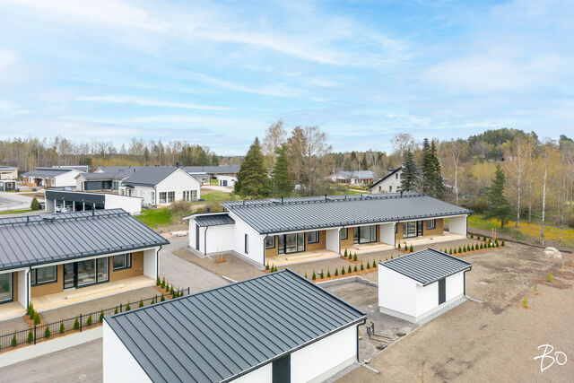 Etusivu / Varsinais-Suomi / Kaarina / Vairiontie 1 1 / 1 Vairiontie 1 Hulkkio, Kaarina | Rivitalo | 3h, avok, kh, s, 2wc, vh, terassi, var 332 100 € Velaton hinta 82,0 m2 Asuinpinta-ala 229,60 €/kk Hoitovastike 2025 Rakennusvuosi Asunto Oy Kaarinan Vairionkruunu Tämä huoneisto voidaan luovuttaa ostajalle 2kk kuluessa kaupanteosta. Tähän huoneistoon on mahdollista valita vielä pintamateriaalit.Kaarinan Hulkkioon valmistuu uusia yksitasoisia rivitalokoteja. Kyseessä on RS-rahoitteinen uudiskohde, joka koostuu 10 yksitasoisesta rivitalohuoneistosta. Yhtiössä on kuusi kolmiota (3 x 72m2 ja 3 x 82 m2) kolme neliötä (92 m2) sekä yksi viisiö (125 m2). Yhtiö sijaitsee omalla tontilla ja lämmitysmuotona toimii edullinen ja energiatehokas maalämpö yhdistettynä vesikiertoiseen lattialämmitykseen (lämmitys sisältyy hoitovastikkeeseen). Huoneistot varustellaan huoneistokohtaisella lämmön talteenoton omaavalla koneellisella tulo- ja poistoilmanvaihtojärjestelmällä. Kaikkiin huoneistoihin asennetaan lisäksi ilmalämpöpumput viilennystä varten.Kaikki asuintilat sijaitsevat kätevästi yhdessä tasossa. Niin eteisen kuin kaikkien makuuhuoneidenkin yhteyteen on toteutettu säilytystilaa. Tyylikäs avokeittiö, ruokailutila sekä kodin upeat oleskelutilat sijoittuvat takapihan puolelle. Keittiön kaapistot ja muut säilytysratkaisut tulevat Puuvaja Oy:ltä. Olohuoneen isot, takapihan suuntaan asettuvat ikkunat tekevät tilasta valoisan ja avaran. Tilasta on kulku etelän suuntaiselle, koko huoneiston levyiselle katetulle terassille, jossa saa nauttia auringosta pitkälti koko päivän. Takaterassien jatkeena on osakkaiden hallinnassa olevat nurmipihat, jotka on tuija-aidoin eroteltu toisistaan. Kylpyhuoneiden yhteydessä on oma sauna ja tyylikäs kylpyhuone tarjoaakin rauhallisen rentoutumispaikan kiireisen arjen keskelle. Kylpyhuoneiden yhteyteen toteutetaan myös tila ja liitännät pesutornille. Kaikissa asunnoissa on 2 wc:tä. Jokaisella huoneistolla on etupihan puolella n. 5,3 m2 kokoinen lämmin ulkovarasto. Talon päädyssä on lisäksi yhtiön yhteinen ulkovarasto sekä tekninen tila. Perheen pienimmille on varattu yhtiön pihalta oma leikkialue. Jokaisen huoneiston käytössä on oma sähköpistokkeellinen autokatospaikka. Sähköauton latauksen mahdollistava latausasema voidaan asennuttaa lisätyönä. Lisäksi jokaiselle huoneistolle kuuluu autopihapaikka (pois lukien huoneisto C10, jolle kuuluu 2 autokatospaikkaa).Kaarinan itäpuolella sijaitsevasta Hulkkiosta on hyvät yhteydet niin Kaarinan kuin Turunkin palveluihin. Kaarinan keskustaan ajaa alle 5 minuutissa ja Turun keskustaan n. 15 minuutissa. Lisäksi päivittäistavarakaupat, päiväkodit, koulut, urheilumahdollisuudet sekä moni muu palvelu sijaitsevat kaikki lähellä. Kohteen rakentamisesta vastaa luotettava ja pitkään rivitaloyhtiöitä rakennuttanut Rakennus Mäntylä Oy.Tervetuloa tutustumaan kohteeseen!Myynti ja lisätiedot/Miika Salmela0500 533 582miika.salmela@bo.fi Kiinnostaako tämä kohde?Ota meihin yhteyttä tai jätä viesti Miika Salmela asuntomyyjä, partner 0500 533 582 miika.salmela@bo.fi Tutustu välittäjään HuoneistoOsakkeet657-738HallintamuotoAsunto-osakeyhtiöHuoneluku3h, avok, kh, s, 2wc, vh, terassi, varKerros/Kerroksia1/1Asuinpinta-ala82,0 m2Muut tilat0,0 m2Lisätietoja pinta-alasta Yhtiöjärjestyksen mukainen.NäkymätAurinkoinen terassi ja sen jatkeena oleva piha-alue etelään. Katetun terassin jatkeena asunnolla on nurmipihaa.Parvekkeen ilmansuuntaEteläKeittiön kuvaus, lisätiedot ja varustusKeittiön varusteena on induktioliesitaso erillisuunilla, liesituuletin (aktiivihiilisuodatin), 2 x jää-viileäkaappi tai pakastin, astianpesukone ja mikroaaltouuni. Keittiö tulee Puuvaja Oy:ltä. Asuntoihin asennetaan arkkitehtisuunnitelman mukaiset kiintokalusteet. Kalusteet tehdasvalmisteisia standardikalusteita, työtasot laminaattipintaisia ja astianpesualtaat upotettuja komposiittialtaita. Kaappien ovet ovat valkoiseksi maalattuja MDF-ovia tai vastaavia. Seinät: maalattu katto: paneeli Lattia: lautaparketti/ vinyylikorkki/ laminaatti Pesutilojen kuvaus, lisätiedot ja varustusKylpyhuoneessa peilivalaisin, tasoallas, allaskaappi, pyyhekoukusto, wc-paperiteline, suihkuseinä, tilavaraus pyykinpesukoneelle ja tarvittavat liitännät Lattia: vesieristetty ja laatoitettu Seinät: vesieristetty ja laatoitettu Katto: paneelialakatto Kalusteet: tehdasvalmisteiset vakiomalliset kiintokalusteet WC-tilojen kuvausErillisessä wc:ssä tehdasvalmisteiset vakiomalliset kiintokalusteet. Varusteisiin kuuluu peilikaappi, tasoallas, allaskaappi, pyyhekoukusto ja wc-paperiteline. Lattia: vesieristetty ja laatoitettu Seinät: laatoitettu Katto: paneeli Saunan kuvaus, lisätiedot ja varustusSauna sijaitsee kylpyhuoneen yhteydessä. Saunan ovet ovat kokolasisia saunanovia. Saunassa sähkökiuas. Lattia: vesieristetty ja laatoitettu Seinät: thermo haapaa / tervaleppää Katto: thermo haapaa / tervaleppää Varusteet: runko puuta, lauteet ja istuinosa thermo haapaa / tervaleppääMakuuhuoneen kuvaus, lisätiedot ja varustusKodin maakuuhuoneet sijaitsevat eteisen yhteydessä vastakkain. Isomman makuuhuoneen yhteydessä vaatehuone, toisessa kaapisto. Lattia: lautaparketti/ vinyylikorkki/ laminaatti Seinät: maalattu Katto: paneeliLukumäärä: 2Oleskelutilojen kuvaus, lisätiedot ja varustusOlohuoneesta kulku aurinkoiselle, etelän suuntaiselle terassille. Olohuoneesta isot ikkunat takapihan suuntaan. Lattia: lautaparketti/ vinyylikorkki/ laminaatti Seinät: maalattu Katto: paneeliMuuta kauppaan kuuluvaaOstajalla on mahdollisuus teettää ostamaansa huoneistoon kohdistuvia muutostöitä omalla kustannuksellaan. Rakentaja antaa toivotuista muutostöistä kirjallisen tarjouksen. Lisä- ja muutostyötilaukset tulee tehdä ilmoitettuun päivämäärään mennessä, muussa tapauksessa asunnot rakennetaan suunnitelmien mukaisesti. Rakennustapaselostus on tarkoitettu yleisluontoisen tiedon antamiseksi. Ra