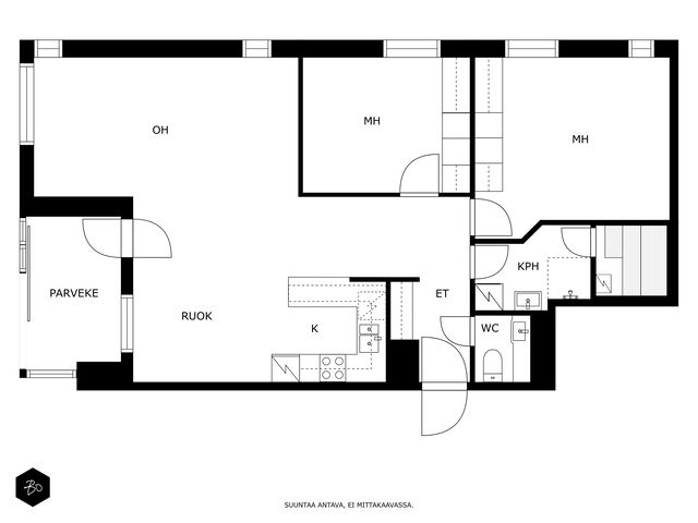 Etusivu / Pohjois-Savo / Kuopio / Maaherrankatu 29-31 1 / 1 Maaherrankatu 29-31 Keskusta, Kuopio | Kerrostalo | 3h+k+s 189 000 € Velaton hinta 80,0 m2 Asuinpinta-ala 364,80 €/kk Hoitovastike 1986 Rakennusvuosi Puolivälissä keskustaa ja satamaa4. kerroksen kulmahuoneisto, jossa kaupungin äänet jättäytyvät jo alaovelle tässä jykevässä tiilirakennuksessa. Kulmahuoneiston etuihin lukeutuvat kahteen ilmansuuntaan jakautuvat ikkunat ja valo, joka tähänkin kotiin kauniisti kantautuu. Huoneistossa on tehty vuonna 2006 sisäremontteja, joihin lukeutuvat mm. uusittu kylpyhuone, keittiö puretuilla väliseinillä, erillisen wc:n uusiminen ja parkettilattioiden sävytys ja hionta. Huom! keittiö on suurempi kuin pohjakuvassa! Säilytystilaa on kumpaisessakin makuuhuoneessa koko seinän mitalta. Eteiseen on samaisena remontti vuonna lisätty kunnolliset kaapistot. Muutamia kuukausia taaksepäin koki kodin saunaosasto myös täydellisen uusinnan kun vanhat paneelit saivat väistyä ja tilalle tuli uudet -lauteineen ja kiukaineen.Omalla tontilla sijaitsevassa yhtiössä toteutettiin A- ja B talojen viemäreiden sukitus, joka valmistui tänä vuonna. Tämä myytävä kohde sijaitsee taloyhtiön A-rakennuksessa. Myöskin tässä rakennuksessa on hissien modernisointi toteutettu viimevuosien suurimpina saneerauksina. Sijainti, joka kutsuu ulkoilemaan lähialueiden puistoihin, vehreään satamaan ja Väinölänniemelle, pitäen samalla kaikki keskustan kattavat palvelut kävelyetäisyyksien päässä. Tämä koti odottaa sinua, nähdään esittelyissä!Välittäen, Laura AiraksinenLKV, LVV, KiAT, partnerlaura.airaksinen@bo.fi0405515800 Kiinnostaako tämä kohde?Ota meihin yhteyttä tai jätä viesti Laura Airaksinen kiinteistönvälittäjä LKV, LVV, KiAT, partner 040 551 5800 laura.airaksinen@bo.fi Tutustu välittäjään Varaa aika kalenteristani HuoneistoOsakkeet3105-3289HallintamuotoAsunto-osakeyhtiöHuoneluku3h+k+sKerros/Kerroksia4/6Asuinpinta-ala80,0 m2Muut tilat0,0 m2Lisätietoja pinta-alasta Yhtiöjärjestyksen mukainen. Toimeksiantajan ilmoittama. Isännöitsijäntodistuksen mukainen.ParvekeLasitettuHissiTaloyhtiössä on hissiKeittiön kuvaus, lisätiedot ja varustusRemontoitu vuonna 2006, kaapistoineen ja runkoineen. Varustus: Astianpesukone 2005, jääkaappi/pakastin 2019, sähköliesi, liesikupu (n. 2015, taloyhtiön uusima)Keittiön lattiamateriaaliParkettiKeittiön seinien materiaaliMaalattuPesutilojen kuvaus, lisätiedot ja varustusRemontoitu 2006 kalusteineen ja pintoineen. Varustus: lattilämmitys, pesukoneliitäntä, peilikaappi, allaskaappi, kylpyhuonekalusteita, suihkuseinä, suihku Kylpyhuoneen lattiamateriaaliLaattaKylpyhuoneen seinämateriaaliKaakeliWC-tilojen kuvausRemontoitu 2006 kalusteineen päivineen. Varustus: bidee-suihku, peili, kylpyhuonekaapisto ja allaskaapisto, wc-istuin (2025)Lukumäärä: 1Lattiamateriaalit: laattaSeinämateriaalit: kaakeli, tapettiSaunan kuvaus, lisätiedot ja varustusUusittu marraskuussa 2024: Lauteet, paneelit ja Harvia-kiuasMakuuhuoneen kuvaus, lisätiedot ja varustusMuovimatto 2006, asennettu vanhan muovilattian lattian päälle. Kaapistojen ovet uusittu 2006.Lukumäärä: 2Lattiamateriaalit: muoviSeinämateriaalit: maalattu, tapettiOleskelutilojen kuvaus, lisätiedot ja varustusParketti hiottu ja lakattu 2006.Lattiamateriaalit: parkettiSeinämateriaalit: tapettiMuuta kauppaan kuuluvaaKiinteät valaisimet, kiinteät kaapistot, olemassa olevat sälekaihtimet, verhotangot ja kiskot, galleria kiskot (sovittavissa erikseen)KuntoHyvä Kiinteistö- ja yhtiötiedotYhtiön nimiAs Oy Kuopion TalstinrantaTontin omistusOmaTontin koko4 458,00 m2Käyttöönottovuosi1986RakennusmateriaaliElementti, betoniKattotyyppiTasakattoKateHuopakateLämmitysjärjestelmäKaukoEnergiatodistusKylläEnergialuokkaD2018Tehdyt korjaukset ja remontit2024 A- ja B-talon viemäreiden sukitus, 2024 Käytävien liiketunnistinvalaistus, 2022 A-talon hissin modernisointi/uusinta, 2022 Jätevesiviemäreiden huuhtelu ja kuvaus, 2021 Ilmanvaihtojärjestelmän puhdistus ja säätö, 2020 vesikattojen kunnostus ja B-talon kattohuoneistojen avoparvekkeiden korjaus, 2018 C-talon putkikanaalien uusiminen, 2017 A- ja B talojen välisen käyttövesi-ja lämpökanaalin uusiminen, 2016 A-talon kattoparvekkeiden korjaus ja 4 kattokaivon korjaus, 2014 pyykinpesukoneen uusiminen, 2013 kylpyhuoneiden kuntokartoitus, 2013 lukitusten sarjoitus Sento avaimelle, 2013 pyörävaraston rakentaminenk 2012 porrashuoneiden sisääntulon huoltomaalaus, 2009 B-talon hissi uusittu, 2008 IV kanavien puhdistus ja säätö, 2007 A-talon kattojen kunnostus, 2002 ikkunoiden ja parvekkeovien maalaus Tiedossa olevat tulevat korjaukset/remontitPalovaroittimet siirtyvät taloyhtiön vastuulle viimeistään 1.1.2026. Taloyhtiö asentaa keskitetysti huoneistoihin palovaroittimet jokaista 60 m2 kohden ennen tätä. Ikkunoiden uusiminen C-talon ulko-ovet uusiminenAutotallit11Autokatokset27Sähköpistokepaikkoja34Lainat185 467,10 €Kiinnitykset107 200,00 €IsännöitsijäKuopion Talokeskus Oy, Maaherrankatu 15-19, 70100 Kuopio Miika Nousiainen 017 288 2500KiinteistönhoitoHuoltoyhtiöYhtiön tilat ja varusteluTalopesula, kuivaushuone, mankeli, jäähdytetty kellari, kellarikomero, urheiluvälinevarasto, askarteluhuone, väestönsuoja. Taloyhtiön laajakaista DNA 10M Hissi on A ja B talossa. Muita tietojaLisätietoa kaavoituksestaKuopion kaupunki, p. 017 182 111VapautuuSopimuksen mukaan AsumiskustannuksetHoitovastike364,80 €/kk (4,56 €/m2)Rahoitusvastike218,60 €/kk (2,73 €/m2)Yhtiövastike yhteensä583,40 €Vesi31,00 €/hlö/kkAutopaikka15,00 €/kkMuut maksut / lisätietoa maksuistaPääomavastikkeet koostuvat kahdesta eri huoneistokohtaisesta lainasta: vesikattoremontista ja viemäreiden sukituksesta. Velkaosuuden voi maksaa pois, jolloin päättyy myös rahoitusvastike. Taloyhtiön osakeluettelo on siirretty huoneistotietojärjestelmään. Ostajan tulee hakea omistusoikeuden rekisteröintiä Maanmit
