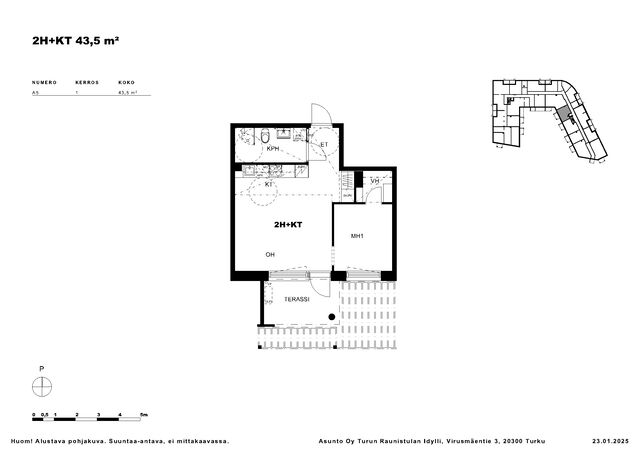 Etusivu / Varsinais-Suomi / Turku / Konsantie 1 1 / 1 Konsantie 1 Raunistula, Turku | Kerrostalo | 2h, avok, vh, kph, et, terassi 205 850 € Velaton hinta 43,5 m2 Asuinpinta-ala 169,65 €/kk Hoitovastike 2027 Rakennusvuosi HYÖDYNNÄ HUIPPUETU! Varaa asunto helposti ilman varausmaksua. Kauppakirjojen allekirjoituksen yhteydessä maksat myyntihinnasta vain 15 % ja loput vasta kodin valmistuessa (arvioitu valmistumisaika vuoden 2027 aikana).Raunistulan Idylli Modernia asumista Turun sydämessäRaunistulan Idylli yhdistää viehättävän puutaloalueen rauhan modernin asumisen mukavuuksiin. Asunnoissa on suuret ikkunat ja toimivat pohjaratkaisut. Tämä nelikerroksinen kerrostalo kohoaa Raunistulan sydämeen, vain lyhyen matkan päähän Turun keskustasta. Arvioitu valmistuminen vuoden 2027 aikana. Tämä valoisa kaksio hurmaa selkeydellään ja toimivuudellaan. Erityisen tästä kodista tekevät oma terassi ja sisäänkäynti. Terassilla myös upea pergola istutuksineen. Keittiötoiminnot sijoittuvat yhdelle seinälle, joka vapauttaa reilusti tilaa oleskelulle ja ruokailulle. Selkeän ratkaisun ansiosta ilmava koti on helppo sisustaa. Toimiva pohjaratkaisu, vaatehuone ja suuret ikkunat tekevät kodista valoisan ja käytännöllisen. Asunnossa on varaus viilentävälle ilmalämpöpumpulle. Idyllin asunnot sopivat niin yksinasuville, pariskunnille kuin pienille perheillekin. Tarjolla on myös muun muassa loft-tyylisiä koteja, joissa huonekorkeus kohoaa jopa neljään metriin ja nukkumaparvella on yli puolitoista metriä korkeutta. Ensimmäisen kerroksen asunnoissa on oma sisäänkäynti omalta pikkupihalta. Idyllissä arki sujuu ilman remonttihuolia tai pihatöitä. Taloyhtiöllä on vehreä ja viihtyisä piha, oma pihasauna, yhteinen kuntoilutila, pyörävarasto pesupaikkoineen sekä sähköautojen latausmahdollisuus. Asunnoissa on varaus ilmalämpöpumpulle ja taloyhtiössä varaudutaan aurinkopaneeleihin. Energiatehokkuus ja vastuulliset asumisratkaisut varmistavat kestävän ja miellyttävän asumisen.Raunistula on viehättävä puutalopainotteinen asuinalue vain 2 km päässä Turun keskustasta, rautatieasemalta ja Turun yliopistosta. Logomo sekä suunnitteilla oleva uusi Turun Ratapihan elämyskeskus ja areena tulevat sijaitsemaan vain kävelymatkan etäisyydellä.Kohde ennakkomarkkinoinnissa, kerromme mielellämme lisätietoja! Kohteen rakennuttamisesta vastaa SRV, joka on luotettava ja vakavarainen toimija. Myynti ja esittelyt/Miika Salmelap. 0500 533 582miika.salmela@bo.fijaSaija Palinp. 040 756 7070saija.palin@bo.fijaTAINA VUORIp. 050 527 4106taina.vuori@bo.fi Kiinnostaako tämä kohde?Ota meihin yhteyttä tai jätä viesti Miika Salmela asuntomyyjä, partner 0500 533 582 miika.salmela@bo.fi Tutustu välittäjään HuoneistoOsakkeet2016-2450HallintamuotoAsunto-osakeyhtiöHuoneluku2h, avok, vh, kph, et, terassiKerros/Kerroksia1/4Asuinpinta-ala43,5 m2Muut tilat0,0 m2Lisätietoja pinta-alastaPinta-ala ei ole tarkistusmitattuNäkymätHuoneistoilla on parvekkeet pohjapiirustusten mukaisesti. Lattia, katto ja seinät ovat betonirakenteisia. Parvekekaiteet ovat pääosin lasikaiteita. Asuntoparvekkeet ovat pääosin lasitettuja. Parvekkeet ovat ulkotiloja. Osassa parvekepielistä on asennettu varatieluukku, joka toimii poistumisreittinä hätätilanteessa. Osassa 1. kerroksen asunnoista on maantasoterassit. Maantasoterasseja ei lasiteta. Maantasoterasseilla on terassilaudoitus. HissiTaloyhtiössä on hissiKeittiön kuvaus, lisätiedot ja varustusKeittiökalusteiden ovet ja etusarjat ovat tehtaan vakiomallistoa. Kodinkoneet (Electrolux). KEITTOTASO: Induktiotaso 60 cm. KEITTOTASO: Induktiotaso 60 cm. KALUSTEUUNI: Teräs tai valkoinen 60 cm. MIKROAALTOUUNI: Valkoinen tai musta 60 cm. ASTIANPESUKONE: Astianpesukone 60 cm, kalustepeitteinen, ovi keittiön mukaan. JÄÄKAAPPI: Jääkaappi, vapaasti seisova, valkoinen/teräs. Kaappipakastin, vapaasti seisova, valkoinen/teräs. Jääkaappipakastin, vapaasti seisova, valkoinen/teräs. LIESIKUPU: Vallox Delico, valkoinen tai musta. KEITTIÖHANA: Oras Safira 1039F. PESUALLAS: Teräs tai musta, 40 tai 50 cm KEITTIÖN VÄLITILAVALAISIN: Kalustetoimittajan integroima LED-nauhavalaisin, 4000 K. Rakennuttajan puolelta on valmiiksi koottuna kolme eri tyylistä sisustusteemaa: Talvi, Kesä ja Syksy. Teemoja voi yhdistellä vapaasti keskenään. TALVI: KALUSTEOVI: Mattavalkoinen melamiiniovi. VEDIN: Yläovi, vetimetön. Alaovi ja korkeat komerot, RST lippavedin. KALUSTESOKKELI: Valkoinen, ei jalkalistaa keittiökalusteen eteen. TYÖTASO: Musta tai harmaa laminaattitaso. VÄLITILA: Valkoinen välitilalevy. KESÄ: KALUSTEOVI: Tammen sävyinen puukuvioinen melamiiniovi. VEDIN: Yläovi, vetimetön. Alaovi ja korkeat komerot, RST vedin. KALUSTESOKKELI: Valkoinen, ei jalkalistaa keittiökalusteen eteen. TYÖTASO: Marmorikuvioinen laminaattitaso. VÄLITILA: Valkoinen välitilalevy. SYKSY: KALUSTEOVI: Musta melamiiniovi, puusyykuvio. VEDIN: Yläovi, vetimetön. Alaovi ja korkeat komerot, messinkivedin. KALUSTESOKKELI: Valkoinen, ei jalkalistaa keittiökalusteen eteen. TYÖTASO: Marmorikuvioinen laminaattitaso.Pesutilojen kuvaus, lisätiedot ja varustusPesuhuoneessa on pyykinpesukoneliitäntä, varaus pesutornille, allas, allaskaluste ja sen yläpuolella valaisinpeilikaappi. Kalusteet ovat kalustelevyä. Suihkuseinä on pohjapiirrokseen merkityssä kohdassa. Suihkuseinien mitoitus on huoneistokohtaisten märkätilakaavioiden mukaan. Laatat: Laattapiste. PEILIKAAPPI: Svedbergs valkoinen peilikaappi LED-valolla 60 cm tai 80 cm. ALLAS JA ALLASKALUSTE: Svedbergs valkoinen posliiniallas ja valkoinen allaskaappi kahdella laatikolla 60 cm tai 80 cm. PESUALLASHANA: Oras Safira ECO 1012F-105, kromi, bidetta käsisuihkulla. SUIHKUHANA: Oras. Termostaattirunko 7462G kiinteällä juoksuputkella + Apollo- suihkusetti 548, kromi. WC-ISTUIN: Gustavsberg Nautic HF 1500, kova istuinkansi. PYYKKIKAAPPI: Svedbergs. Osassa asunnoista korkea pyykkikaappi kahdella pyykkikorilla huone