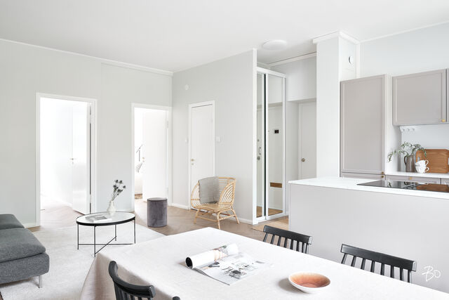 Etusivu / Uusimaa / Helsinki / Kivelänkatu 1D 1 / 1 Kivelänkatu 1D Taka-Töölö, Helsinki | Kerrostalo | 3h, avokeittiö, kph (yj. muk. 3 h+k) 469 000 € Velaton hinta 66,0 m2 Asuinpinta-ala 402,60 €/kk Hoitovastike 1935 Rakennusvuosi PUISTOBULEVARDIN HURMAAPuistobulevardi Kivelänkatu lienee yksi mahtavimmista sijainneista Töölössä. Rauhallinen ja vehreä, mannermaisella tavalla tyylikkään leveä katuosuus, josta muutama sata metriä Töölöntorin palveluille ja saman verran kantakaupungin upeimmalle ulkoilukeitaalle, Töölönlahden rantaan. Puistomaisuus jatkuu tilavan korttelipihan puolella ja antaa siten poikkeuksellisen avarat ja näkymät molempiin suuntiin. Kolmannessa kerroksessa odottaa heti vapaa, juuri kauttaaltaan tyylillä ja huolella saneerattu kahden makuuhuoneen asunto, jossa ei ole senttiäkään hukkatilaa. Ei hukkahalleja eikä pitkiä käytäviä vaan tilaa ja neliöitä, joita voi aidosti hyödyntää. Napakka kolmio palvelee niin sinkkua, pariskuntaa kuin pientä perhettäkin. Tule ja totea itse!Johanna Kiminkinenkiinteistönvälittäjä LKV, partnerBO LKV TÖÖLÖ045 693 2900johanna.kiminkinen@bo.fi Kiinnostaako tämä kohde?Ota meihin yhteyttä tai jätä viesti Johanna Kiminkinen kiinteistönvälittäjä LKV, partner 045 693 2900 johanna.kiminkinen@bo.fi Tutustu välittäjään Varaa aika kalenteristani HuoneistoOsakkeet26-32HallintamuotoAsunto-osakeyhtiöHuoneluku3h, avokeittiö, kph (yj. muk. 3 h+k)Kerros/Kerroksia3/6Asuinpinta-ala66,0 m2Muut tilat0,0 m2Lisätietoja pinta-alastaPinta-alaa ei ole tarkistusmitattu. Edellä mainittu pinta-ala saattaa tämän ikäisessä kohteessa poiketa olennaisestikin huoneiston nykyisen ja rakentamisaikaisen mittaustapojen ja standardien mukaan laskettavasta pinta-alasta. Huoneiston todellinen pinta-ala voi siis olla yhtiöjärjestyksessä, isännöitsijäntodistuksessa ja esitteessä mainittua pienempi tai suurempi. Yhtiöjärjestyksen mukainen. Isännöitsijäntodistuksen mukainen.NäkymätAvarat näkymät molempiin suuntiin, viehättävälle, puistomaisen vehreälle korttelipihalle ja rauhalliselle Kivelänkadulle.HissiTaloyhtiössä on hissiLiesiInduktioliesiKeittiön työtasojen materiaaliLaminaattiKeittiön lattiamateriaaliVinyyliKeittiön seinien materiaaliMaalattuPesutilojen kuvaus, lisätiedot ja varustusKäsienpesuhana TapwellKylpyhuoneen varustusSuihkuseinä, pesukone, pesukoneliitäntä, lattialämmitys, wc-istuin, suihku, peilikaappi, kiinteät valaisimet, kylpyhuonekaapistoKylpyhuoneen lattiamateriaaliLaattaKylpyhuoneen seinämateriaaliKaakeliMakuuhuoneen kuvaus, lisätiedot ja varustusLukumäärä: 2Lattiamateriaalit: vinyyliSeinämateriaalit: maalattuOleskelutilojen kuvaus, lisätiedot ja varustusLattiamateriaalit: vinyyliSeinämateriaalit: maalattuMuutostyöt huoneistossaHuoneiston kokonaissaneeraus juuri valmistunut oheisen remonttisuunnitelman mukaisesti: - kylpyhuone remontoidaan kokonaisvaltaisesti ja vesieriste uusitaan - keittiö remontoidaan kokonaisvaltaisesti - vanhat lattiat puretaan ja asennetaan uudet parketit - seinäpinnat tasoitetaan ja maalataan, vanhat lasikuitutapetit poistetaan - katot rätitetään, tasoitetaan ja maalataan - ikkunapuitteet sekä ikkunapenkit smyygeineen huoneiston puolelta kunnostetaan - patterit maalataan paikoillaan, niitä ei irroiteta - väliovet maalataan ja kunnostetaan pienimuotoisesti tarvittaessa KuntoHyväLisätietoa kunnostaKunto: uusi. Huoneiston täyssaneeraus juuri valmistunut ja lopputarkastettu. Kiinteistö- ja yhtiötiedotYhtiön nimiAsunto Oy AraratTontin omistusOmaTontin koko639,10 m2Käyttöönottovuosi1935RakennusmateriaaliKiviKattotyyppiHarjakattoKatePeltiLämmitysjärjestelmäKaukoEnergiatodistusKylläEnergialuokkaF2018Tehdyt korjaukset ja remontitKeittiöiden kalustesulkujen uusiminen 2023 Lukituksen uusiminen Abloy Easy 2022 Jäteaseman aitaaminen 2020 Yhden kylpyhuonelinjan saneeraus 2018: Ylimmän kerroksen lämpimän veden kiertoputken saumassa pistesyöpymä , joka johti vuotoon koko linjassa. Kyseinen kylpyuonelinja saneerattiin kokonaisuudessaan. Vakuutusyhtiö kattoi korjauksesta puolet. Piipun rappauksen paikkaus 2016 Lämmönvaihtimen uusiminen 2014 Patteriventtiilien uusiminen 2014 Katon maalaus 2013 Vesikaton uusiminen 2007 Ikkunoiden peruskorjaus 2007 Hissin peruskorjaus 2003 Julkisivun paikkauskorjaus 2001 Putkisto 19871988 Etuikkunat 1986 Sähkönousut 1984Tiedossa olevat tulevat korjaukset/remontitHallituksen näkemys merkittävistä korjauksista lähimmän viiden vuoden aikana - katon tarkastus 2025, pinnoitteet ja kattoturvatuotteet - jälkiasennusparvekkeiden kuntoarvio 2025 - palovaroittimien uusiminen/asentaminen 2025 Muuten hallitus on arvioinut taloyhtiön kunnon sellaiseksi, ettei merkittäviä muita korjauksia ole suunnitteilla tarkastelujaksolla.Pihapaikkoja5Lainat45 035,13 €Kiinnitykset95 600,00 €IsännöitsijäHelsingin Asuntomarkkinat Oy / Isännöitsijä Mikko Nissinen 045 1687 007 / mikko.nissinen@kekalinen.fi Topeliuksenkatu 3a B15, 00260 HELSINKI Puh. 040 551 5000 / toimisto@kekalinen.fi KiinteistönhoitoHuoltoyhtiöYhtiön tilat ja varusteluVinttikomero, kellarikomero. Ilmanvaihtojärjestelmä painovoimainen. Muita tietojaLisätietoa kaavoituksestaHelsingin kaupunkiHelsingin kaupunki: kartta.hel.fi -> aineistot -> kaavoitus ja liikennesuunnittelu. Puh. 09 310 1691 VapautuuHetiMuut kaupan kannalta merkittävät tiedotKäyttösähkö kulutuksen mukaan. Kotivakuutus omien sopimusehtojen mukaisesti. Ostaja maksaa varainsiirtoveroa 1,5 % velattomasta kauppahinnasta. Taloyhtiön osakeluettelo on siirretty huoneistotietojärjestelmään. Ostajan tulee hakea omistusoikeuden rekisteröintiä Maanmittauslaitokselta kaupan jälkeen. Ostaja vastaa omistusoikeuden rekisteröintikustannuksista, mahdollisista osakekirjan mitätöinnistä aiheutuvista kustannuksista sekä mahdollisesta hakemusmaksun korotuksesta. Ostajan pankin ostajalta mahdollisesti veloittamista kaupantekoon, omistusoikeuden rekisteröintiin tai