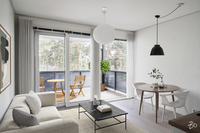 Etusivu / Uusimaa / Vantaa / Valkovuokontie 3 1 / 1 Valkovuokontie 3 Hiekkaharju, Vantaa | Luhtitalo | 2h, kt, kph (yj: 2h+kt+kph) 155 000 € Velaton hinta 35,0 m2 Asuinpinta-ala 182,00 €/kk Hoitovastike 2021 Rakennusvuosi Modernia asumista valoisassa luhtitalokaksiossa Vantaan Hiekkaharjussa!Tämä toisen kerroksen valoisa ja selkeäpohjainen kaksio hurmaa avaruudellaan ja vaaleilla pinnoillaan. Keittiö on kompaktista koostaan huolimatta tyylikäs ja toimivasti osa oleskelutilaa. Olohuoneen jatkeena on suuri eteläparveke, joka tarjoaa upeat puitteet kesäpäivistä nauttimiseen.Makuuhuone asettuu toiselle puolelle asuntoa tarjoten rauhaa, silloin kun sitä tarvitset. Tilavassa kylpyhuoneessa nautitaan luonnonvalosta ja tilaan mahtuu sopivasti myös nurkkaus kodinhoidolle. Koko kodin ilme on raikas ja nykyaikainen - täällä on helppo viihtyä. Asunto Oy Vantaan Kaunokki on vuonna 2021 valmistunut yhtiö. Lämmitysmuotona toimii energiatehokas maalämpö ja vuokratontin tonttiosuus on mahdollista lunastaa vuosittain - mukava lisä tulevaisuuden päätöksiin. Hiekkaharju on rauhallinen kaupunginosa, jossa arki soljuu mukavasti. Alueelta löytyy kaikki tarvittava lähipalveluista hyviin liikenneyhteyksiin, ja luonto sekä ulkoilumaastot houkuttelevat liikkeelle. Hiekkaharju tarjoaa tasapainoisen yhdistelmän helppoa asumista ja viihtyisää ympäristöä.Asunnon yhteydessä myydään autopaikka erillisinä osakkeinaan. Varaa oma esittelyaikasi ja tule ihastumaan kohteeseen! Ville Kovaasuntomyyjä, partner040 847 6718ville.kova@bo.fi Kiinnostaako tämä kohde?Ota meihin yhteyttä tai jätä viesti Ville Kova asuntomyyjä, partner 040 847 6718 ville.kova@bo.fi Tutustu välittäjään Varaa aika kalenteristani HuoneistoOsakkeet1186-1300HallintamuotoAsunto-osakeyhtiöHuoneluku2h, kt, kph (yj: 2h+kt+kph)Kerros/Kerroksia2/2Asuinpinta-ala35,0 m2Muut tilat0,0 m2Lisätietoja pinta-alasta Isännöitsijäntodistuksen mukainen. Yhtiöjärjestyksen mukainen.ParvekeUlostyönnettyParvekkeen ilmansuuntaEteläLiesiInduktioliesi, erillisuuniKeittiön työtasojen materiaaliLaminaattiKeittiön lattiamateriaaliLaminaattiKylpyhuoneen varustusSuihkuseinä, pesukoneliitäntä, lattialämmitys, wc-istuin, suihku, kylpyhuonekaapistoKylpyhuoneen lattiamateriaaliLaattaKylpyhuoneen seinämateriaaliMaalattuMakuuhuoneen kuvaus, lisätiedot ja varustusLukumäärä: 1Lattiamateriaalit: laminaattiSeinämateriaalit: maalattuOleskelutilojen kuvaus, lisätiedot ja varustusLattiamateriaalit: laminaattiSeinämateriaalit: maalattuKuntoHyvä Kiinteistö- ja yhtiötiedotYhtiön nimiAsunto Oy Vantaan KaunokkiTontin omistusValinnainen vuokratoTontin koko1 202,00 m2Tontin vuokraajaKorkia Tonttirahasto KyTontin vuokrasopimus päättyy14.06.2070Tontin vuokra20 614,00 €Käyttöönottovuosi2021RakennusmateriaaliPuu, betoniKattotyyppiHarjaKatePeltiLämmitysjärjestelmäMaalämpöEnergiatodistusKylläLisätietoja energiatodistuksestaViimeinen voimassaolopäivä: 29.05.2029EnergialuokkaB2018Tehdyt korjaukset ja remontitYhtiössä ei ole laadittu asunto-osakeyhtiölain mukaisesti hallituksen kunnossapitotarveselvitystä yhtiökokousta seuraavan viiden vuoden ajalle.Pihapaikkoja9Lainat726 803,40 €Kiinnitykset2 370 242,00 €IsännöitsijäTalotili OyKiinteistönhoitoHuoltoyhtiöYhtiön tilat ja varusteluHuoneistokohtaiset varastot. Ilmanvaihtotapa: Huippuimuri Muita tietojaLisätietoa kaavoituksestaVantaan kaupunki, https://kartta.vantaa.fi, +358 9 839 11VapautuuSopimuksen mukaanMuut kaupan kannalta merkittävät tiedotPerustajaosakas Puukoti Group Oy on asetettu konkurssiin 20.3.2024. AsumiskustannuksetHoitovastike182,00 €/kk (5,20 €/m2)Rahoitusvastike747,50 €/kk (21,36 €/m2)Yhtiövastike yhteensä1 098,90 €Vesi20,00 €/hlö/kkAutopaikka15,00 €/kkMuut maksut / lisätietoa maksuistaVesimaksu tasataan vuosittain kulutuksen mukaan. Käyttösähkö kulutuksen/oman sähkösopimuksen mukaisesti. Kotivakuutusmaksut omien sopimusehtojen mukaisesti. Varainsiirtovero 1,5 % velattomasta kauppahinnasta. Hallituksella valtuudet periä enintään kaksi ylimääräistä hoitovastiketta. Myyjällä on kaupan kohteeseen kohdistuva sähköinen omistajamerkintä huoneistotietojärjestelmässä. Ostajan tulee hakea omistusoikeuden rekisteröintiä Maanmittauslaitokselta. Ostaja vastaa tällöin omistusoikeuden rekisteröintikustannuksista. Ostajan pankin ostajalta mahdollisesti veloittamista kaupantekoon, omistusoikeuden rekisteröintiin tai panttausmerkinnän hakemiseen liittyvistä kustannuksista ostaja saa tiedon pankiltaan. HintaMyyntihinta62 474,39 € (1 784,98 €/m2)Velkaosuus92 525,61 € (2 643,59 €/m2)Velaton hinta155 000,00 € (4 428,57 €/m2)MaksutapaKäteinen. Sinua voisi kiinnostaa Asunnon hinta-arvio ja arviokäynti Asunnon hinta-arvio ja arviokäynti Mitä hinta-arvio maksaa tai miten arviokäyntiä varten kannattaa valmistautua? Katso vastauksemme usein kysyttyihin ky… Sneak Peek® Sneak Peek® Sneak Peek® -palvelumme on askeleen edellä! Löydä alueesi uusimmat ja upeimmat asunnot jo ennen kuin ne ilmestyvät as… Asuntovahti Asuntovahti Etsimässä uutta asuntoa? Aseta itsellesi Bo-asuntovahti. Saat tiedon heti, kun unelmiesi asunto tulee myyntiin. Bo Match Bo Match Kun asuntounelmat ja unelmien asunnot kohtaavat, syntyy Bo Match. Tutustu uudenlaiseen tapaan käydä asuntokauppaa.