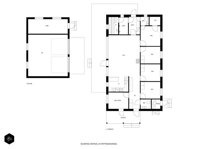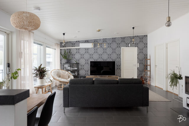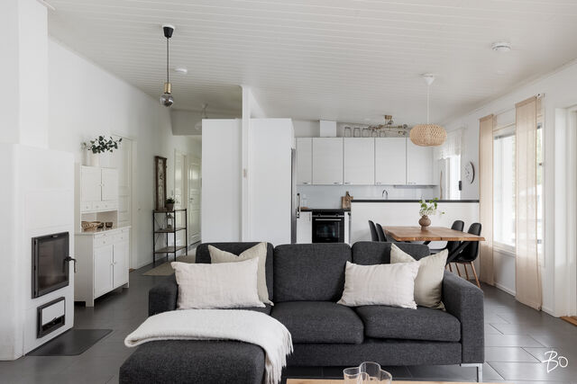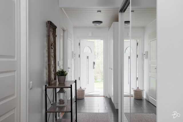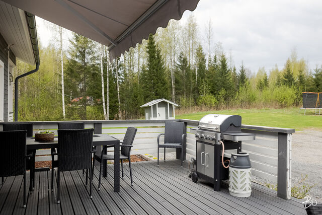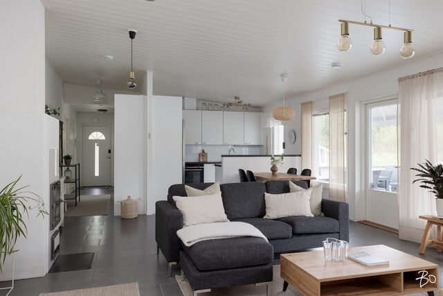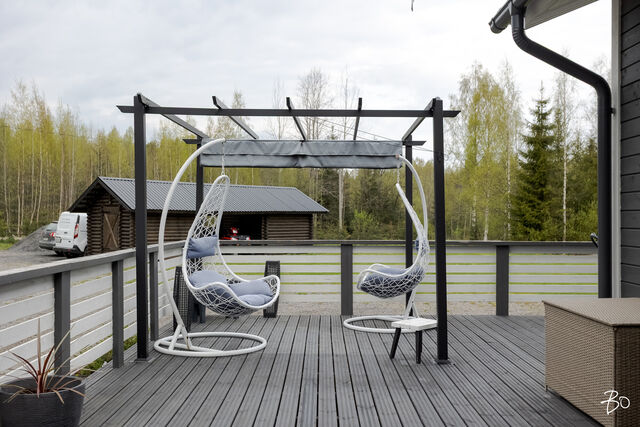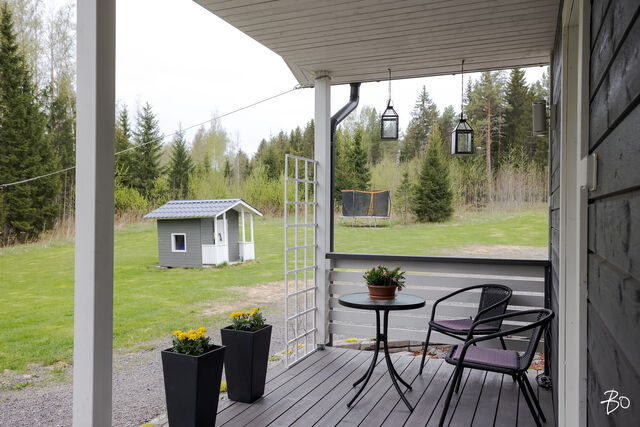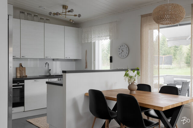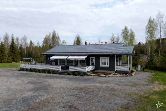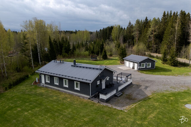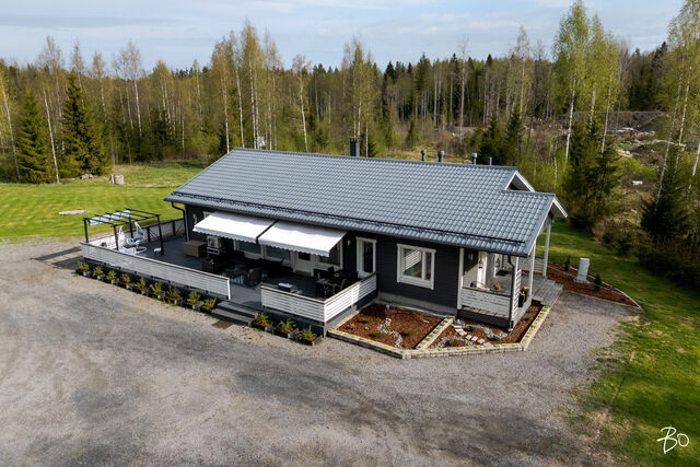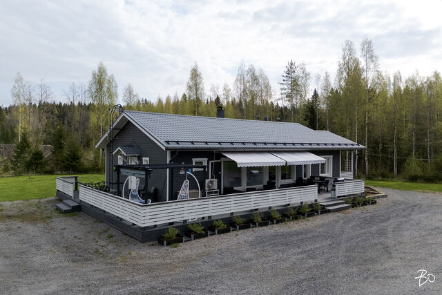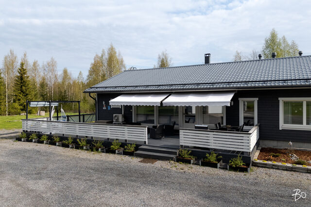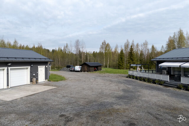 Etusivu / Keski-Suomi / Jyväskylä / Vesankajärventie 249 1 / 1 Vesankajärventie 249 Vesanka, Jyväskylä | Omakotitalo | 6h,k,s,kph,khh,2xwc,at,var, 338 000 € Velaton hinta 120,8 m2 Asuinpinta-ala 123,0 m2 Kokonaispinta-ala 2018 Rakennusvuosi Unelmiesi koti kutsuu sinut nauttimaan tilavasta ja tyylikkäästä asumisesta Vesankajärventiellä! Tämä upea Kastelli-talo yhdistää laadukkaat puitteet sekä kodikkaan tunnelman, ja se täyttää vaativimmankin asukkaan toiveet.Tämä yksitasoinen, vuonna 2018 valmistunut omakotitalo tarjoaa asukkailleen avarat tilat ja huolella suunnitellut pohjaratkaisut. Kodissa on huikeat viisi makuuhuonetta, joista yksi on varustettu omalla uloskäynnillä, mikä tuo joustavuutta monenlaisiin asumistarpeisiin.Nykyaikainen keittiö yhdistyy luontevasti olohuoneeseen, ja suuret ikkunat tuovat runsaasti luonnonvaloa sisään luoden avaran ja kutsuvan ilmapiirin. Laadukkaat materiaalit ja viimeistellyt yksityiskohdat tekevät tästä kodista sekä ajattoman kauniin että käytännöllisen. Asumismukavuutta lisäävät kaksi erillistä wc-tilaa sekä sauna ja kodinhoitohuone.Pihamaalta löytyykin tilaa niin lasten leikeille kuin puutarhaharrastuksillekin. Kahden auton lämmin autotalli tekee arjesta sujuvaa, ja sen yhteydessä oleva varasto mahdollistaa monipuoliset käyttötarkoitukset, kuten yritystoiminnan tai harrastetilan. Lisäksi tontilla on 20 metriä omaa rantaviivaa, mikä tarjoaa erinomaiset puitteet veneilyyn ja kalastukseen omasta pihapiiristä. Lapsiperheelle tämä kohde on ihanteellinen, sillä läheltä löytyvät koulu ja päiväkoti takaavat sujuvat arjen rutiinit, eikä kyläkauppa, joka palvelee 24/7, jätä ruokaostoksia viime tippaan. Jyväskylän kaupungin monipuoliset palvelut ovat vain lyhyen ajomatkan päässä, mikä tekee arkielämästä entistäkin sujuvampaa.Tämä ainutlaatuinen kohde odottaa uusia asukkaitaan! Tule tutustumaan ja ihastu itse tähän viehättävään, luonnonläheiseen kotiin, joka tarjoaa kaikki nykyajan mukavuudet upeassa ympäristössä.Tervetuloa tutustumaan ja ihastumaan tähän upeaan kohteeseen paikan päälle, ja löydä uusi koti, joka tarjoaa täydelliset puitteet elämiseen!Ismo Nieminenasuntomyyjä, KiLAT, partner040 962 2473ismo.nieminen@bo.fiKatja Pyöräläkiinteistönvälittäjä LKV, partner040 541 2504katja.pyorala@bo.fi Kiinnostaako tämä kohde?Ota meihin yhteyttä tai jätä viesti Ismo Nieminen asuntomyyjä, KiLAT, partner 040 962 2473 ismo.nieminen@bo.fi Tutustu välittäjään Varaa aika kalenteristani RakennusRakennusvuosi (aloitettu)2018Käyttöönottovuosi2018RakennusmateriaaliPuuKattotyyppiHarjakattoKateRuukin peltikateKaton kuntoHyväAsuinpinta-ala120,8 m2 (123,0 m2)Lisätietoja pinta-alastaPinta-alatiedot on saatu rakennuslupapiirustuksista. Muihin tiloihin kuuluu tekninen tila. Autotallirakennuksen pinta-ala 59,7m2 (autotalli 44,1m2 ja varasto 15.6m2)Kerrokset1Muut tilat2,2 m2LämmitysVesikiertoinen lattialämmitys. HyväLämmitysjärjestelmän kuvausIlmavesilämpöpumppu, puu, ilmalämpöpumppuHuoneluku6h,k,s,kph,khh,2xwc,at,var,Keittiön muut varusteetAstianpesukone, kiinteät valaisimet, liesituuletin / hormiLiesiInduktioliesi, erillisuuniKeittiön työtasojen materiaaliLaminaattiKeittiön lattiamateriaaliLaattaKeittiön seinien materiaaliMaalattuKylpyhuoneen varustusLattialämmitys, suihku, kiinteät valaisimetKylpyhuoneen lattiamateriaaliLaattaKylpyhuoneen seinämateriaaliKaakeliSaunaAsunnossa on saunaSaunan lattiamateriaaliLaattaSaunan seinämateriaaliPuuWC-tilojen kuvausVarustus: lattialämmitys, peilikaappi, bidee-suihkuLukumäärä: 2Lattiamateriaalit: laattaSeinämateriaalit: maalattuKodinhoitohuoneVarustus: pesukoneliitäntä, lattialämmitys, lattiakaivo, pyykkikaapit, pöytätaso, keskuspölynimuriLattiamateriaalit: laattaSeinämateriaalit: maalattuMakuuhuoneen kuvaus, lisätiedot ja varustusLukumäärä: 5Lattiamateriaalit: vinyyliSeinämateriaalit: maalattuOleskelutilojen kuvaus, lisätiedot ja varustusLattiamateriaalit: laattaSeinämateriaalit: maalattu, tapettiMuut tilatAutotallin päässä lämmin varasto, lämmitysmuoto ilmalämpumppu, oma wc.TakkatiedotTakkaMuut säilytystilatVaatehuone, ulkovarastoKuntoHyväEnergiatodistusKylläEnergialuokkaB2018Lisätietoja energiatodistuksestaAutotallin energialuokka A2018. KiinteistötiedotKiinteistötunnus17941100030012Kortteli/Kiinteistön nimiVilla NettaTyyppiTilaTontin tyyppiTasamaatonttiTontin koko3,14 haTontin omistusOmaPanttikirjat380 000,00 €Rasitukset ja rasitteetTierasiteLisätietoja tontistaTie perilleVesijohtoPorakaivoVeden laatu ja riittävyysRiittävyys hyvä. Kaivovesitutkimus tehty 7.8.2025. Vesinäyte oli tutkitulta osin hyvää talousvettä.ViemäriOma, pienpuhdistamoRakennusoikeus350,0 m2Lisätietoja rakennusoikeudestaPiirustusten mukaan talo 144 k-m2 ja talli 69 k-m2 eli rakennusoikeutta käytetty noin 213 m2. Rakennusvalvonnasta saadun tiedon mukaan kokonaisrakennusoikeus on 350 m2. Rakennusala on nykyisistä rakennuksista etelään päin. Muita tietojaOmaa rantaviivaa, metriä20 mRannan kuvausTilan pohjoispään raja kulkee n. 20m Saarijärven rantaa. Tilan itäpuolen raja kulkee osin puron vartta myötäillen. Rantatilan ja vesirajan väliin on muodostunut vesijättöalue, joka ei kuulu kauppaan. Vesistön nimiSaarijärviPalvelutVesangan kyläkauppa n.2,2km, Palokan marketit n. 10,5km. Palokan terveysasema n. 12,5km.KouluVesangan koulu n. 2km.PäiväkotiVesangan päiväkoti n. 1,8km.LiikenneyhteydetJyväskylän paikallisliikenne, lähin pysäkki n. 2,6km. AsumiskustannuksetKiinteistövero1 008,00 €Muut maksut / lisätietoa maksuistaSähkönkulutus ilman autonlatausta 13-14 000kWh. Umpisäiliön tyhjennys 160€/kerta, tyhjennetty kerran vuodessa 4 henkilön taloudessa. HintaVelaton hinta338 000,00 €Myyntihinta338 000,00 € VapautuuSopimuksen mukaanMaksuehtoKäteinen. Sinua voisi kiinnostaa Asunnon hinta-arvio ja arviokäynti Asunnon hinta-arvio ja arviokäynti Mitä hinta-arvio maksaa tai