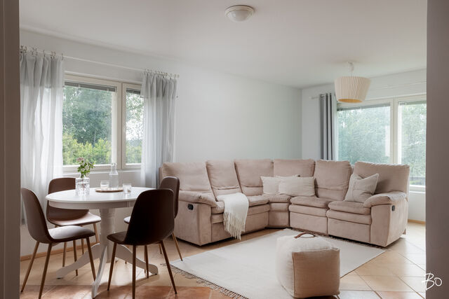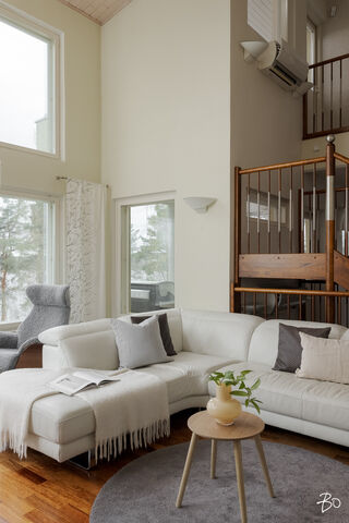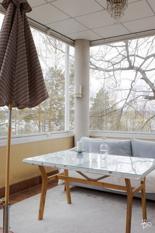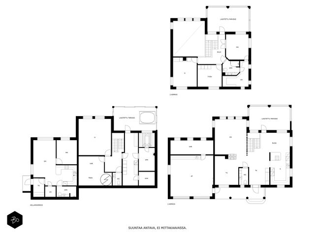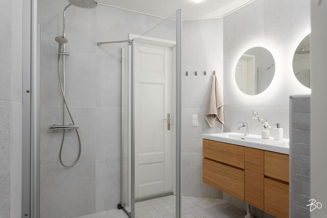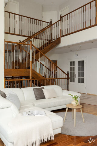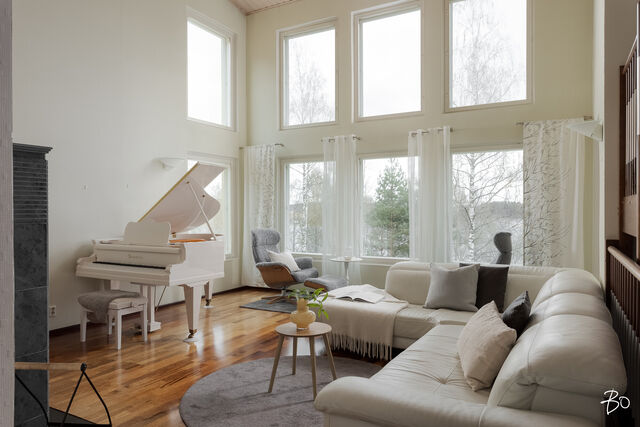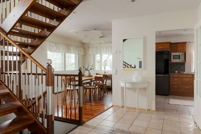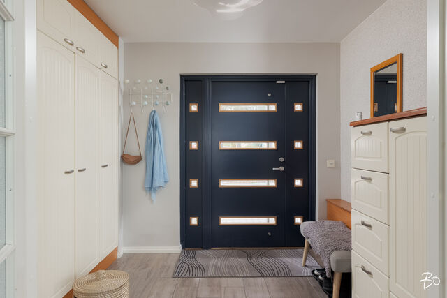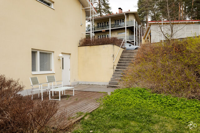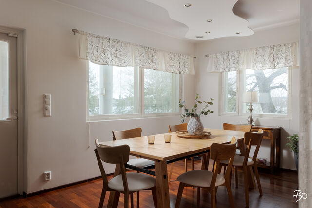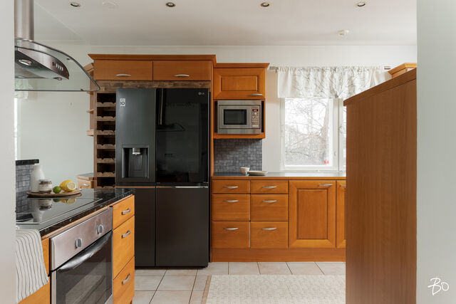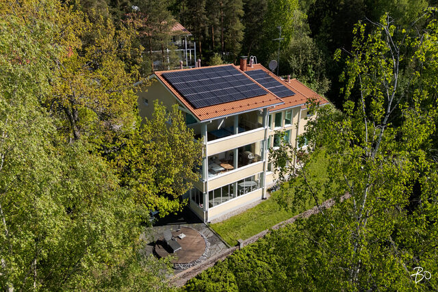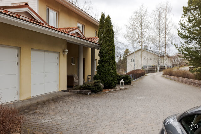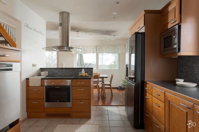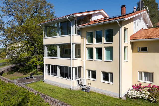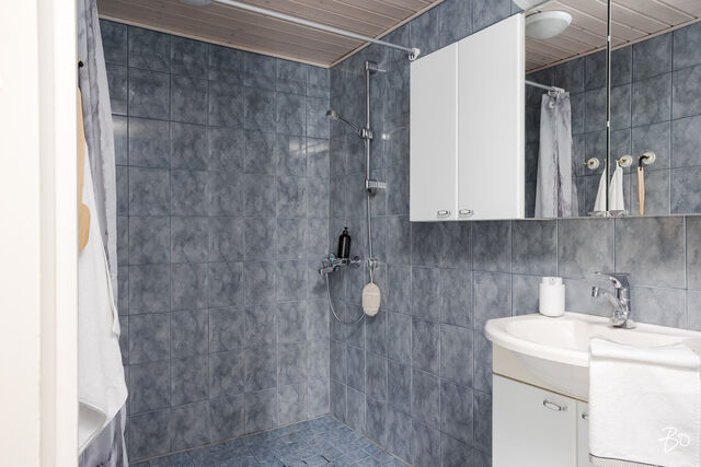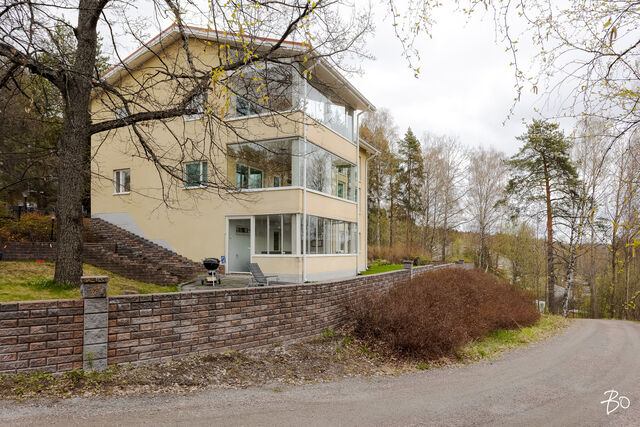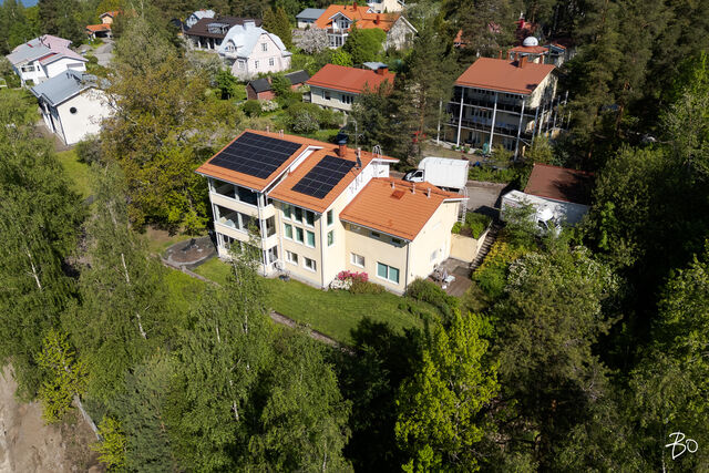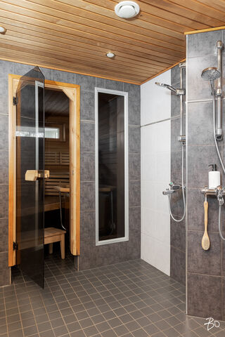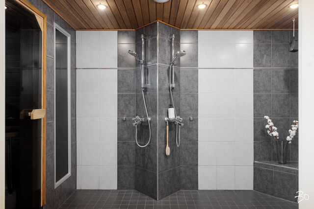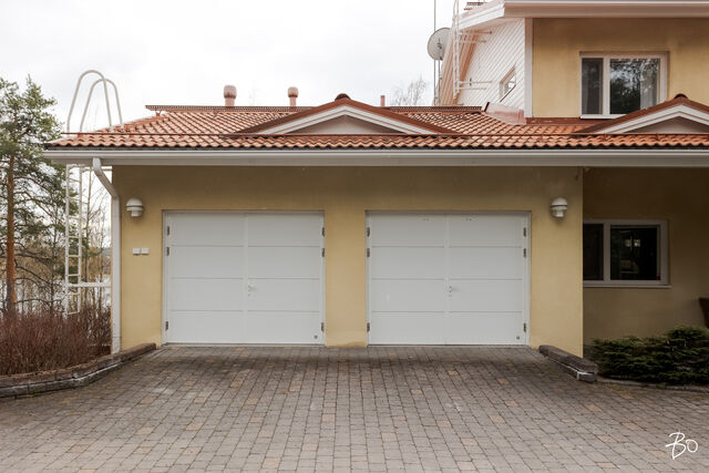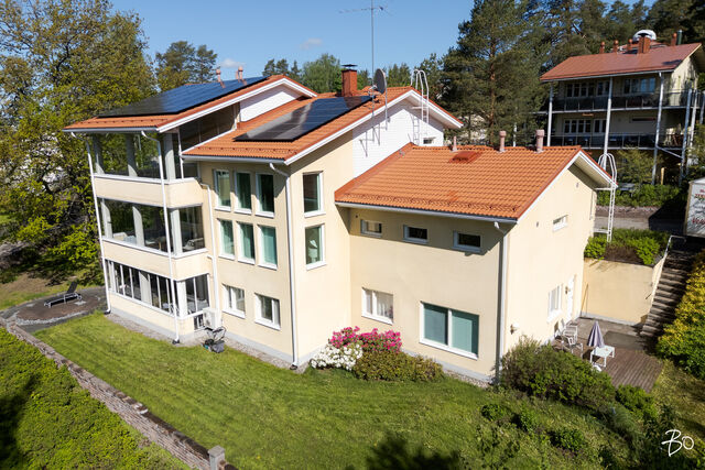 Etusivu / Keski-Suomi / Jyväskylä / Kuovinkuja 8 1 / 1 Kuovinkuja 8 Halssila, Jyväskylä | Omakotitalo | 3 mh, tv-h, th, k, rt, 2 kph, khh, 2 wc, at, ak, kaksio, 3 x lasitettu parveke/terassi 649 000 € Velaton hinta 284,0 m2 Asuinpinta-ala 336,0 m2 Kokonaispinta-ala 2002 Rakennusvuosi Harvinaisuus! Tätä valtavaa taloa ulkopuoliset voivat kutsua linnaksi tai vaikka kerrostaloksi. Hulppeat neliöt ovat sijoitettu kolmeen kerrokseen ja asuintaloon on kytkettynä lyhtyaikaisvuokrakäytössä oleva erillinen kaksio. Asuintilaa on 284 m2 ja lisänä kahden auton talli varastotilalla sekä kolmen auton katos. Tästä ylväästä Lammi-kivitalosta on järvinäkymät ja talo sijoittuu korkealle tuoden asumiseen yksityisyyttä. Halssilassa päättyvän kadun viimeinen talo on sijainniltaan lähellä keskustan ja Sepän palveluita, mutta myös kaikkea muuta mitä laadukas asuminen vaatii. Sisäänkäynti on keskikerrokseen, jossa sijaitsevat keittiö, ruokailutila, korkea olohuone isoilla ikkunoilla, tv-huone sekä wc. Yläkerrassa on kaksi makuuhuonetta, työhuone, vaatehuone sekä uusittu kylpyhuone. Alakerrassa sijaitsevat saunatilat, kylpyhuone, kodinhoitohuone, erillinen wc sekä valtava erillishuone joka voi olla esimerkiksi makuuhuoneena tai viihdehuoneena. Alakerran laatoitukset on uusittu kauniilla valkealla laatalla ja kylpyhuoneesta pääsee vilvoittelemaan lasitetulle terassille ja porealtaaseen. Alakerrassa on erillisellä kululla oleva kaksio, joka on ollut lyhytaikaisessa vuokrakäytössä hyvällä vuositulolla, jolla ollaan katettu kaikki muut asumiseen liittyvät kulut vuoden ajalta. Tulokerroksessa on kahden auton lämmin talli, joka nykyisellään on ajanviettokäytössä. Tilassa on biljardipöytä sekä baaritiski, oikein viimeisen päälle mies- tai naisluola. Pihapiiriin on tehty myös kolmen auton autokatos. Erikoisuutena tässä kolmikerroksisessa talossa on lasitetun terassin lisäksi myös lasitetun parvekkeen jokaisessa kerroksessa. Talo on sähkölämmitteinen vesikiertoisella lämmönjaolla. Lämmitystä tukee vähällä käytöllä ollut varaava takka, kaksi ilmalämpöpumppua sekä 2023 asennettu aurinkovoimala. Ilmanvaihto on koneellinen tulo- ja poisto lämmöntalteenotolla. Tontti on puistomainen ja oma. Kohde tosiaan on uniikki. Uniikki mahdollisuus sellaiselle joka etsii vankkaa kivitaloa, joka kooltaan on yksi Jyväskylän suurimmista taloista, mutta silti lähellä palveluita lyhyen etäisyyden päässä keskustasta. Pääset kävelytietä suoraan rantaraitille lenkkeilemään ja lasten palvelut myös kävelyetäisyydellä. Esittelemme taloa yksityisesittelyin, varaathan kuitenkin tarpeeksi aikaa kohteen esittelylle.Tätä kivilinnaa välittää: Antti Saleva Bo LKV Jyväskylä 041 315 3527 antti.saleva@bo.fi Kiinnostaako tämä kohde?Ota meihin yhteyttä tai jätä viesti Antti Saleva asuntomyyjä, KTM, partner 041 315 3527 antti.saleva@bo.fi Tutustu välittäjään Varaa aika kalenteristani RakennusKäyttöönottovuosi2002RakennusmateriaaliKiviRakennusmateriaalien kuvausLammi-kivitaloKattotyyppiHarjaKateTiiliAsuinpinta-ala284,0 m2 (336,0 m2)Lisätietoja pinta-alastaHuoneistoala talon osalta 232 m2 ja kaksion osalta 52 m2. Kerrosala 352 m2. Muuksi tilaksi kirjattu autotalli sekä sen yhteydessä oleva varastotila. Autokatoksen kokonaisala rakennuslupaan toimitetun piirroksen mukaan 55,1 m2, rakennusluvan hakemisessa ilmoitettu kokonaisalaksi 49 m2. Kerrokset3Muut tilat52,0 m2Lämmitysjärjestelmän kuvausAurinkolämpö, sähkö, ilmalämpöpumppuLämmön jakotapaVesikiertoinen lattialämmitysHuoneluku3 mh, tv-h, th, k, rt, 2 kph, khh, 2 wc, at, ak, kaksio, 3 x lasitettu parveke/terassiKeittiön muut varusteetMikroaaltouuni, astianpesukone, kiinteät valaisimet, liesituuletin / hormiLiesiInduktioliesi, erillisuuniKeittiön työtasojen materiaaliLaminaattiKeittiön lattiamateriaaliLaattaKeittiön seinien materiaaliMaalattu, osalaatoitusPesutilojen kuvaus, lisätiedot ja varustusIso kylpyhuone pohjakerroksessa. Saunaosastolta helppo pääsy terassille ja porealtaaseen. Kylpyhuoneen varustusLattialämmitys, suihku, kiinteät valaisimetKylpyhuoneen lattiamateriaaliLaattaKylpyhuoneen seinämateriaaliKaakeliSaunaAsunnossa on saunaSaunan kuvaus, lisätiedot ja varustusSauna ikkunalla järvelle päin. Oma kaivo. Saunan lattiamateriaaliLaattaSaunan seinämateriaaliPuuWC-tilojen kuvausYläkerran wc uusittu 2020. Seinämallinen wc-istuin, tilava allaskaappi jossa kaksi hanaa sekä suihku. Keskikerroksen wc:ssä tilava kaapisto säilytykseen sekä allastaso. Alakerran wc:ssä pesutaso sekä tapetoidut seinäpinnat.Varustus: lattiakaivo, suihku, suihkuseinäLukumäärä: 3Lattiamateriaalit: laattaSeinämateriaalit: kaakeli, maalattu, tapettiKodinhoitohuoneKodinhoitohuone alakerrassa omassa sopissa. Paljon hyllytilaa. Viemäröinti pesukoneelle toteutettu 2024.Varustus: pesukoneliitäntä, lattialämmitysLattiamateriaalit: laattaSeinämateriaalit: maalattuMakuuhuoneen kuvaus, lisätiedot ja varustusYläkerrassa kolme makuuhuonetta, lattiat uusittu ja seinäpinnat hyvässä kunnossa 2020. Vaatekaapista sekä yhden makuuhuoneen yhteydessä vaatehuonetila liukuovikaapistoilla.Lukumäärä: 4Lattiamateriaalit: parkettiSeinämateriaalit: maalattu, tapettiOleskelutilojen kuvaus, lisätiedot ja varustusOlohuone korkeaa tilaa suurilla ikkunoilla järven suuntaan (etelä). Olohuoneessa myös varaava takka.Lattiamateriaalit: parkettiSeinämateriaalit: maalattuMuut tilatAlakerrassa iso huone, joka viihdekäytössä. Voi toimia vaihtoehtoisesti makuuhuoneena tai harrastetilana. Tekninen tila alakerrassa erillisessä huoneessa jossa myös säilytystilaa. Tilassa sähköt, varaaja, kaivo, putkistoa ja ilmanvaihtokone (Vallox). Lasitetulla terassilla tilava Hot Spring- poreallas. Jokaisessa kolmessa kerroksessa on lasitettu parveke/ terassi. Kaksiovinen autotalli on lämmin ja tehty viihdekäyttöön. Tilassa biljardipöytä, baaritiski sekä sohva. Autotallissa lattialämmitys. T