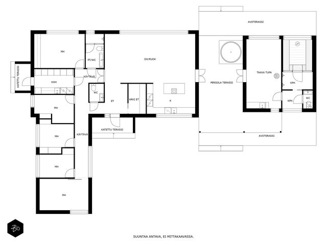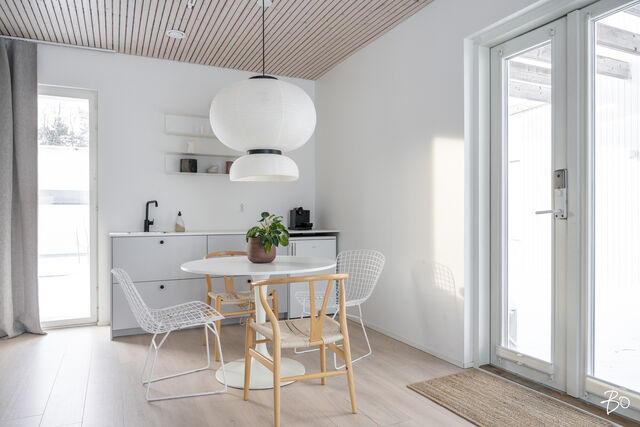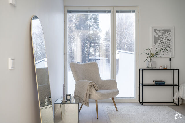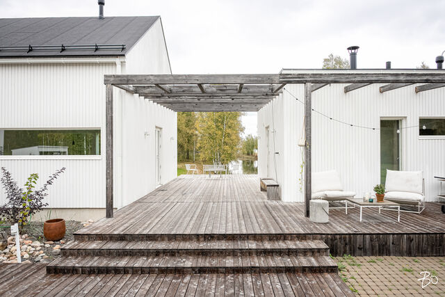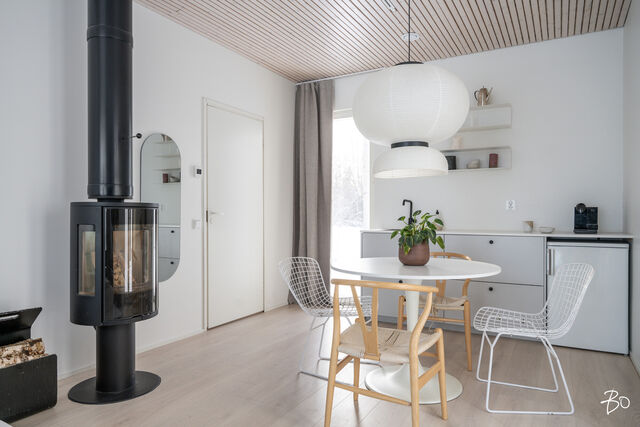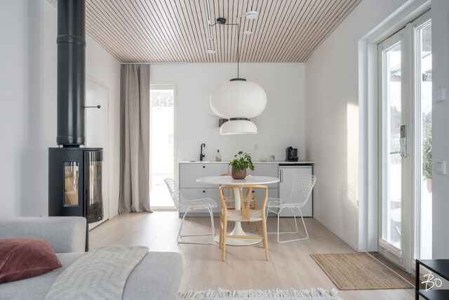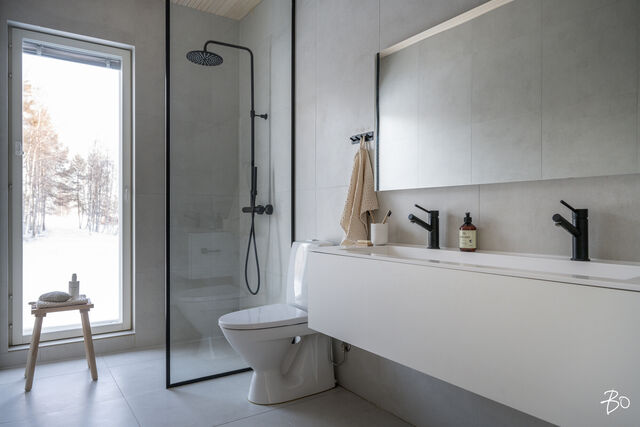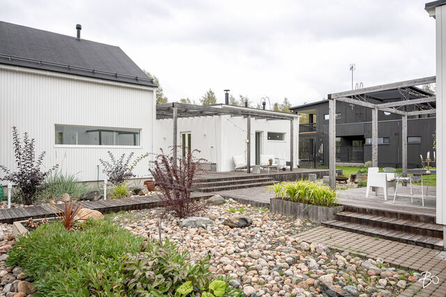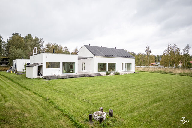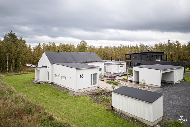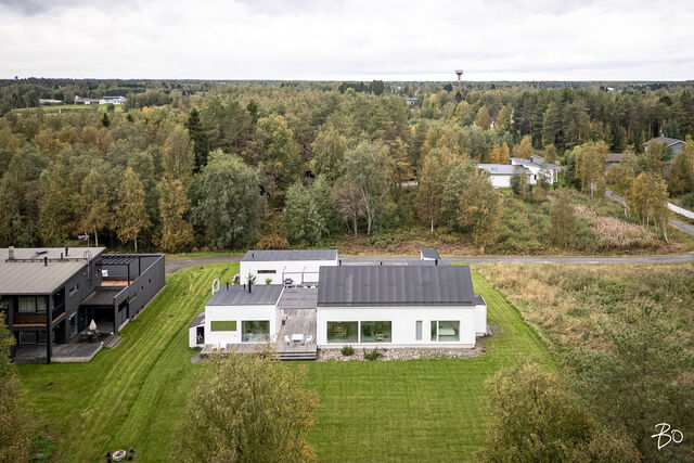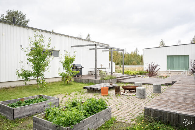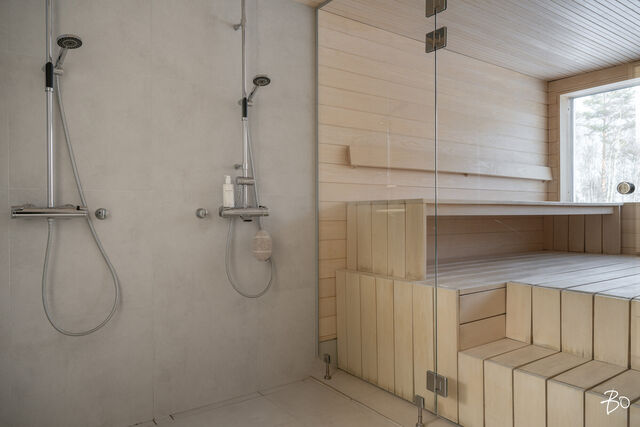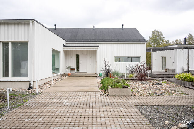 Etusivu / Pohjois-Pohjanmaa / Oulu / Madetojankuja 46 1 / 1 Madetojankuja 46 Oulunsalo, Oulu | Omakotitalo | 6h, k, khh, saunarakennus 665 000 € Velaton hinta 159,0 m2 Asuinpinta-ala 201,0 m2 Kokonaispinta-ala 2020 Rakennusvuosi Tervetuloa meren läheisyyteen Oulunsaloon!Upea arkkitehdin suunnittelema yksitasoinen, valoisa ja avara omakotitalo omalla tontilla meren läheisyydessä etsii uusia onnellisia omistajiaan jatkamaan kodin tarinaa! Koti on suunniteltu sujuva arki huomioiden, mm. pääsisäänkäynnin yhteydessä olevalla arkieteisellä, reilun kokoisella kodinhoitohuoneella runsaine säilytystiloineen sekä tilavalla ja tyylikkäällä keittiöllä saarekkeineen. Olohuoneessa on hulppean kokoiset ikkunat, joista on näkymät merelle. Ruokailutila yhdistää keittiön ja olohuoneen yhdeksi isommaksi kokonaisuudeksi. Keittiössä on tyylikkäät Arkkikalusteen kiintokalusteet aamiaiskaapin kera. Reilun kokoinen saareke toimii myös aamiaispöytänä, sillä ruokailutilan puolelle on jätetty tilaa tuoleille. Valoisasta päämakuuhuoneesta on niinikään kauniit näkymät merelle. Kodin muut makuuhuoneet ovat myös valoisat ja avarat, jokaisessa huoneessa on integroidut työpöydät. Kodinhoitohuoneessa on vaatesäilytys koko perheelle sekä runsaasti tilaa pyykkihuollolle. Asuinrakennuksen kylpyhuoneen yhteydessä on toinen kodin WC-tiloista.Terassin kautta on kulku saunarakennukseen, jossa on tupa oleskelutiloineen sekä takka tuomassa tunnelmaa. Spa-henkisessä kylpyhuoneessa on kaksi sadesuihkua ja tilavasta saunasta on rauhoittavat näkymät meren suuntaan. Kahden auton katoksen yhteydessä on noin 26 neliön kokoinen lämmin verstas/varastotila.Tämän upean kodin lämmitysmuoto on maalämpö vesikiertoisella lattialämmityksellä. Oma suojainen tontti tuo rauhaa ympäri vuoden. Tässä on tyylikäs kokonaisuus rauhallisella sijainnilla alle 20 minuutin ajomatkan etäisyydellä Oulun keskustasta ja reilun kymmenen minuutin ajomatkan etäisyydellä Kempeleen palveluista. Sovi oma esittelyaikasi!Maria Sippala | 040 723 5142 | maria.sippala@bo.fi Kiinnostaako tämä kohde?Ota meihin yhteyttä tai jätä viesti Maria Sippala myyntijohtaja Oulu, ylempi kiinteistönvälittäjä YKV, LKV, kaupanvahvistaja, partner 040 723 5142 maria.sippala@bo.fi Tutustu välittäjään Varaa aika kalenteristani RakennusKäyttöönottovuosi2020RakennusmateriaaliPuuKattotyyppiHarjakattoKateHuopakateAsuinpinta-ala159,0 m2 (201,0 m2)Lisätietoja pinta-alastaRakennuslupapiirustusten mukaan asuinrakennuksen huoneistoala on 150 m2 ja kerrosala 181 m2. Saunarakennuksen huoneistoala on 42 m2 ja kerrosala 51 m2. Verstas/varastorakennuksen huoneistoala on 26 m2 ja autokatosrakennuksen (sisältäen verstas/varastorakennuksen) kokonaispinta-ala 73m2.Kerrokset1Muut tilat42,0 m2Lämmitysjärjestelmän kuvausMaalämpöLämmön jakotapaSähköinen lattialämmitysHuoneluku6h, k, khh, saunarakennusKeittiön kuvaus, lisätiedot ja varustusKeittiössä on Arkkikalusteen kiintokalusteet, integroidut kodinkoneet sekä upea aamiaiskaappi. Induktiolieden yhteydessä liesituuletin aktiivihiilisuodattimella. Työtasot Hi-Macs kivikomposiittia. Lattiat liimattua parkettia.Keittiön muut varusteetMikroaaltouuni, astianpesukone, kiinteät valaisimetLiesiInduktioliesi, erillisuuniKeittiön työtasojen materiaaliMuuKeittiön lattiamateriaaliParkettiKeittiön seinien materiaaliMaalattuPesutilojen kuvaus, lisätiedot ja varustusAsuinrakennuksessa on kylpyhuone WC:llä, saunarakennuksessa toinen kylpyhuone kahdella suihkulla ja erillisellä WC:llä. Kylpyhuoneen varustusLattialämmitys, suihku, kiinteät valaisimetKylpyhuoneen lattiamateriaaliLaattaKylpyhuoneen seinämateriaaliKaakeliSaunaAsunnossa on saunaSaunan kuvaus, lisätiedot ja varustusTilavasta saunasta on upeat näkymät merelle. Saunan lattiamateriaaliLaattaSaunan seinämateriaaliPuuWC-tilojen kuvausAsuinrakennuksessa on erillinen WC sekä kylpyhuoneen yhteydessä toinen WC. Saunarakennuksessa on erillinen WC.Lukumäärä: 3Lattiamateriaalit: laattaSeinämateriaalit: kaakeliKodinhoitohuoneKodinhoitohuone on lähes 9 m2 kokoinen ja säilytystilaa on koko kodin vaatteille. Kiintokalusteet ovat laadukkaat Arkkikalusteen. Runsaasti tasotilaa sekä pyykinkuivatustilaa. Varustus: pesukoneliitäntä, pyykkikaapit, pöytätasoLattiamateriaalit: laattaSeinämateriaalit: maalattuMakuuhuoneen kuvaus, lisätiedot ja varustusPäämakuuhuoneessa on kokolattiamatto, muissa makuuhuoneissa on parkettilattia. Lukumäärä: 5Lattiamateriaalit: parketti, muuSeinämateriaalit: maalattuOleskelutilojen kuvaus, lisätiedot ja varustusOlohuoneessa on akustoitu katto ja liimattu parkettilattia.Lattiamateriaalit: parkettiSeinämateriaalit: maalattuTakkatiedotTakkaLattiamateriaalitEteisessä, olohuoneessa ja keittiössä liimattu parkettilattia, päämakuuhuoneessa kokolattiamatto, muissa makuuhuoneissa parkettilattia. Kylpyhuoneet, kodinhoitohuone ja wc-tilat laatoitettu.KuntoHyväEnergiatodistusKylläEnergialuokkaB2018Lisätietoja energiatodistuksestaVoimassa 8.3.2034 saakka. Saunarakennuksen energialuokka B2018. KiinteistötiedotKiinteistötunnus564-430-12-160TyyppiOmakotitaloTontin tyyppiTasamaatonttiTontin koko2 570,00 m2Tontin omistusOmaLisätietoja tontistaTie perilleVesijohtoKunnanViemäriKunnan AsumiskustannuksetKiinteistövero692,00 €Tiemaksut0,00 €Muut maksut / lisätietoa maksuistaSähkön kokonaiskulutus nykyisillä omistajilla on ollut n. 17 100 kWh/vuosi. Vesimaksut kulutuksen mukaisesti, jätehuolto oman sopimuksen mukaisesti. HintaVelaton hinta665 000,00 €Myyntihinta665 000,00 € VapautuuSopimuksen mukaan Sinua voisi kiinnostaa Asunnon hinta-arvio ja arviokäynti Asunnon hinta-arvio ja arviokäynti Mitä hinta-arvio maksaa tai miten arviokäyntiä varten kannattaa valmistautua? Katso vastauksemme usein kysyttyihin ky… Sneak Peek® Sneak Peek® Sneak Peek® -palvelumme on askeleen edellä! Löydä alueesi uusimmat ja upeimmat asunnot jo ennen kuin ne ilmestyvät as… Asunt