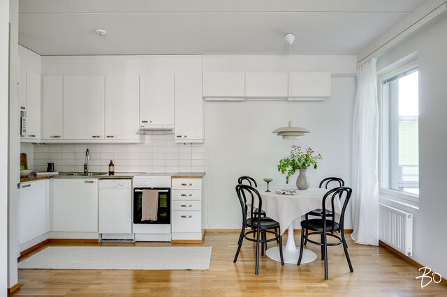 Etusivu / Varsinais-Suomi / Turku / Tikkutehtaankuja 2 1 / 1 Tikkutehtaankuja 2 Kähäri, Turku | Kerrostalo | 2-3h, avok, kph, s, erill.wc, et, lasit.p 209 000 € Velaton hinta 64,5 m2 Asuinpinta-ala 322,50 €/kk Hoitovastike 2012 Rakennusvuosi Ilmoittautuminen sunnuntain esittelyyn viimeistään samana aamuna klo.09:00. Tilava, valoisa ja moderni kaksio saunalla ja isolla lasitetulla parvekkeellaLoistavalla pohjaratkaisulla varustettu 64,5 neliöinen koti huippusijainnilla on monelle mieluisa. Asunto Oy Turun Tikkumäentie 2 B on valmistunut vuonna 2012 omalle tontille ja se tarjoaa huoletonta asumista pitkälle tulevaisuuteen. Tässä kodissa saat nauttia asumisesta hyvällä sijainnilla ja lähellä keskustan palveluita. Tämä ensimmäisen asuinkerroksen huoneisto sopii erinomaisesti omaan käyttöön tai sijoitukseen, ensiasunnon ostajalle tai vaikkapa kaupunkikodiksi. Asunto tarjoaa loistavan mahdollisuuden loihtia kodistasi juuri sinun tarpeisiisi sopivan. Huonelukumäärää on mahdollista muokata elämäntilanteen muuttuessa ja voit lisätä kotiisi helposti yhden huoneen. Olohuoneessa on varaus yhdelle lisämakuuhuoneelle.Ensimmäisenä huomio kiinnittyy kodin valoisuuteen ja erinomaiseen pohjaratkaisuun. Tilavan olohuoneen ikkunat suuntaavat kolmeen ilmansuuntaan ja siitä on kulku myös tilavalle lasitetulle parvekkeelle. Moderni vaalea avokeittiö on paitsi esteettisesti tyylikäs myös toiminnallisesti onnistunut ja säilytystilaa on asunnon neliöihin nähden todella mukavasti. Avokeittiön yhteydessä on myös luonteva paikka ruokapöydälle, jonka äärelle on mukava istuttaa illallisvieraat. Tyylikkään kylpyhuoneen kruunaa oma sauna. Tilasta löytyy myös wc-istuin ja liitäntä pyykinpesukoneelle. Eteisen yhteydessä on lisäksi vielä erillinen wc. Makuuhuone on tilava ja sen yhteydessä on vaatehuone. Mahdollisuus ostaa erikseen lukittu autokatospaikka yhtiön pihalta. Sijainti on ideaali, sillä alue on rauhallista, mutta hyvien yhteyksien ääressä vain alle 2 kilometrin päässä Turun kauppatorista.Lämpimästi tervetuloa tutustumaan!Myynti ja esittelyt/Miika Salmelap. 0500 533 582miika.salmela@bo.fi Kiinnostaako tämä kohde?Ota meihin yhteyttä tai jätä viesti Miika Salmela asuntomyyjä, partner 0500 533 582 miika.salmela@bo.fi Tutustu välittäjään HuoneistoOsakkeet353-481HallintamuotoAsunto-osakeyhtiöHuoneluku2-3h, avok, kph, s, erill.wc, et, lasit.pKerros/Kerroksia1/5Asuinpinta-ala64,5 m2Muut tilat0,0 m2Lisätietoja pinta-alastaPinta-alaa ei ole tarkistusmitattu. Isännöitsijäntodistuksen mukainen. Yhtiöjärjestyksen mukainen.NäkymätHuoneiston ikkunat ovat kolmeen ilmansuuntaan. ParvekeLasitettuParvekkeen ilmansuuntaLounasHissiTaloyhtiössä on hissiKeittiön kuvaus, lisätiedot ja varustusSiisti ja avonainen keittiö. Keittiön varustukseen sisältyy jääkaappi/pakastin, astianpesukone, mikroaaltouuni, induktioliesi ja uuni. Ikkunallinen ruokailutila löytyy keittiön vierestä. Lattia parkettia.Pesutilojen kuvaus, lisätiedot ja varustusTilava saunallinen kylpyhuone, jossa hyvät tilat myös pyykkihuollolle. Varustus: Suihku, wc-istuin, pesuallas, peilikaappi, pesukoneliitäntä. Lattia laattaa ja seinät kaakelia. Lattialämmitys.WC-tilojen kuvausErillinen wc eteisen yhteydessä. Varustus: WC-istuin, pesuallas ja peilikaappi. Lattia laattaa. Seinät maalattu.Saunan kuvaus, lisätiedot ja varustusOma ikkunallinen sauna. Sähkökiuas. Lattia laattaa. Seinät paneloitu. Makuuhuoneen kuvaus, lisätiedot ja varustusMakuuhuone on tilava ja sen yhteydessä on vaatehuone. Lattia parkettia. Oleskelutilojen kuvaus, lisätiedot ja varustusTodella tilava olohuone, josta on käynti myös lasitetulle parvekkeelle. Ikkunat kolmeen ilmansuuntaan. Olohuoneesta on mahdollisuus lohkaista yksi makuuhuone lisää. Lattia parkettia.Kauppaan ei kuuluIrtain. Muutostyöt huoneistossaHuoneiston seinät maalattu vuonna 2025.KuntoHyvä Kiinteistö- ja yhtiötiedotYhtiön nimiAsunto Oy Turun Tikkumäentie 2 BTontin omistusOmaTontin koko1 817,16 m2Käyttöönottovuosi2012RakennusmateriaaliBetoniKattotyyppiPulpettikattoKatePeltiLämmitysjärjestelmäKaukoEnergiatodistusKylläEnergialuokkaC2018Tehdyt korjaukset ja remontitIlmanvaihdon puhdistus ja säätö 2022, Salaojien ja hulevesiviemärien kuvaus 10- vuotistarkastuksen yhteydessä 2022, Parvekelasien huolto osa 1 2021, Varaston- ja ala-aulan liiketunnistimen asentaminen 2020.Tiedossa olevat tulevat korjaukset/remontitKunnossapitotarveselvityksen mukaan: Parvekelasien huolto osa 2 2023- Lainat100 944,99 €Kiinnitykset2 500 000,00 €IsännöitsijäVarsinais-Suomen Isännöintitalo Oy isannointi@isannointitalo.fi Maariankatu 4 C 20100 Turku Isännöitsijä Erkki Lindroos 0306221650 erkki.lindroos@puutorinisannointi.fiKiinteistönhoitoHuoltoyhtiöYhtiön tilat ja varusteluKuivaushuone, urheiluvälinevarasto, väestönsuoja, kaapeli-tv, huoneistokohtaiset varastot. Muita tietojaLisätietoa kaavoituksestaTurun kaupunkiVapautuuHeti AsumiskustannuksetHoitovastike322,50 €/kk (5,00 €/m2)Yhtiövastike yhteensä322,50 €Vesimaksun perusteOma mittariMuut maksut / lisätietoa maksuistaVarainsiirtovero 1,5% velattomasta kauppahinnasta erääntyy ostajan maksettavaksi kaupantekohetkellä. Vesi kulutuksen mukaan. Ennakkomaksu 20 euroa/kk/hlö. Käyttösähkö kulutuksen mukaan. Yhtiön osakeluettelo on siirretty Maanmittauslaitoksen huoneistotietojärjestelmään. Ostaja vastaa omistusoikeuden rekisteröintikustannuksista, mahdollisista osakekirjan mitätöinnistä aiheutuvista kustannuksista sekä mahdollisesta hakemusmaksun korotuksesta. Hallituksella on valtuudet periä tarvittaessa 1-2 kuukauden ylimääräinen hoitovastike yllättävien menojen kattamiseksi. HintaMyyntihinta209 000,00 € (3 240,31 €/m2)Velaton hinta209 000,00 € (3 240,31 €/m2)MaksutapaKäteinen. Sinua voisi kiinnostaa Asunnon hinta-arvio ja arviokäynti Asunnon hinta-arvio ja arviokäynti Mitä hinta-arvio maksaa tai miten arviokäyntiä varten ka