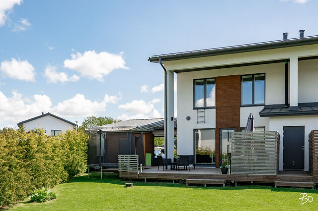 Etusivu / Varsinais-Suomi / Lieto / Nenärengas 3as2 1 / 1 Nenärengas 3as2 Nenämäki, Lieto | Rivitalo | 4h,k,kph/s/wc,kph/wc,vh,var,tekn,ak 309 000 € Velaton hinta 100,0 m2 Asuinpinta-ala 2019 Rakennusvuosi Tämä uudenkarhea koti odottaa uutta omistajaa. Vuonna 2019 valmistuneessa paritalossa laatu huokuu jo pihaan ajettaessa. Julkisivupinnoitteena on edustava rappaus, johon lämmintä kontrastia tuovat paneloinnit. Sisään astuessasi eteisaula aukeaa olohuoneeseen ja tyylikkääseen avokeittiöön, joiden korkeista ikkunoista on näkymä takapihalle. Olohuoneesta on käynti takapihan patiolle. Kevyttakka luo pimeinä syys- ja talvi-iltoina tunnelmaa. Portaat johtavat yläkertaan, jossa on kolme makuuhuonetta. Makuuhuoneiden korkeat ikkunat, tuovat mukavasti ilmettä ja lisää valoa tilaan. Tyylikäs kylpyhuone jatkuu lasiseinän takana olevaan vaaleasävyiseen saunaan, jossa on tasolauteeseen upotettu kiuas. Kotisi lämpenee edullisesti maalämmöllä. Ulkovarastoon saat puutarhan ja pihanhoitovälineet säältä suojaan. Tule ja ihastu!Tied. Petri Malmberg 0400260150, petri.malmberg@bo.fi Kiinnostaako tämä kohde?Ota meihin yhteyttä tai jätä viesti Petri Malmberg myyntipäällikkö, LKV, YKV, AKA, KHK, ETM julkinen kaupanvahvistaja, partner 0400 260 150 petri.malmberg@bo.fi Tutustu välittäjään HuoneistoHuoneluku4h,k,kph/s/wc,kph/wc,vh,var,tekn,akKerros/Kerroksia2Asuinpinta-ala100,0 m2Lisätietoja pinta-alastaEi tarkistemitattu, perustuu rakennuslupakuviinKeittiön kuvaus, lisätiedot ja varustusKorkea integroitu jääkaappi, korkea integroitu pakastin, induktioliesi, kalusteuuni- ja mikro, liesituuletin, integroitu astianpesukone, laminaattilattiaWC-tilojen kuvausLukumäärä: 2Saunan kuvaus, lisätiedot ja varustusSaunassa lasiseinä ja tasolaude, johon upotettu kiuas, kiukaan etäkäyttöpaneeli pukuhuoneen seinässäMakuuhuoneen kuvaus, lisätiedot ja varustusLukumäärä: 3Muut säilytystilatUlkovarastoKuntoHyväLisätietoa kunnostaPinnat erittäin hyvässä kunnossaTakkatiedotTakka Kiinteistö- ja yhtiötiedotTontin omistusVuokrattuTontin koko939,00 m2Tontin vuokraajaLiedon kaupunkiTontin vuokrasopimus päättyy25.05.2066Tontin vuokra1 200,00 €RakennusmateriaaliPuuKattotyyppiPulpettiKateSaumapeltiLämmitysjärjestelmäMaalämpöEnergiatodistusKylläEnergialuokkaB2018 Muita tietojaVapautuuSopimuksen mukaan AsumiskustannuksetMuut maksut / lisätietoa maksuistaVarainsiirtovero 3%kauppasummasta, kaupanvahvistajanmaksu 138€, jätemaksu tyhjennyskertojen mukaan HintaMyyntihinta309 000,00 € (3 090,00 €/m2)Velaton hinta309 000,00 € (3 090,00 €/m2)MaksutapaKäteinen. Sinua voisi kiinnostaa Asunnon hinta-arvio ja arviokäynti Asunnon hinta-arvio ja arviokäynti Mitä hinta-arvio maksaa tai miten arviokäyntiä varten kannattaa valmistautua? Katso vastauksemme usein kysyttyihin ky… Sneak Peek® Sneak Peek® Sneak Peek® -palvelumme on askeleen edellä! Löydä alueesi uusimmat ja upeimmat asunnot jo ennen kuin ne ilmestyvät as… Asuntovahti Asuntovahti Etsimässä uutta asuntoa? Aseta itsellesi Bo-asuntovahti. Saat tiedon heti, kun unelmiesi asunto tulee myyntiin. Bo Match Bo Match Kun asuntounelmat ja unelmien asunnot kohtaavat, syntyy Bo Match. Tutustu uudenlaiseen tapaan käydä asuntokauppaa.