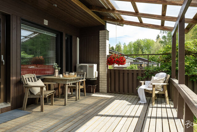 Etusivu / Pirkanmaa / Tampere / Tervasaarenkatu 5 1 / 1 Tervasaarenkatu 5 Olkahinen, Tampere | Rivitalo | 4h, k, s, ph, wc, varasto, at 198 000 € Velaton hinta 107,0 m2 Asuinpinta-ala 111,0 m2 Kokonaispinta-ala 1983 Rakennusvuosi Tilava rivitalokoti Olkahisissa!Tässä yksitasoisessa asunnossa on toimiva pohjaratkaisu lapsiperheen kodiksi.Hyvin varustellussa, isossa keittiössä on runsaasti työtasoa ja kaappitilaa, ja sinne mahtuu isonkin perheen ruokailuryhmä.Olohuoneesta on kulku katetulle terassille ja edelleen takapihalle. Suojaisa piha-alue rajoittuu viereiseen metsään.Asunnossa on kolme tilavaa makuuhuonetta, jotka ovat toisistaan erillään - jokaisella on oma rauhansa.Saunaosasto pitää sisällään tyylikkään sormipaneelilla paneloidun saunan ja ison pesuhuoneen. Pesuhuoneesta on seinämällä erotettu tila pyykkihuollolle ja pukuhuoneeksi.Aina tarpeellista säilytystilaa on makuuhuoneiden ja eteisen kaapistoissa. Lisäksi eteisaulan yhteydessä on erillinen varasto. Asunnon myynnin yhteydessä myydään erillinen autotalli omana osakkeenaan.Olkahinen on rauhallinen ja luonnonläheinen alue Näsijärven tuntumassa. Lähellä on päivähoito ja koulut Olkahisen koulu ja Tampereen kristillinen koulu. Liikenneyhteydet keskustan suuntaan ovat sujuvat niin omalla autolla, julkisilla kuin fillarillakin liikkuville.Asunto Oy Juhanpuisto on 1983 valmistunut 38 asunnon yhtiö. Yhtiössä on tehty laaja korjausohjelma, jonka yhteydessä rakentamisajalle tyypillinen sokkelirakenne on korjattu kengittämällä vastaamaan nykyisiä vaatimuksia. Tämä on tehty yhtiön kaikkiin asuntoihin, joten lisää kustannuksia ei ole odotettavissa.Yksityisesittelyt ja lisätiedotJukka Mesirantakiinteistönvälittäjä LKV, auktorisoitu pientalomyyjä PTM045 263 0995jukka@bo.fi Kiinnostaako tämä kohde?Ota meihin yhteyttä tai jätä viesti Jukka Mesiranta kiinteistönvälittäjä LKV, auktorisoitu pientalomyyjä PTM, partner 045 263 0995 jukka@bo.fi Tutustu välittäjään Varaa aika kalenteristani HuoneistoOsakkeet4687-5019HallintamuotoAsunto-osakeyhtiöHuoneluku4h, k, s, ph, wc, varasto, atKerros/Kerroksia1/1Asuinpinta-ala107,0 m2Muut tilat4,0 m2Lisätietoja pinta-alastaAsuinpinta-alaan laskettu yhtiöjärjestyksen mukainen pinta-ala 94 m2 ja monitoimihuone 13 m2. Muut tilat: varasto 4 m2. Pinta-aloja ei ole tarkistusmitattu.LiesiInduktioliesiKeittiön työtasojen materiaaliLaminaattiKeittiön lattiamateriaaliMuoviKeittiön seinien materiaaliMaalattuKylpyhuoneen varustusPesukoneliitäntä, suihkuKylpyhuoneen lattiamateriaaliLaattaKylpyhuoneen seinämateriaaliKaakeliWC-tilojen kuvausVarustus: lattiakaivoLattiamateriaalit: laattaSeinämateriaalit: tapetti, puolipaneeliSaunan lattiamateriaaliLaattaSaunan seinämateriaaliPuuMakuuhuoneen kuvaus, lisätiedot ja varustusLukumäärä: 3Lattiamateriaalit: laminaattiSeinämateriaalit: maalattu, tapettiOleskelutilojen kuvaus, lisätiedot ja varustusLattiamateriaalit: parkettiSeinämateriaalit: tapettiKauppaan ei kuuluIrtaimistoKuntoHyväTakkatiedotTakkavaraus Kiinteistö- ja yhtiötiedotYhtiön nimiAsunto Oy JuhanpuistoTontin omistusVuokrattuTontin koko13 312,00 m2Tontin vuokraajaTampereen kaupunkiTontin vuokrasopimus päättyy01.01.2032Tontin vuokra7 688,29 €Käyttöönottovuosi1983RakennusmateriaaliPuuKattotyyppiHarjakattoKateTiiliLämmitysjärjestelmäSähköEnergiatodistusKylläLisätietoja energiatodistuksestaViimeinen voimassaolopäivä 09.08.2034EnergialuokkaE2018Tehdyt korjaukset ja remontit2025 Terassiovien uusiminen, rännien ja otsalautojen uusiminen. Palovaroittimet. 2024 Ilmanvaihdon perusparannuskorjaukset, energiatodistuksen päivitys. 2023 Asuntojen lämpökamerakuvaus. 2022 Ilmanvaihdon puhdistus, mittaus ja säätö. Ulko-ovien ja lukkojen uusiminen. 2021 Katon huoltoremontti. 2020-21 Sisäilmakorjausremontti. 2016 Rikkinäisten kattotiilien vaihto, lahojen aitojen korjaus, leikkipaikan turvahiekan lisäys. 2014-16 Sokkelien maalaukset. 2014 Sokkelien ja portaiden paikkakorjaukset, B-talon edustan asfaltointi. 2012 Raitisilmaventtiilien asennus. Salaojien rakentaminen pihateiden puolelle. Sadevesijärjestelmän asennus. Roskakatoksen paloeristys, pohjan betonointi ja valaistuksen uusiminen. 2011 Kylpyhuoneiden saneeraus. 2009 Ilmanvaihtohormien puhdistus, leikkipaikan välineiden uusinta. Tiedossa olevat tulevat korjaukset/remontitSuunnitellut kunnossapito- ja muutostyöt: 2025 Julkisivutiilien saumoissa olevien halkeamien korjaus. Päivitetty kuntoarvio PTS. 2025-26 Lämminvesivaraajien vaihto elinkaaren päättyessä. 2026 Ikkunoiden huoltokorjaus, viemäreiden pesu ja huuhtelu. 2027 Ilmanvaihdon puhdistus, mittaus ja säätö. Autotallit18Lainat1 000 624,08 €Kiinnitykset2 300 000,00 €IsännöitsijäIsännöintitoimisto Kartanon Isännöintipalvelut Oy isannointi@kartanonip.fi Juvankatu 10, 33710 Tampere Henri Nevalainen, henri.nevalainen@kartanonip.fiKiinteistönhoitoHuoltoyhtiöYhtiön tilat ja varusteluUrheiluvälinevarasto, kaapeli-tv. Muita tietojaKouluOlkahisen ala-aste Kristillinen kouluLisätietoa kaavoituksestaTampereen kaupunkiVapautuuSopimuksen mukaanMuut kaupan kannalta merkittävät tiedotHuoneistojen yhteyteen rakennetun lämpimän lisätilan, jota ei ole merkitty yhtiöjärjestykseen, ylläpito ja kunnossapitovastuu kuuluu osakkaalle. AsumiskustannuksetHoitovastike263,20 €/kk (2,46 €/m2)Rahoitusvastike456,21 €/kk (4,26 €/m2)Yhtiövastike yhteensä719,41 €Vesi20,00 €/hlö/kkAutopaikka20,00 €/kkMuut maksut / lisätietoa maksuistaVesimaksu on ennakkomaksu, tasausmaksu 4,08 €/m3 HintaMyyntihinta148 910,00 € (1 391,68 €/m2)Velkaosuus49 090,00 € (458,79 €/m2)Velaton hinta198 000,00 € (1 850,47 €/m2)MaksutapaKäteinen. Sinua voisi kiinnostaa Asunnon hinta-arvio ja arviokäynti Asunnon hinta-arvio ja arviokäynti Mitä hinta-arvio maksaa tai miten arviokäyntiä varten kannattaa valmistautua? Katso vastauksemme usein kysyttyihin ky… Sneak Peek® Sneak Peek® Sneak Peek® -palvelumme on ask