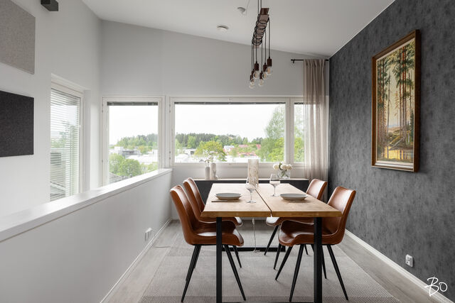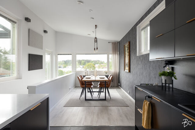 Etusivu / Päijät-Häme / Lahti / Rautellinkatu 32 1 / 1 Rautellinkatu 32 Paavola, Lahti | Erillistalo | 2mh, aula, rt, k, khh, kph, s, p, t 475 000 € Velaton hinta 140,0 m2 Asuinpinta-ala 560,00 €/kk Hoitovastike 2005 Rakennusvuosi Tilaa, tyyliä ja arkkitehtuuria kaupungin kattojen yllä!Asunto-osakeyhtiö Ancylus seisoo ylväänä Paavolan ylimmällä mäellä. Erityinen arkkitehtuuri vangitsee katseen jo ulkopuolella ja sisään tullessa hurmaantuu jo ensiaskeleilla. Eteisaulasta avautuvat upeat näkymät lasitetun parvekkeen ja ruokailutilan ikkunoista ovat kuin osa sisustusta ja katon tasoerot ja malli antavat asunnolle veistoksellisen erityisen ilmeen. Yläkerrassa yhden makuuhuoneen ja wc:n lisäksi on 2021 remontoitu upea keittiö, jonka suunnittelu valaistuksesta ja toiminnallisuudesta lähtien on erityisen laadukasta ja näyttävää. Ruokailulle jää oma iso tilansa ja aulatilaan sopii mukavasti vaikka sohvakin.Leijuvan portaikon askelmat on laatoitettu ja erityisenä huomiona myös lämmityksellä varustetut, portaikko toimii tilassa myös tyylikkäänä sisustuselementtinä. Alakerrassa oleskelutilat ja näyttävä takka huippuimurilla sekä tilava päämakuuhuone kauniilla pariovilla. Lasinen pihaan johtava liukuovi on koko takaseinän levyinen ja lasitetulla terassilla nautiskellaan poreammeessa jo aikaisesta keväästä myöhäiseen syksyyn. Terassille sopii hyvin myös ruokailuryhmä ja terassilla on myös kattoverhot ja infrapunalämmitin, joka mahdollistaa kivat ruokailuhetket ulkosalla keväästä syksyyn. Kesähelteillä kotia viilentää ilmalämpöpumput ja molemmissa kerroksissa on omansa.Alakerran kylpyhuonetilat ovat väljät ja kauniit, alakerrassa on myös oma erillinen wc ja komeassa saunassa Helo hetivalmis kiuas. Yläkerrassa sitten vielä erillinen wc omalla suihkullaan.Asuntoa on mittavasti remontoitu lasituksineen, kodinkoneineen, kiintokalusteineen ja valaistuksineen vuonna 2021 ja on käytännössä uudenveroisessa kunnossa. Vesikiertoinen lattialämmitys joka huoneessa ja keskuspölynimurikin löytyy.Myyjällä on mahdollisuus vaihdossa huomioida mahdollisesti myös osakehuoneisto, vapaa-ajan asunto tai maa-alue.Kun et tyydy tavanomaiseen ja haluat jotakin erityistä, niin tätä todella kannattaa tulla katsomaan. Kokonaisuus on upea. Tervetuloa!Tämä koti esitellään yksityisnäytöin, joten varaathan oman aikasi.Soita Marjo Hurskainen p. 040-9322892 tai meilaa marjo@bo.fi Kiinnostaako tämä kohde?Ota meihin yhteyttä tai jätä viesti Marjo Hurskainen kiinteistönvälittäjä LKV 040 932 2892 marjo@bo.fi Tutustu välittäjään Varaa aika kalenteristani HuoneistoOsakkeet174-313HallintamuotoAsunto-osakeyhtiöHuoneluku2mh, aula, rt, k, khh, kph, s, p, tKerros/Kerroksia1-2/2Asuinpinta-ala140,0 m2 (140,0 m2)Muut tilat0,0 m2Lisätietoja pinta-alasta Isännöitsijäntodistuksen mukainen. Yhtiöjärjestyksen mukainen.NäkymätKaunis näköala kaupunkimaisemiin.ParvekeLasitettuParvekkeen ilmansuuntaEteläKeittiön kuvaus, lisätiedot ja varustusKeittiö on remontoitu 2021-2022, jolloin kaikki keittiön kalusteet ja kodinkoneet on uusittu ja asennettu iso kivitasolla oleva saareke keittiöön. Ruokailutilan lattiassa oleva vinyylikorkki on uusittu myös 2021-22 tehdyn remontin yhteydessä.Pesutilojen kuvaus, lisätiedot ja varustusPesuhuoneen laatoitukset ovat alkuperäiset, mutta suihkut on uusittu 2021-22.Kylpyhuoneen lattiamateriaaliLaattaKylpyhuoneen seinämateriaaliKaakeliWC-tilojen kuvausYläkerran ja alakerran wc:n kaikki kalusteet on uusittu samoin kuin hanat 2021-22. Molemmat wc:iden laatoitukset ovat alkuperäiset. Laatoitukset ovat edelleen tyylikkäät ja siistissä kunnossa.Lukumäärä: 2KodinhoitohuoneVarustus: pesukone, pesukoneliitäntä, kuivausrumpu, kuivauskaappi, lattialämmitys, lattiakaivo, pyykkikaapit, pöytätaso, keskuspölynimuriLattiamateriaalit: laattaSeinämateriaalit: kaakeliSaunan kuvaus, lisätiedot ja varustusTyylikäs design -sauna.Makuuhuoneen kuvaus, lisätiedot ja varustusLukumäärä: 2Lattiamateriaalit: vinyylikorkkiSeinämateriaalit: maalattu, tapettiMuut tilatMolempien makuuhuoneiden lattioihin on asennettu vinyylikorkki 2021-22. Päämakuuhuoneen seinät on tapetoitu/maalattu, katto maalattu. Toisen makuuhuoneen katto ja seinät on maalattu. SeinämateriaalitMaalattu/tapettiLattiamateriaalitLaatta ja parkettiMuuta kauppaan kuuluvaaHuoneistossa on asennettuna hälytysjärjestelmä, joka jää ja on ollut siellä, kun nykyiset omistajat ovat asunnon ostaneet. Nykyisillä omistajilla se ei ole ollut käytössä. Huoneiston takka on uusittu 2021-22 tehdyn remontin yhteydessä.KuntoHyväLisätietoa kunnostaHuoneiston omalla vastuulla on omat lisävarustukset: ilmalämpöpumppujärjestelmä, alemman kerroksen liukulasiovi, pääsisäänkäynnin sähkösulatus ja eteläsivun koko lasikatos porealtaineen.TakkatiedotTakka Kiinteistö- ja yhtiötiedotYhtiön nimiAs Oy Ancylus LahtiTontin omistusOmaTontin koko1 566,00 m2Käyttöönottovuosi2005RakennusmateriaaliBetoniKattotyyppiPulpetti-/harjakattoKateKonesaumattu peltiLämmitysjärjestelmäKaukoEnergiatodistusKylläLisätietoja energiatodistuksestaViimeinen voimassaolopäivä 7.3.2035EnergialuokkaC2018Tehdyt korjaukset ja remontitIlmanvaihtohormit nuohottu -18, puujulkisivut huoltomaalattu -22, sadevesijärjestelmä uusittu 2024-25, kameravalvontajärjestelmä kyltteineen asennettu -24 (jokainen osakas voi kytkeytyä järjestelmään kännykällään), sadevesikaivoista poistettu ylimääräinen hiekka -24, huoneistokohtaiset kylmävesimittarit (teknisessä tilassa) on päivitetty uusiin 1.1.2025. Julkisivusaumaukset uusittu 9/2025, savuvaroittimet uusittu 6/2025. Lattialämmitysjärjestelmä ilmattu 7/2025, muurahaishaitta huoneisto C, hoidettu 7/2025. Huoneistojen takkahormit nuohottu 2025.Tiedossa olevat tulevat korjaukset/remontitAsunto-osakeyhtiön PTS: 2025-26 räystäiden huoltomaalaus (yht. noin 3.000 €) ja kun työ tehty, niin vuorimäntyjen korvaamista.