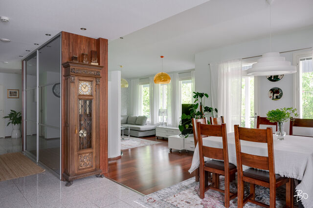 Etusivu / Varsinais-Suomi / Salo / Tammikuja 12 1 / 1 Tammikuja 12 Perniö, Salo | Omakotitalo | 5mh+oh+k+2kph+wc+khh+ph+s+aula+tk+2 var+tekn+at+parv+terassi 274 000 € Velaton hinta 260,0 m2 Asuinpinta-ala 2007 Rakennusvuosi Unelmakoti päättyvän tien varrella. Tilaa, tyyliä ja mukavuutta kolmessa kerroksessa!Tervetuloa kotiin, jossa kaikki on kohdallaan. Tämä vuonna 2007 valmistunut omakotitalo sijaitsee rauhallisella paikalla päättyvän tien päässä, omalla 1235 m² suojaisalla tontilla. Pihapiiri on huoliteltu: etupiha on laatoitettu ja takapihan vastikään uusittu kestopuuterassi tarjoaa täydelliset puitteet rentoutumiseen. Erityisesti poreammeen äärellä pääset rentoutumaan pitkän päivän päätteeksi.Asuminen sijoittuu kolmeen eri kerrokseen. Keskikerroksessa sijaitsee valoisa olohuone, kaksi makuuhuonetta ja laadukas keittiö. Keittiö on suunniteltu vaativankin kokin tarpeisiin. Laadukkaat keittiön kodinkoneet mm. viinikaappi ja espressokone tuovat arkeen luksusta.Kodissa on peräti viisi makuuhuonetta, sijoittuen kätevästi kaikkiin kerroksiin. Näin jokaiselle perheenjäsenelle löytyy oma rauhallinen tila. Alakerrassa on viihtyisä takkahuone ja baaritila, jossa voi rentoutua saunaillan jälkeen. Tilava sauna heti valmiilla kiukaalla on aina käyttövalmiina. Myös tilava kodinhoitohuone helpottaa arkea ja tekee kodinhoidosta sujuvaa.Lisäksi runsaat varastotilat varmistavat, että kaikki tarvittava mahtuu arjen keskellä järjestykseen. Tällaisia hyväkuntoisia, monipuolisia ja tyylillä toteutettuja koteja on harvoin tarjolla ja vielä näin rauhallisella sijainnilla lähellä kouluja sekä palveluita.Ota yhteyttä ja tule paikan päälle ihastumaan!Tommi LammervoKiinteistönvälittäjä, LKV, partnerp. 044 907 2620Sähköposti: tommi@bo.fi____________________________________________________Onko oma koti vielä myymättä? Pyydä veloitukseton arviokäynti minulta. Kiinnostaako tämä kohde?Ota meihin yhteyttä tai jätä viesti Tommi Lammervo kiinteistönvälittäjä LKV, partner 044 907 2620 tommi.lammervo@bo.fi Tutustu välittäjään Varaa aika kalenteristani RakennusRakennusvuosi (aloitettu)2006Käyttöönottovuosi2007RakennusmateriaaliPuu, kiviKattotyyppiPulpettiKateTiiliKaton kuntoPesty ja suojattu -24Asuinpinta-ala260,0 m2 (260,0 m2)Lisätietoja pinta-alastaAsuinpinta-alat 260m2, kerrosala 304m2, kokonaisala 380m2. Ilmoitetut pinta-alat perustuvat rakennuspiirustuksiin. Pinta-alat eivät ole tarkistusmitattu.Kerrokset3Muut tilat0,0 m2Lämmitysjärjestelmän kuvausSähkö, ilmalämpöpumppuLämmön jakotapaSähköinen lattialämmitys, sähköinen kattolämmitys, uuni/takka, ilmalämpöpumppuHuoneluku5mh+oh+k+2kph+wc+khh+ph+s+aula+tk+2 var+tekn+at+parv+terassiKeittiön kuvaus, lisätiedot ja varustusLisäksi integroitu kahvinkeitinKeittiön muut varusteetLiesituuletin, mikroaaltouuni, astianpesukoneLiesiInduktioliesi, erillisuuniKeittiön työtasojen materiaaliKiviKeittiön lattiamateriaaliLaattaKeittiön seinien materiaaliMaalattuKylpyhuoneen varustusLattialämmitys, wc-istuin, suihkuKylpyhuoneen lattiamateriaaliLaattaKylpyhuoneen seinämateriaaliKaakeliSaunaAsunnossa on saunaWC-tilojen kuvausVarustus: lattialämmitys, bidee-suihkuLukumäärä: 3Lattiamateriaalit: laattaSeinämateriaalit: kaakeliKodinhoitohuoneVarustus: pesukoneliitäntä, pesuallas, lattialämmitys, lattiakaivo, silityspöytä/taso, pyykkikaapit, keskuspölynimuriLattiamateriaalit: laattaSeinämateriaalit: maalattuMakuuhuoneen kuvaus, lisätiedot ja varustusLukumäärä: 5Lattiamateriaalit: parketti, lautaSeinämateriaalit: tapettiOleskelutilojen kuvaus, lisätiedot ja varustusLattiamateriaalit: parkettiSeinämateriaalit: tapettiTulisija2 kplTakkatiedotTakkaKauppaan ei kuuluIrtaimistoKuntoHyväEnergiatodistusKylläEnergialuokkaC2018 KiinteistötiedotKiinteistötunnus734-619-36-22TyyppiTilaTontin tyyppiRinnetonttiTontin koko1 235,00 m2Tontin omistusOmaPanttikirjat380 000,00 €Lisätietoja tontistaTie perilleVesijohtoKunnanViemäriKunnanRakennusoikeus308,8 m2Lisätietoja rakennusoikeudestaSalon rakennusvalvonta AsumiskustannuksetPuhtaanapito22,41 €Kiinteistövero1 059,52 €Muut maksut / lisätietoa maksuistaVarainsiirtovero 3 % ja kaupanvahvistajankulu. HintaVelaton hinta274 000,00 €Myyntihinta274 000,00 € Vapautuu1kk / sopimuksen mukaan Sinua voisi kiinnostaa Asunnon hinta-arvio ja arviokäynti Asunnon hinta-arvio ja arviokäynti Mitä hinta-arvio maksaa tai miten arviokäyntiä varten kannattaa valmistautua? Katso vastauksemme usein kysyttyihin ky… Sneak Peek® Sneak Peek® Sneak Peek® -palvelumme on askeleen edellä! Löydä alueesi uusimmat ja upeimmat asunnot jo ennen kuin ne ilmestyvät as… Asuntovahti Asuntovahti Etsimässä uutta asuntoa? Aseta itsellesi Bo-asuntovahti. Saat tiedon heti, kun unelmiesi asunto tulee myyntiin. Bo Match Bo Match Kun asuntounelmat ja unelmien asunnot kohtaavat, syntyy Bo Match. Tutustu uudenlaiseen tapaan käydä asuntokauppaa.