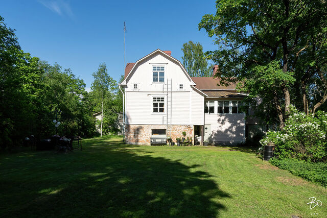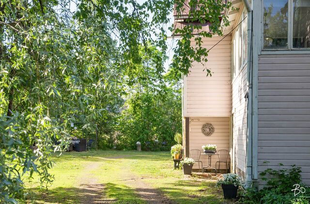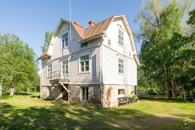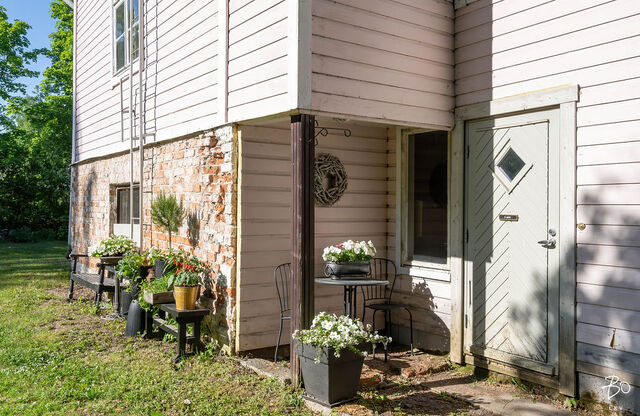 Etusivu / Uusimaa / Porvoo / Kuninkaantie 777 1 / 1 Kuninkaantie 777 Hinthaara, Porvoo | Omakotitalo | 5h, keittiö, kph/wc, sauna, kellari 349 000 € Velaton hinta 135,0 m2 Asuinpinta-ala 1911 Rakennusvuosi Seuraava esittely: 12.10.2025 klo 12.00-12.30Ilmoittauduthan esittelyyn pe 10.10. klo 16:00 mennessä. Kiitos! HISTORIAN HAVINAA HINTHAARASSAKuninkaantien varrella katse kiinnittyy kauniiseen, roosan sävyiseen hirsitaloon. Suurella puutarhatontilla sijaitseva talo on kertakaikkisen suloinen näky taitekattoineen ja lukuisine ruutuikkunoineen. Talon on aikoinaan rakennuttanut Hinthaaran nahkatehtaan perustaja ja sittemmin suuri talo on palvellut työntekijöiden perheasuntoina. Vuosien 1911-1920 välisenä aikana valmistunut rakennus kätkee sisäänsä poikkeuksellisen ihastuttavan kodin, sisustussuunnittelijan todellisen taidonnäytteen. Kodin tilat on toteutettu varmalla otteella, vanhaa kunnioittaen ja uutta arvostaen. Talo on täynnä viehättäviä yksityiskohtia ja silmä jääkin viipyillen ihastelemaan niin vanhoja hirsiseiniä kuin lukuisia tulisijojakin. Värejä sekä materiaaleja on käytetty rohkeasti, mutta tarkkaan harkiten. Koti on eheä ja yhtenäinen kokonaisuus, jossa talon historia on tuotu kauniisti esille. Kaikkialta välittyy lämpö ja kodikkuus - tunnelma, jota vain rakkaudella pidetty koti voi huokua. Talon keskikerroksesta löytyvät kaksi suurta oleskelutilaa, kodikas keittiö skaffereineen, ruokailuhuone sekä päämakuuhuone ja kylpytilat. Yläkerran rauhaan on toteutettu kaksi reilun kokoista makuuhuonetta, joista toisen yhteydessä on todellinen etätyöntekijän unelma: erillinen, ikkunalla varustettu työtila. Talon kellarikerroksesta löytyvät tunnelmallinen puusauna, autotalli sekä runsaasti varastotilaa. Taloa on kunnostettu 2010-luvulta lähtien ja sisätilat ovat kokeneet vuosien varrella suuren muodonmuutoksen. Pintaremontin yhteydessä mm. lattiarakenteita on avattu ja seinähirsien kunto on tarkastettu. Huopakate, lämmöneristeitä sekä sähköjä on uusittu. Talon energiankulutus on ollut hyvin maltillinen, sillä sähkölämmityksen lisäksi pönttöuunit, takat ja puuhellat mahdollistavat tehokkaan ja kokonaisvaltaisen lämmittämisen puulla. Kymmenestä tulisijasta on aktiivikäytössä ollut neljä. Talo on kuntotarkastettu elokuussa 2024. Kuntotarkastukseen on mahdollista tutustua etukäteen. PUUTARHA JA RANTAPALSTATasainen 4555 m2 kokoinen puutarhatontti on suuri, mutta helppohoitoinen. Vehreä piha tarjoilee vuosittain niin hedelmäpuiden kuin marjapensaiden runsasta satoa. Kiinteistölle kuuluu myös Kuninkaantien toisella puolella avautuva palsta, joka sijaitsee Mustijoen rannassa. Rantapalsta mahdollistaa vaikkapa oman laiturin tai uimapaikan. Joen rannasta pääset myös kätevästi suppailemaan tai kanoottiretkelle. Asemakaava-alueella sijaitseva kiinteistö on liitetty kunnallistekniikkaan. IDYLLINEN KYLÄ PORVOOSSAPorvoossa sijaitseva Hinthaara on virkeä kylä vain 45 minuutin ajomatkan päässä Helsingistä. Aivan lähellä, noin puolentoista kilometrin päässä sijaitsevat koulu ja päiväkoti. Suuremmat kaupat sekä päivittäispalvelut löytyvät vartin ajomatkan päästä Porvoon keskustasta. Hinthaara edustaa hyvin hoidettua maalaismiljöötä, jossa yhdistyvät maaseudun rauha ja nykyaikainen elämänmeno. Aktiivisella kyläyhteisöllä on muun muassa omat nettisivut, joilta löytyy kattava kuvaus alueesta, sen historiasta, palveluista ja yhdistystoiminnasta. Tilaa kohteen kesäkuvapaketti sähköisesti sekä sovi oma näyttöaikasi!Myynti ja esittelyt:Niko Karhukiinteistönvälittäjä LKV, partner040 500 2789niko.karhu@bo.fiElina Valkeinen050 417 0101 / elina.valkeinen@bo.fiFB / IG: elinavalkeinen_lkv Kiinnostaako tämä kohde?Ota meihin yhteyttä tai jätä viesti Elina Valkeinen kiinteistönvälittäjä LKV, KiAT, partner, kaupanvahvistaja 050 427 0101 elina.valkeinen@bo.fi Tutustu välittäjään Varaa aika kalenteristani RakennusRakennusvuosi (aloitettu)1911Käyttöönottovuosi1911RakennusmateriaaliPuu, tiili, hirsiRakennusmateriaalien kuvausAsuinrakennus on pääosin hirsirunkoinen ja lautaverhoiltu. Pohjakerroksen/perustuksen rakennusmateriaali on tilli/betoni. KattotyyppiTaitekatto/harjakattoKateHuopakate Katon kuntoUusittu 2010 Asuinpinta-ala135,0 m2 (135,0 m2)Lisätietoja pinta-alastaPinta-aloja ei ole tarkistusmitattu, joten ne saattavat poiketa nykystandardeista. Kohteen hinta ei ole osaksikaan pinta-alaperusteinen. Pinta-alatieto perustuu Porvoon kaupungin rakennusvalvonnasta saatuun tietoon, jonka mukaan talon huoneistojen pinta-ala on 100 + 17 m2 ja talon kerrosala on 135 m2. Omistajan tekemän mittauksen mukaan keskikerroksen pinta-ala on n. 135 m2 ja yläkerta n. 40 m2. Kellarikerroksen pinta-alaa ei ole mitattu. Kerrokset3Muut tilat0,0 m2Lämmitysjärjestelmän kuvausPuu, sähköLämmön jakotapaSähköpatterilämmitys, uuni/takkaHuoneluku5h, keittiö, kph/wc, sauna, kellariKeittiön kuvaus, lisätiedot ja varustusKauniin kodikas ja ajaton keittiö on remontoitu vuonna vuonna 2012. Varustus: kaapistot (ovet täyspuu, koivu), astianpesukone (integr.), jääkaappi/pakastin (integr.), liesi, erillisuuni, puuhella, skafferi. Lattia: lauta Seinät: paneeli/tapettiPesutilojen kuvaus, lisätiedot ja varustusKeskikerroksessa sijaitseva kylpyhuone on tehty vuonna 2013. Tila on jaettu kolmeen erilliseen osaan (suihkutila, wc, kodinhoitotila). Varustus: suihku, erillinen wc-tila, lavuaari, kodinhoitopiste, lattialämmitys laatan alla Seinät: laatta (kph), hirsi/stucco-laasti (wc), stucco-laasti (khh-tila). Lattia: laatta SaunaAsunnossa on saunaSaunan kuvaus, lisätiedot ja varustusKellarikerroksessa tilava ja tunnelmallinen saunaosasto. Varustus: lauteet, puukiuas Seinät: paneeli Lattia: betoni WC-tilojen kuvausErillinen wc on remontoitu vuonna 2013. Wc sijaitsee keskikerroksessa kylpyhuoneen ja kodinhoitotilan yhteydessä. Varustus: wc, lavuaari, bideesuihku Seinät: hirsi, stucco-laasti Lattia: laatt