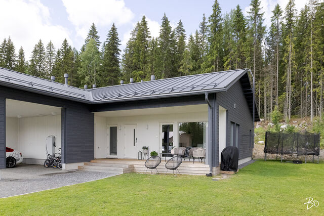 Etusivu / Keski-Suomi / Jyväskylä / Uunilinnuntie 17 B 1 / 1 Uunilinnuntie 17 B Matinmäki, Jyväskylä | Paritalo | 4h,k,vh,khh,2xwc,kph,s,teras. 288 000 € Velaton hinta 92,2 m2 Asuinpinta-ala 96,4 m2 Kokonaispinta-ala 2023 Rakennusvuosi Tervetuloa tutustumaan tähän uudenveroiseen ja avaraan yksitasoiseen paritaloon, joka sijaitsee rauhallisella Uunilinnuntiellä Jyväskylässä. Tämä koti tarjoaa täydelliset puitteet mukavaan ja helppoon asumiseen.Tämä vuonna 2023 valmistunut paritalokoti hurmaa heti astuessasi sisään. Tilava neljän huoneen koti on suunniteltu modernille perheelle, joka arvostaa avaruutta ja käytännöllisyyttä. Keittiö yhdistyy saumattomasti oleskelutilaan, luoden täydellisen ympäristön niin arjen askareille kuin vieraiden kestitsemiselle. Arkea helpottamaan on kaksi wc:tä sekä tyylikäs kylpyhuone ja sauna, jotka tarjoavat mukavuutta ja luksusta arkeen. Lisäksi tästä kodista löytyy erillinen kodinhoitohuone ja vaatehuone, jotka tekevät arjen pyörittämisestä helppoa ja sujuvaa. Autokatos tarjoaa suojaisan paikan autollesi, säällä kuin säällä. Uunilinnuntie sijaitsee suositulla asuinalueella, joka tarjoaa loistavat puitteet lapsiperheelle. Lähistöltä löytyvät päiväkodit, koulut ja muut arjen peruspalvelut. Alueella on hyvät ulkoilumahdollisuudet, jotka kutsuvat liikkumaan ja nauttimaan luonnosta ympäri vuoden. Tämä on ihanteellinen paikka asua, kun arvostat rauhallista ja turvallista ympäristöä, mutta palvelut ovat kuitenkin kätevästi saavutettavissa.Älä jätä tätä upeaa mahdollisuutta käyttämättä! Tervetuloa tutustumaan ja ihastumaan tähän ainutlaatuiseen kotiin paikan päällä. Varaa oma esittelyaikasi jo tänään.Ismo Nieminenasuntomyyjä, KiLAT, partner040 962 2473ismo.nieminen@bo.fi@bolkvismo Kiinnostaako tämä kohde?Ota meihin yhteyttä tai jätä viesti Ismo Nieminen asuntomyyjä, KiLAT, partner 040 962 2473 ismo.nieminen@bo.fi Tutustu välittäjään Varaa aika kalenteristani RakennusRakennusvuosi (aloitettu)2022Käyttöönottovuosi2023RakennusmateriaaliPuuKattotyyppiHarjakattoKatePeltiAsuinpinta-ala92,2 m2 (96,4 m2)Lisätietoja pinta-alastaPinta-alatiedot on saatu rakennuslupapiirustuksista. Muihin tiloihin sisältyy varasto.Muut tilat4,2 m2LämmitysVesikiertoinen lattialämmitys. HyväLämmitysjärjestelmän kuvausPoistoilmalämpöpumppuHuoneluku4h,k,vh,khh,2xwc,kph,s,teras.Keittiön kuvaus, lisätiedot ja varustusKeittiömaailman keittiö (alaspäin vetävä liesituuletin).Keittiön muut varusteetAstianpesukone, kiinteät valaisimetLiesiInduktioliesi, erillisuuniKeittiön työtasojen materiaaliLaminaattiKeittiön lattiamateriaaliLaminaattiKeittiön seinien materiaaliMaalattuKylpyhuoneen varustusLattialämmitys, wc-istuin, suihku, kiinteät valaisimetKylpyhuoneen lattiamateriaaliLaattaKylpyhuoneen seinämateriaaliKaakeliSaunaAsunnossa on saunaSaunan lattiamateriaaliLaattaSaunan seinämateriaaliPuuWC-tilojen kuvausPeili/taso/laatikosto.Varustus: lattialämmitys, bidee-suihkuLukumäärä: 2Lattiamateriaalit: laattaSeinämateriaalit: maalattuKodinhoitohuoneVarustus: pesukoneliitäntä, pesuallas, lattialämmitys, lattiakaivo, pyykkikaapit, pöytätasoLattiamateriaalit: laattaSeinämateriaalit: maalattuMakuuhuoneen kuvaus, lisätiedot ja varustusLukumäärä: 3Lattiamateriaalit: laminaattiSeinämateriaalit: maalattuOleskelutilojen kuvaus, lisätiedot ja varustusLattiamateriaalit: laminaattiSeinämateriaalit: maalattuTakkatiedotTakkavarausMuut säilytystilatVaatehuone, ulkovarastoKuntoHyväEnergiatodistusKylläEnergialuokkaB2018 KiinteistötiedotKiinteistötunnus179-50-3-3TyyppiMääräosaTontin tyyppiTasamaatonttiTontin koko1 108,00 m2Tontin omistusOmaPanttikirjat350 000,00 €Lisätietoja tontistaTie perilleVesijohtoKunnanViemäriKunnanRakennusoikeus250,0 m2 Muita tietojaPalvelutPalokan marketit n. 6,5km. Palokan terveysasema n. 6,2km.KouluPuuppolan koulu n. 1,5 km, Jokelan koulu n. 6km, Palokan koulukeskus n. 6,2kmPäiväkotiPuuppolan päiväkoti n. 2 km, Jokelan päiväkoti n. 6,2km, Luhtisen päiväkoti n. 6,5km.LiikenneyhteydetJyväskylän paikallisliikenne, lähin pysäkki n. 350m, linja 36. AsumiskustannuksetPuhtaanapito25,00 €Muut maksut / lisätietoa maksuistaSähkö, vesi ja jätevesi kulutuksen mukaan. Viisi henkisellä perheellä vesimaksut ollut noin 85€/kk. Koko tontin kiinteistövero 945,18€. Sähkön kulutus vuodessa ollut noin. 10 000 kWh, sisältäen käyttösähkön. HintaVelaton hinta288 000,00 € (3 123,64 €/m2)Myyntihinta288 000,00 € (3 123,64 €/m2)VapautuuSopimuksen mukaanMaksuehtoKäteinen. Sinua voisi kiinnostaa Asunnon hinta-arvio ja arviokäynti Asunnon hinta-arvio ja arviokäynti Mitä hinta-arvio maksaa tai miten arviokäyntiä varten kannattaa valmistautua? Katso vastauksemme usein kysyttyihin ky… Sneak Peek® Sneak Peek® Sneak Peek® -palvelumme on askeleen edellä! Löydä alueesi uusimmat ja upeimmat asunnot jo ennen kuin ne ilmestyvät as… Asuntovahti Asuntovahti Etsimässä uutta asuntoa? Aseta itsellesi Bo-asuntovahti. Saat tiedon heti, kun unelmiesi asunto tulee myyntiin. Bo Match Bo Match Kun asuntounelmat ja unelmien asunnot kohtaavat, syntyy Bo Match. Tutustu uudenlaiseen tapaan käydä asuntokauppaa.