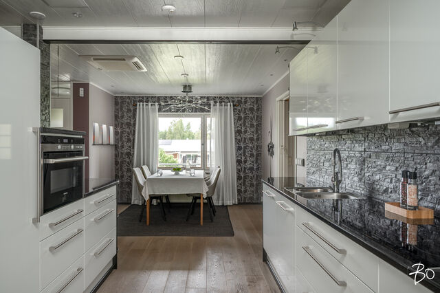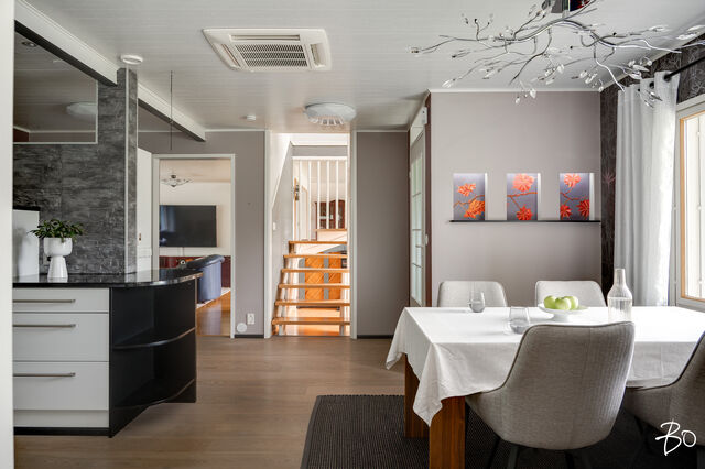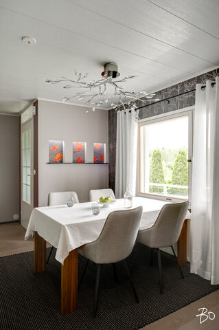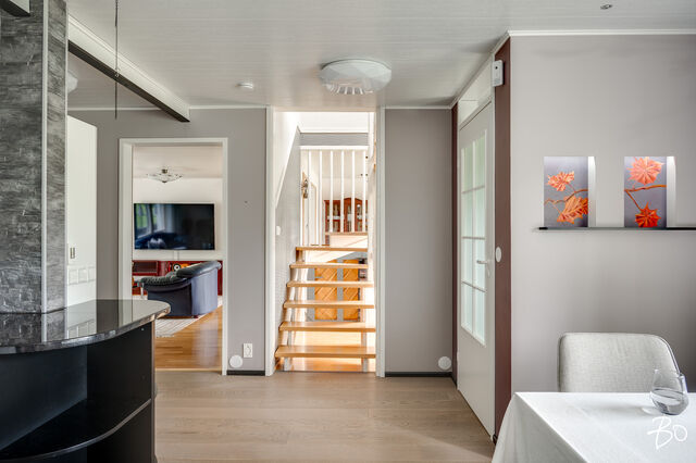 Etusivu / Varsinais-Suomi / Raisio / Oravatie 4 1 / 1 Oravatie 4 Somersoja, Raisio | Omakotitalo | 6h+k+th+2wc+kph+s+aula+ullakko+autotalli+varasto 295 000 € Velaton hinta 169,0 m2 Asuinpinta-ala 205,0 m2 Kokonaispinta-ala 1975 Rakennusvuosi Idyllinen omakotitalo Raision keskustan tuntumassa Tervetuloa tutustumaan tähän viehättävään omakotitaloon, joka sijaitsee rauhallisella alueella omalla tontilla. Talo on alun perin rakennettu ja lopputarkastettu vuonna 1975 ja sitä on laajennettu vuonna 1994, jolloin se on saanut nykyisen tilavan ja toimivan pohjaratkaisunsa.Kotiin on tehty vuosien varrella mittavia ja laadukkaita remontteja: taloon on asennettu maalämpö ja maaviileä, talon ulkovuoraus ja ikkunat on uusittu ja mm. kattorakenteet ja vesikate on uusittu. Olohuoneesta avautuu takapihalla oleva tilava katettu 21,5 neliön terassi, joka tarjoaa viihtyisän oleskelupaikan säällä kuin säällä.Kodin keittiökaapistot ovat laadukkaat ja tyylikkäät, hankittu Puuvajalta. Saunan yhteydessä sijaitsee tunnelmallinen takkahuone, joka tarjoaa täydellisen paikan rentoutumiseen. Kodin makuuhuoneet sijoittuvat yläkertaan, jossa on lisäksi tilava kylpyhuone sekä viihtyisä oleskelutila arjen rauhoittumiseen.Puutarha hurmaa upealla nurmialueellaan ja kauniilla istutuksillaan täällä pääset nauttimaan luonnon vehreydestä omassa rauhassa. Kokonaisuuden kruunaa autotalli varastoineen sekä kahden auton autokatos.Talon sijainti Raision keskustan tuntumassa on ihanteellinen kaikki tarvittava löytyy läheltä. Erinomaisten liikenneyhteyksien ansiosta liikkuminen niin autolla, bussilla kuin pyörälläkin on vaivatonta.Kaikki yksityiskohdat on huolella mietitty koti on kaunis, huoliteltu ja valmis toivottamaan uudet asukkaat tervetulleiksi.Voisiko tämä olla unelmiesi koti? Olethan yhteydessä ja tule tutustumaan!TAINA VUORI | 050 527 4106 | taina.vuori@bo.fifacebook: BO LKV Taina Vuoriinstagram: tainavuoribolkv_____________________________________Harkitsetko oman asuntosi myyntiä? Pyydä minut sitoumuksetta maksuttomalle arviokäynnille. Kerron samalla lisää tämänhetkisestä asuntomarkkinatilanteesta, palveluistani ja Bo:n loistavasta välityskonseptista sekä miten asunnonvaihdon suhteen kannattaa edetä. Autan mielelläni! Kiinnostaako tämä kohde?Ota meihin yhteyttä tai jätä viesti Taina Vuori kiinteistönvälittäjä LKV, eMBA, partner 050 527 4106 taina.vuori@bo.fi Tutustu välittäjään Varaa aika kalenteristani RakennusRakennusvuosi (aloitettu)1967Käyttöönottovuosi1975RakennusmateriaaliPuuKattotyyppiHarjakattoKatePeltikateAsuinpinta-ala169,0 m2 (205,0 m2)Lisätietoja pinta-alastaPinta-aloja ei ole tarkistusmitattu. Asuintilojen pinta-ala on rakennuksen perustiedot dokumentin mukaan 169 m². Kerrosala on rakennuslupapiirustusten mukaan 185 .² Muihin tiloihin on laskettu autotallin kerrosala 36m². Mainitut pinta-alat voivat poiketa virallisista nykystandardien mukaan mitattavista pinta-aloista olennaisestikin. Huoneiston todellinen pinta-ala voi siis olla esitteessä mainittua pienempi tai suurempi.Kerrokset2Muut tilat36,0 m2IlmanvaihtojärjestelmäMaaviileäLämmitysjärjestelmän kuvausMaalämpö, muuLämmön jakotapaVesikiertoinen patterilämmitys, uuni/takkaHuoneluku6h+k+th+2wc+kph+s+aula+ullakko+autotalli+varastoKeittiön kuvaus, lisätiedot ja varustusPuuvajan keittiö (remontoitu 2012), työtaso kiveä (graniitti), kodinkoneet: jääkaappi, pakastin (Samsung), astianpesukone (Miele, integroitu), uuni (Siemens yhdistelmäuuni sis. mikroaaltouuni), induktioliesi. Lattia tammiparkettia, seinät tapettia/kivilaattaa.Pesutilojen kuvaus, lisätiedot ja varustusYläkerran kylpyhuone: lattia ja seinät laattaa, mukavuus lattialämmitys, kaapistot, taso kiveä, allas, hana, Idon suihkukaappi, suihku, wc-istuin, bidesuihku.SaunaAsunnossa on saunaSaunan kuvaus, lisätiedot ja varustusLauteet tervaleppää, seinät paneloitu (leppää)/ laattaa, lattia laattaa, katto paneloitu, valokuituvalaistus, sähkökiuas (heti valmis), lattialämmitys. Pesuhuone: lattia ja seinät laattaa, lattialämmitys (sähkö), suihku, pyyhekuivain. Takkahuone, jossa avotakka. Lattia laattaa, seinät maalattu/rapattu. Tilava parvisänky, jonka alla varasto/kellari.WC-tilojen kuvausAlakerran erillinen wc: lattia laattaa, seinät laattaa, Puuvajan kaapistot, peili, wc-istuin, bidesuihku, allas, hana.KodinhoitohuoneKaapistot, lattia muovimattoa, seinät maalattu, pesukoneliitäntä, kuivauskaappi.Varustus: pesukoneliitäntä, kuivauskaappi, keskuspölynimuriMakuuhuoneen kuvaus, lisätiedot ja varustusKolme makuuhuonetta yläkerrassa: päämakuuhuoneessa lattia parkettia (pyökki), peiliovikaapistot, lasten makuuhuoneissa laminaatti (pyökki), seinät tapetoitu.Oleskelutilojen kuvaus, lisätiedot ja varustusLattia parkettia (pyökki), seinät tapetoitu/maalattu, takka (kiertoilmatakka), olohuoneen yhteydessä kirjasto. Takapihalla on tilava katettu terassi 21,5 m2 (lasiterassi ja lasiliukuovet) ja jatkuu avoterassina.Muut tilatAlakerran aula: lattia parkettia (tammi), seinät maalattu, kiinteä vitriini (Puuvaja). Yläkerran aula: lattia parkettia (pyökki), seinät tapetoitu/ maalattu. TulisijaTakka nuohottu 09/2024TakkatiedotTakkaTehdyt korjaukset- talon laajennus 1994, uusi yläkerta rakennettu kokonaan, samalla talon ulkovuoraus ja lisäeristys, kattorakenteet ja vesikate sekä ikkunat uusittu - yläkerran LVIS uusi 1994 - koko talon ilmanvaihto + LTO-koje, keskuspölyimuri, kiertoilmatakka päämakuuhuoneeseen, alakerran ikkunat uusittu 1994 - sauna 2004 - takka olohuoneeseen 2006 - ulko-ovat uusittu (etupiha) 2006 - salaojat ja vedeneristys etelä-länsisivuille 2011 - maalämpö, koko lämmönjakohuone laitteineen sekä alakerran vesi- ja lämpöputket sekä kalusteet 2011 - automaatti-ilmastointi maakylmää käyttäen molempiin kerroksiin 2011 - keittiö uusittu, kalusteet ja kodinkoneet 2012 - lasiterassi (21,5 m2)+ takaovi 2013 - alakerran wc 2015 - saunan pesuhuone, seinät 2021