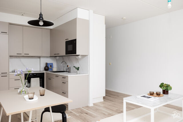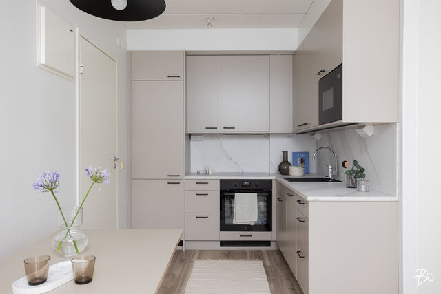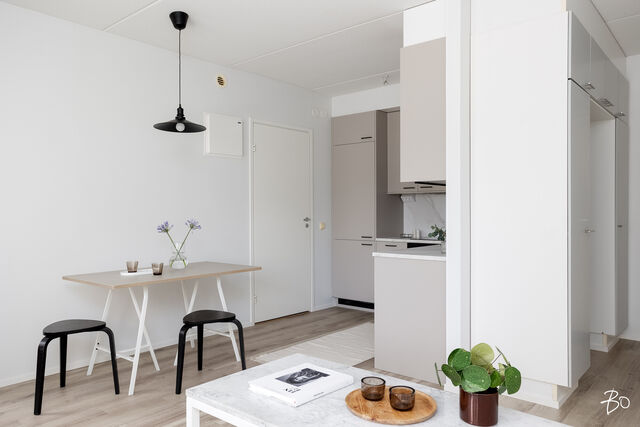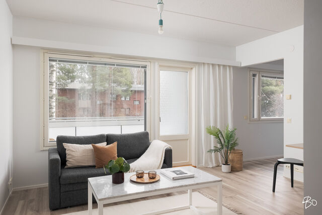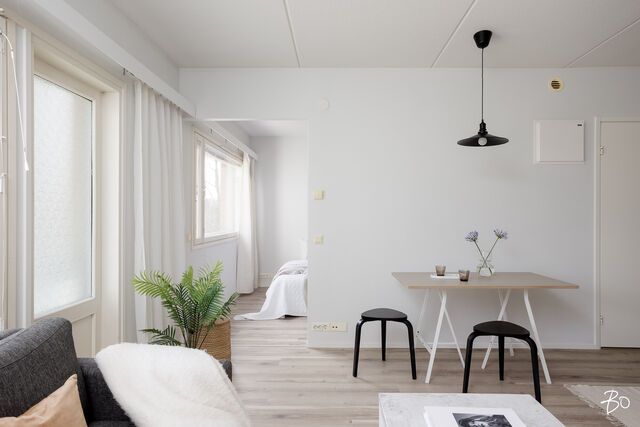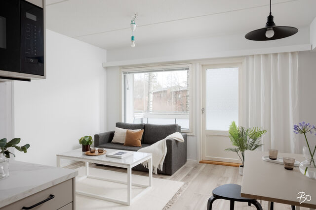 Etusivu / Keski-Suomi / Jyväskylä / Kekkolantie 23 1 / 1 Kekkolantie 23 Kekkola, Jyväskylä | Kerrostalo | 2h, k, kph, s, lasitettu parveke 129 000 € Velaton hinta 42,5 m2 Asuinpinta-ala 212,30 €/kk Hoitovastike 2001 Rakennusvuosi Hienokuntoinen kaksio rauhalliselta sijainnilta Kekkolasta! Asunnon keittiöremontti on juuri valmistunut ja samoin myös kylpyhuone on uusittu vuoden vaihteessa moderniin ulkoasuunsa. Asunnon lattiat on myös huhtikuussa vaihdettu vinyyliin. Asunto on esteetön ja sijaitsee alimmassa kerroksessa. Lasitettu parveke ei kuitenkaan ole maantasalla ja näkymät ovatkin puistomaisen vehreät. Sisään saavuttaessa säilytystilat ovat oikealla puolella. Uusittu keittiö on oikealla puolella yhdistyen olohuoneeseen. Keittiön ohesta on kulku juuri remontista valmistuneeseen tilavaan kylpyhuoneeseen, jossa wc sekä sauna. Asunnon makuuhuone on tilava olohuoneen jatkeena. Asunto Oy Jyväskylän Lounatuuli on hyvin hoidettu yhtiö ja kaukolämmössä. Suurempia taloyhtiön remontteja ei ole lähiaikoina tiedossa. Kekkolantie 23 on aivan lähimmän K-Marketin läheisyydessä. Puistomainen ympäristö on rauhallinen, mutta kuitenkin nopean etäisyyden päässä kaupungin palveluista sekä kattavista lenkkireitistöistä. Asunto sopii erinomaisesti opiskeijoille, sinkuille ja pariskunnille. Tähän asuntoon saat halutessasi nopean vapautumisajan. Varaa oma esittelyaikasi! Kiinnostaako tämä kohde?Ota meihin yhteyttä tai jätä viesti Antti Saleva asuntomyyjä, KTM, partner 041 315 3527 antti.saleva@bo.fi Tutustu välittäjään Varaa aika kalenteristani HuoneistoOsakkeet2068-2453HallintamuotoAsunto-osakeyhtiöHuoneluku2h, k, kph, s, lasitettu parvekeKerros/Kerroksia1/3Asuinpinta-ala42,5 m2Muut tilat0,0 m2Lisätietoja pinta-alasta Isännöitsijäntodistuksen mukainen. Yhtiöjärjestyksen mukainen.NäkymätVehreät näkymätParvekeLasitettuParvekkeen ilmansuuntaItäHissiTaloyhtiössä on hissiLiesiInduktioliesi, erillisuuniKeittiön työtasojen materiaaliLaminaattiKeittiön lattiamateriaaliVinyyliKeittiön seinien materiaaliMaalattu, muuPesutilojen kuvaus, lisätiedot ja varustusKylpyhuone valmistunut 2025.Kylpyhuoneen varustusPesukoneliitäntä, lattialämmitys, wc-istuin, peilikaappi, kiinteät valaisimetKylpyhuoneen lattiamateriaaliLaattaKylpyhuoneen seinämateriaaliKaakeliSaunan kuvaus, lisätiedot ja varustusHarvian kiuas, saunassa oma kaivo.Saunan lattiamateriaaliLaattaSaunan seinämateriaaliPuuMakuuhuoneen kuvaus, lisätiedot ja varustusLattia uusittu 2025 vinyyliksi, aikaisempi lattiamateriaali poistettu.Lukumäärä: 1Lattiamateriaalit: vinyyliSeinämateriaalit: maalattuOleskelutilojen kuvaus, lisätiedot ja varustusLattia uusittu 2025 vinyyliksi, aikaisempi lattiamateriaali poistettu.Lattiamateriaalit: vinyyliSeinämateriaalit: maalattuMuuta kauppaan kuuluvaaParveklämmitin lukeutuu kauppaan.Muutostyöt huoneistossaKeittiö uusittu 2025, kylpyhuone valmistunut 2025 vuodenvaihteessa, lattioiden uusiminen 2025, seinäpintojen maalausta 2025. KuntoHyvä Kiinteistö- ja yhtiötiedotYhtiön nimiAsunto Oy Jyväskylän LounatuuliTontin omistusOmaTontin koko1 608,00 m2Käyttöönottovuosi2001RakennusmateriaaliBetoniKattotyyppiPulpettikattoKateTiilikateLämmitysjärjestelmäKaukoEnergiatodistusKylläEnergialuokkaD2018Tehdyt korjaukset ja remontitIv-nuohous 2025 kylpyhuoneiden ja saunojen saneeraus 2024 otsalautojen maalaus ja ikkunapeltien puhdistus 2023 Kaukolämmön alajakokeskuksen uusiminen 2022 Märkätilakartoitus 2022 Sokkelin elementtisaumaus 2022 seinänvierustan laatoituksen kallistuksen korjaus 2021 jaetun jätekatoksen kunnostus 2020 hissin hälytyspuhelimen uusiminen 2019 lattialämmityksen toimilaitteiden uusiminen, virtausmittaukset ja säädöt 2017 lämpökamerakuvaus ja ikkunoiden ja ovien tiivistys 2016 Kiinteistön kuntoarvion ja PTSkorjaussuunnitelman päivittäminen 2016 jätekatoksen/pyörävaraston huoltomaalaus 2015 Porraskäytävän maalaus 2015 ilmastointikanaviston puhdistus, mittaus ja säätö 2013 lämmitysverkoston lämmönsäätimen uusinta 2012 räystäsalusten puluverkotus, yläpohjan siivous ja eristäminen puhallusvillalla 2012Tiedossa olevat tulevat korjaukset/remontitHallituksen selvitys kunnossapitotarpeista: 2025 huoneistojen palovaroittimien uusiminen ja ottaminen taloyhtiön kunnossapitovastuulle 2026 peruskuntoarvio 10 v. 2028 Porrashuoneen huoltomaalausSähköpistokepaikkoja19Lainat235 143,62 €Kiinnitykset1 780 933,00 €IsännöitsijäRetta Isännöinti Oy / Olli Leinonen 0102281885, olli.leinonen@retta.fiKiinteistönhoitoHuoltoyhtiöYhtiön tilat ja varusteluKuivaushuone, urheiluvälinevarasto, väestönsuoja, huoneistokohtaiset varastot, lastenvaunuvarasto. Ilmanvaihto: koneellinen poisto. Muita tietojaPalvelutK-Market Kekkolantie n. 200m, Kuokkalan marketit n. 1km. Kuokkalan lähikirjasto n. 1km. Novan terveysasema n. 5km.KouluKuokkalan yhtenäiskoulu n. 1km.PäiväkotiPilke-päiväkoti Satulinna n. 100m.Lisätietoa kaavoituksestaKartta.jkl.fiVapautuuHeti AsumiskustannuksetHoitovastike212,30 €/kk (5,00 €/m2)Rahoitusvastike89,78 €/kk (2,11 €/m2)Yhtiövastike yhteensä302,08 €Vesimaksun perusteOma mittariAutopaikka8,50 €/kkMuut maksut / lisätietoa maksuistaVesimaksuennakko 29€/hlö/kk, tasaus kulutuksen mukaan, kylmävesi 6,09€/m3, lämminvesi 12,56€/m3. HintaMyyntihinta116 013,39 € (2 729,73 €/m2)Velkaosuus12 986,61 € (305,57 €/m2)Velaton hinta129 000,00 € (3 035,29 €/m2)MaksutapaKäteinen. Sinua voisi kiinnostaa Asunnon hinta-arvio ja arviokäynti Asunnon hinta-arvio ja arviokäynti Mitä hinta-arvio maksaa tai miten arviokäyntiä varten kannattaa valmistautua? Katso vastauksemme usein kysyttyihin ky… Sneak Peek® Sneak Peek® Sneak Peek® -palvelumme on askeleen edellä! Löydä alueesi uusimmat ja upeimmat asunnot jo ennen kuin ne ilmestyvät as… Asuntovahti Asuntovahti Etsimässä uutta asuntoa? Aseta itsellesi Bo-asuntovahti. Saat tiedon heti, kun unelmiesi asunto tulee myynti