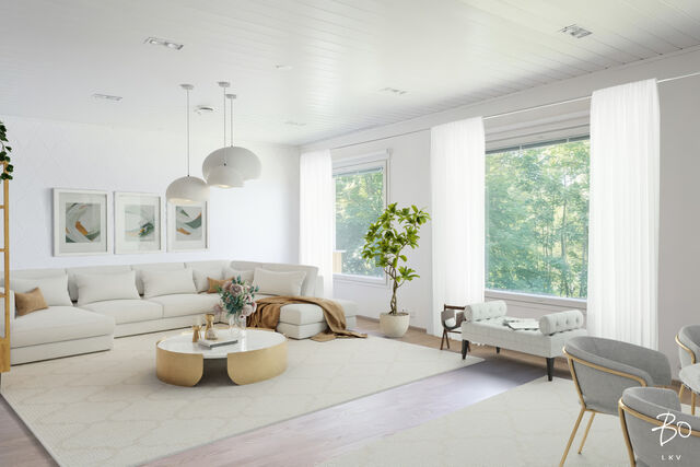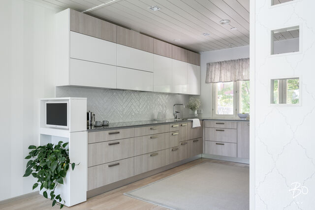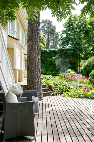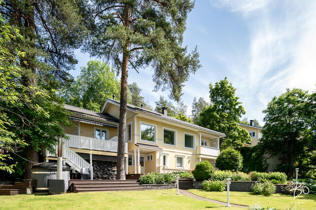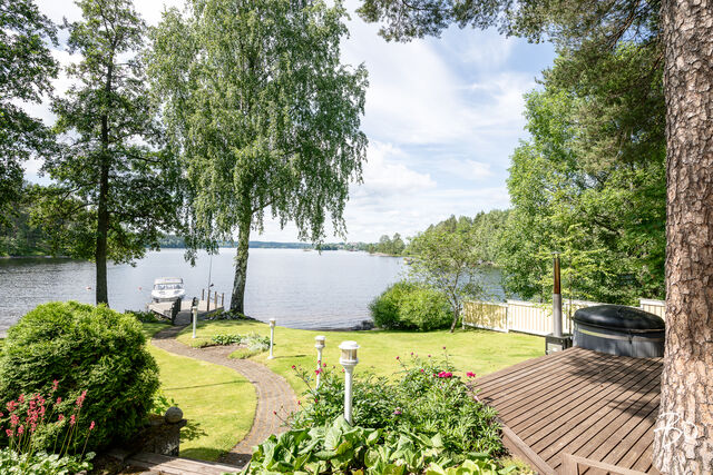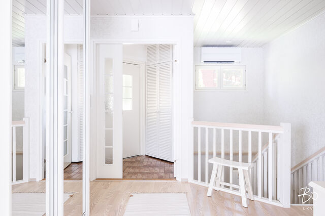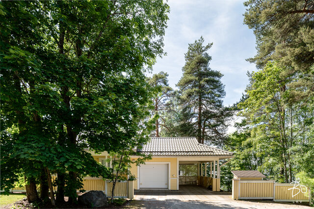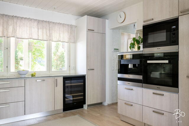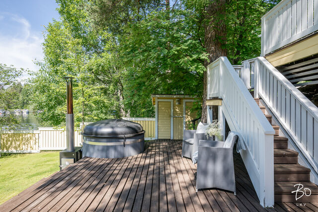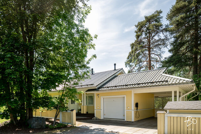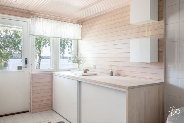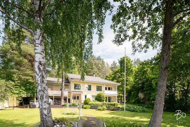 Etusivu / Etelä-Savo / Savonlinna / Kyrönniemenkatu 9 1 / 1 Kyrönniemenkatu 9 Kyrönniemi, Savonlinna | Omakotitalo | 5-6 h, keittiö, 2 x kph, sauna/spa, khh, wc, autotalli ja autokatos 565 000 € Velaton hinta 155,0 m2 Asuinpinta-ala 195,0 m2 Kokonaispinta-ala 1996 Rakennusvuosi Tervetuloa kotiin, jossa yhdistyvät huikeat järvinäkymät ja hienosti ylläpidetty koti tämä Saimaan rannalla sijaitseva omakotitalo on unelmakohde, johon ihastut heti sisään astuessasi.Tämä ainutlaatuinen koti tarjoaa tilaa ja mukavuutta vaativammallekin perheelle. Kaksikerroksisessa talossa on toimiva pohjaratkaisu ja kodin sisätilat ovat vertaansa vailla: kodikas tyyli ja hienosti hoidetut pintamateriaalit luovat lämpimän ja tervetulleeksi toivottavan ilmapiirin. Talo on huolella suunniteltu niin, että arkielämä sujuu mukavasti ja tilaa on riittävästi niin perheen yhteisiin hetkiin kuin rauhalliseen vetäytymiseenkin. Olohuoneen ikkunoista avautuu henkeäsalpaavan kauniit näkymät Saimaalle, tähän ei takuulla kyllästy ja kotoilu saa täällä ihan uudenlaisen merkityksen.Olohuone muodostaa yhdessä laadukkaasti toteutetun keittiön kanssa yhtenäisen tilan, jossa on mukava viettää aikaa yhdessä perheen ja ystävien kanssa.Yläkerrasta löydät tämän lisäksi kaksi makuuhuonetta ja kylpyhuoneen.Alakerrasta löytyy makuuhuoneen, sekä takkahuoneen lisäksi rentoutumisen keskus; harmoninen kylpyhuone, johon kuuluu ylellinen sauna- ja spa-osasto. Täällä on helppo kuvitella rentoutuvansa kiireen keskellä. Paljussa on mukava ihastella niin auringonlaskua kuin tähtitaivastakin ja rannasta pulahdat Saimaan aaltoihin uimaan kesäisin ja talvisin voit nauttia avantouinnista.Suunnittelun keskiössä on ollut käytännöllisyys ja tilojen harmonia, mikä näkyy kokonaisuuden toimivuudessa ja huolitelluissa yksityiskohdissa. Sisätilojen elegantti ilme ja valoisat huoneet tekevät asunnosta kodikkaan ja lämpimän.Talo sijaitsee omalla, yksityisyyttä tarjoavalla länteen viettävällä omarantaisella tontilla, jota ympäröi kauniisti hoidettu puutarha. Pihapiiristä avautuu rauhoittavat näkymät järvelle ja täällä voit nauttia Saimaan kauneudesta ympäri vuoden. Laituriin on helppo tulla isommallakin veneellä.Uuttera apulainen robottiruohonleikkuri Olavi huolehtii pihamaan siisteydestä ja on luvannut jäädä myös uusien omistajien rengiksi.Talon yhteydessä on myös käytännöllinen autotalli ja autokatos, jotka helpottavat arjen sujuvuutta.Sijainti Kyrönniemen arvostetulla asuinalueella Savonlinnassa tarjoaa arkeen kaivattua rauhaa sekä hyvät palvelut käden ulottuvilla. Läheltä löytyvät monipuoliset palvelut, kuten kaupat, koulut ja päiväkodit, mikä tekee alueesta erityisen houkuttelevan perheille. Luonnonläheisyys ja Saimaan upea järviluonto luovat puitteet aktiiviseen ulkoiluun ja vapaa-ajan viettoon ympäri vuoden. Tämä koti on täydellinen valinta niille, jotka arvostavat rauhallista ja luonnonläheistä elämää, unohtamatta kaupungin läheisyyttä.Tule ja koe itse tämä ainutlaatuinen koti, jossa laatu ja sijainti yhdistyvät täydellisesti. Älä jätä tätä tilaisuutta väliin ota yhteyttä ja sovi oma esittelyaikasi!Myynti ja esittelyt:KATJA LAMPINENkiinteistönvälittäjä LKV, partnerBo LKV Helsinki, Kruununhakap. 044 2433 744 I katja@bo.fi Kiinnostaako tämä kohde?Ota meihin yhteyttä tai jätä viesti Katja Lampinen kiinteistönvälittäjä LKV, partner 044 243 3744 katja@bo.fi Tutustu välittäjään Varaa aika kalenteristani RakennusKäyttöönottovuosi1996RakennusmateriaaliPuuRakennusmateriaalien kuvausAlakerran runko on harkkoperustainen, yläkerrassa puurunko. KattotyyppiHarjakattoKateProfiilipeltikateAsuinpinta-ala155,0 m2 (195,0 m2)Lisätietoja pinta-alastaRakennuksen kokonaisala rakennuslupa-asiakirjojen ja rakennus-ja huoneistorekisteriotteen mukaan mukaan 226 m2 + katettua tilaa 32 m2, kerrosala 195 m2, huoneistoala 5 h+k 155 m2. Muut tilat pitävät sisällään alakerran askartelu/vaatehuoneen ja tekniset tilat. Pinta-alaa ei ole mitattu SFS 5139 standardin mukaisesti. Kerrokset2Muut tilat40,0 m2Lämmitysjärjestelmän kuvausPuu, sähkö, ilmalämpöpumppuLämmön jakotapaSähköinen lattialämmitys, sähköinen kattolämmitys, uuni/takka, ilmalämpöpumppu, muuHuoneluku5-6 h, keittiö, 2 x kph, sauna/spa, khh, wc, autotalli ja autokatosKeittiön kuvaus, lisätiedot ja varustusVuonna 2016 täysin uusittu moderni keittiö, jossa runsaasti säilytys- ja työpöytätilaa. Keittiössä on kivitasot ja laadukkaat kodinkoneet (induktiotaso ja sen kanssa keskusteleva liesituuletin, integroitu astianpesukone, integroitu jääkaappi pakastelokerolla, viinikaappi, höyryuuni, lämpölaatikko ja kalusteisiin integroitu kahviautomaatti). Kalusteisiin on integroitu TV:t sekä keittiön että ruokailutilan puolelle.Keittiön työtasojen materiaaliKiviKeittiön lattiamateriaaliParkettiKeittiön seinien materiaaliMaalattu, osalaatoitusPesutilojen kuvaus, lisätiedot ja varustusKatto: AaltopaneeliKylpyhuoneen varustusLattialämmitys, suihku, asennettuja erikoisvarusteitaKylpyhuoneen lattiamateriaaliLaattaKylpyhuoneen seinämateriaaliKaakeliSaunaAsunnossa on saunaSaunan kuvaus, lisätiedot ja varustusVuonna 2017 uusittu sauna, jossa hetivalmis Helon-saunatonttu-kiuas sekä Warkopin toimittamat haapalauteet ja -paneelit. Katossa aaltopaneeli. Saunassa on ikkunat kahteen suuntaan, isommasta ikkunasta näkee suoraan Saimaalle. Mukavana lisänä on Bosen kosteantilan kaiuttimet, jotka mahdollistavat musiikin kuuntelun saunomisen lomassa.Saunan lattiamateriaaliLaattaWC-tilojen kuvaus2 erillistä wc:tä (yksi ylä- ja yksi alakerrassa). Yläkerran wc:ssä on myös suihku. Alakerran wc:n seinässä mikrosementti.Lattiamateriaalit: laattaSeinämateriaalit: kaakeliKodinhoitohuoneYhdistetty kodinhoitotila / spa-osasto. Tason alla pyykinpesukone ja kuivausrumpu sekä jääkaappi saunajuomille. Tilassa on myös poreamme ja katossa kaiuttimet musiikin kuuntelu