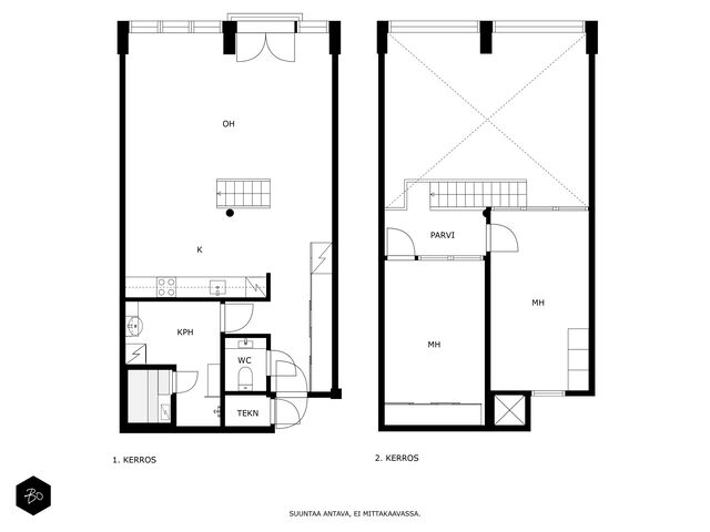 Etusivu / Varsinais-Suomi / Turku / Itäinen Rantakatu 60 a 1 / 1 Itäinen Rantakatu 60 a Martti, Turku | Kerrostalo | 3h, avok, kh, s, wc, ranskalainen parveke (yj 2h+k+s) 470 000 € Velaton hinta 95,0 m2 Asuinpinta-ala 399,00 €/kk Hoitovastike 2003 Rakennusvuosi Urbaania Loft-elämää Aurajoen rannalla Näköalat, jotka hurmaavatTervetuloa asumaan Aurajoen rannalle, jossa maisemat, historia ja moderni asumismukavuus kohtaavat ainutlaatuisella tavalla. Asunto Oy Turun Mekano on arvostettu yhtiö, jossa entinen Wärtsilän merimiesammattikoulu on saneerattu laadukkaiksi loft-asunnoiksi 2000-luvulla. Tämä poikkeuksellinen loft-asunto tarjoaa upean yhdistelmän tilaa, valoa ja tyyliä. Kodin suurista ruutuikkunoista avautuu esteetön näkymä suoraan Aurajoelle, vierasvenesatamaan ja aina Kakolanmäelle saakka. Jokimaisema lumoaa vuodenajasta toiseen ja luonnonvalo tulvii sisään koko päivän ajan.Asunnon sydän on hulppealla huonekorkeudella varustettu avara oleskelutila, jossa on tilaa niin arjen rauhoittumiselle kuin juhlien järjestämiselle. Olohuoneen näyttävät ikkunat ja ranskalainen parveke tuovat tilaan henkeäsalpaavaa ilmavuutta. Avoin keittiö yhdistyy sulavasti oleskelutilaan ja tarjoaa runsaasti säilytys- ja työskentelytilaa täydellinen niin arkeen kuin illanistujaisiin.Tyylikkäät portaat johdattavat parvelle, jossa sijaitsee kaksi makuuhuonetta lasiseinineen. Avaruus ja valoisuus jatkuvat täälläkin ja näkymät ulottuvat joen yli vastarannalle. Parvikerrokseen asennettu viilennysjärjestelmä tekee asumisesta miellyttävää myös kesähelteillä.Kylpyhuoneen kruununa on oma sauna. Tilaa löytyy myös pyykkihuollolle ja erillinen wc lisää asumismukavuutta. Liikunnanharrastajille naapurustosta löytyy suosittu kuntokeskus Elixia sekä monipuolinen ulkoiluympäristö. Naapurissa sijaitsee myös laadukas lähikauppa K-Supermarket Föri. Jokirannan upea miljöö ihastuttaa tunnelmallaan vuodenajasta riippumatta ja matka keskustaan taittuu vain hetkessä joenvartta pitkin kävellen tai pyöräillen. Lisäksi jokivarren lukuisiin ravintoloihin on vain lyhyt kävelymatka.Tämä koti on täydellinen valinta sinulle, joka arvostat uniikkia arkkitehtuuria, valoa, näkymiä ja huippusijaintia Aurajoen varrella aivan Turun palveluiden ja kulttuuritarjonnan äärellä.Asunto vapautuu nopeasti, ota yhteyttä ja sovitaan oma esittelyaikaEsittelyt ja lisätiedotMiika Salmela | 0500 533 582 | miika.salmela@bo.fi________________________________________________Harkitsetko oman asuntosi myyntiä? Pyydä minut sitoumuksetta maksuttomalle arviokäynnille. Kerron samalla lisää tämänhetkisestä asuntomarkkinatilanteesta, palveluistani ja Bo:n loistavasta välityskonseptista sekä miten asunnonvaihdon suhteen kannattaa edetä. Autan mielelläni! Kiinnostaako tämä kohde?Ota meihin yhteyttä tai jätä viesti Miika Salmela asuntomyyjä, partner 0500 533 582 miika.salmela@bo.fi Tutustu välittäjään HuoneistoOsakkeet9525-9887HallintamuotoAsunto-osakeyhtiöHuoneluku3h, avok, kh, s, wc, ranskalainen parveke (yj 2h+k+s)Kerros/Kerroksia2/2Asuinpinta-ala95,0 m2Muut tilat0,0 m2Lisätietoja pinta-alastaPinta-aloja ei ole tarkistusmitattu, huoneiston todellinen pinta-ala voi siis olla yhtiöjärjestyksessä, isännöitsijäntodistuksessa ja esitteessä mainittua pienempi tai suurempi. Yhtiöjärjestyksen mukainen. Isännöitsijäntodistuksen mukainen.NäkymätUpeat ja laajat maisemat Aurajoelle, vastarannalle sekä Kakolanmäelle. ParvekeRanskalainenParvekkeen ilmansuuntaLuodeHissiTaloyhtiössä on hissiKeittiön kuvaus, lisätiedot ja varustusTumma vuonna 2013 remontoitu keittiökokonaisuus, jonka varustukseen sisältyy jääkaappi ja pakastin, induktioliesi, liesituuletin, erillisuuni, mikroaaltouuni ja astianpesukone. Lattia parkettia.Pesutilojen kuvaus, lisätiedot ja varustusKylpyhuoneen varustukseen kuuluu suihku, peilikaappi, allaskaapisto, pesukoneliitäntä. Lattialämmitys. Lattia ja seinät laattaa. Kylpyhuone on alkuperäisessä kunnossa ja alkaa olla teknisen käyttöikänsä päässä.WC-tilojen kuvausErillinen wc, joka on remontoitu vuonna 2020. Varustukseen kuuluu wc-istuimen lisäksi valopeili ja allaskaapisto. Lattia ja seinät laattaa.Saunan kuvaus, lisätiedot ja varustusOma sauna kylpyhuoneen yhteydessä. Sähkökiuas. Lattia laattaa. Seinät ja katto paneelia.Makuuhuoneen kuvaus, lisätiedot ja varustusMakuutiloja on kaksi ja ne molemmat sijaitsevat parvella. Lattiat lankkua.Oleskelutilojen kuvaus, lisätiedot ja varustusAvara olohuone, jonka huonekorkeus on mieletön. Ikkunoista avautuu kaunis maisema, johon ei kyllästy ikinä. Olohuoneen yhteydessä ranskalainen parveke. Lattia parkettia.Kauppaan ei kuuluIrtain.Muutostyöt huoneistossaKeittiöremontti 06/2011 Jäähdytyslaitteiston asennus huoneistoon ja liittynyt taloyhtiön jäähdytysjärjestelmään 8-2013. Wc:n pinnat ja kalusteet uusittu 10/2020. Tapwellin hana ei kuulu taloyhtiölle.KuntoHyväLisätietoa kunnostaHuoneisto on muutoin hyvässä kunnossa, mutta kylpyhuone on teknisen käyttöikänsä päässä ja kaipaa jo päivitystä. Kiinteistö- ja yhtiötiedotYhtiön nimiAsunto Oy Turun MekanoTontin omistusOmaTontin koko3 670,00 m2Käyttöönottovuosi2003RakennusmateriaaliBetoniKattotyyppiTasakattoKateHuopakateLämmitysjärjestelmäMuuEnergiatodistusKylläLisätietoja energiatodistuksestaVoimassa 20.09.2034 saakka.EnergialuokkaD2018Tehdyt korjaukset ja remontit2009 Teräsaidan suoristus 2010 Sokkelin maalaus 2010 C-portaan sisänkäynnin katos 2012 Kuntoarvio 2013 lV-kanavien nuohous 2014-15 Piha-aidan jatko ja piha-alueen parannustyöt 2014 Kaiteen asennus autohallin ja sisäpihalle johtavien rappusten välille. 2015 Sokkelien ja yhteisten tilojen lattioiden huoltomaalaus 2016 Pihapatioiden huoltokäsittely 2016 Kiinteistöautomaatiojärjestelmän uusiminen 2017 Sadevesikaivojen puhdistus 2017 C-portaan talon päädyn autohallin ajoliuskan vierustan seinän rappauskorjaus 2017 Sisäpihan viheralue