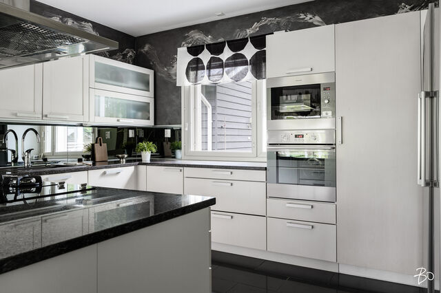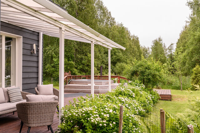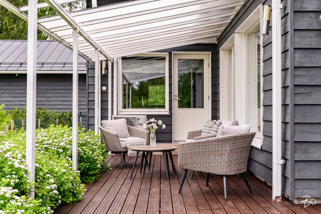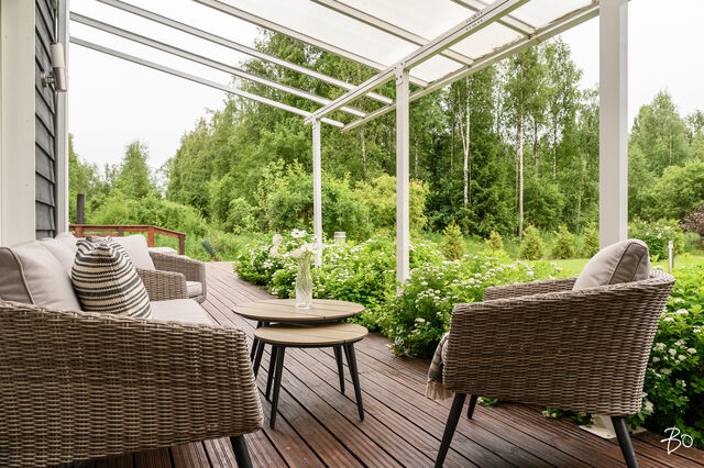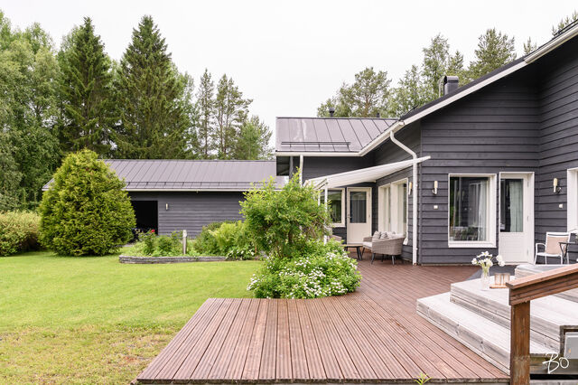 Etusivu / Pohjois-Pohjanmaa / Oulu / Maaniityntie 25 1 / 1 Maaniityntie 25 Perävainio, Oulu | Omakotitalo | 4h, k, khh, s, parvi 389 000 € Velaton hinta 164,7 m2 Asuinpinta-ala 187,3 m2 Kokonaispinta-ala 2011 Rakennusvuosi Nyt on vapautumassa seuraaville omistajille todellinen harvinaisuus, nimittäin omakotitalo omalla metsään rajoittuvalla tontilla alle vartin ajomatkan päässä keskustasta. Tämä Maaniityntien päähän vuonna 2011 valmistunut koti hurmaa käytännöllisyydellään sekä upeilla yksityiskohdillaan. Taloon saavutaan laatoitettuun eteiseen ja käytännöllinen laattalattia jatkuu keittiöön asti. Laadukkaasti varustellusta keittiöstä löytyvät esimerkiksi kivitasot ja sekä kaasu- että keraaminen liesi. Upotettu olohuone yhdistettynä upeaan huonekorkeuteen ja rauhoittaviin ikkunanäkymiin luo ihastuttavan tilan yhdessä oleskeluun. Makuuhuoneita on kolme kappaletta, joista päämakuuhuoneesta on suora kulku kylpyhuoneeseen. Makuuhuoneiden lisäksi kodissa on tilava liukuovellinen parvi. Kylpyhuoneen yhteydessä on saunan lisäksi poreamme. Talo sijaitsee yli 1700 neliön puistoon rajoittuvalla omalla tontilla. Pihapiirissä on lisäksi lämmin autotalli, jonka yhteydessä on autokatos. Pihapiirissä on myös puuliiteri sekä pihavaja. Pihassa on runsaasti istutuksia ja lopputulos onkin erittäin viihtyisä. Reilun kokoisen terassin kruunaa kiinteä palju. Talon lämmitys on hoidettu modernilla vesi-ilmalämpöpumpulla sekä vesikiertoisella takalla. Sijainti Oulunportissa on jotain, mistä moni haaveilee. Täydellisestä omasta rauhasta huolimatta kulkuyhteydet ympäri Oulua ovat ensiluokkaiset kulkuvälineestä riippumatta. Kaakkurin kattavat lähipalvelut ovat kävely- tai pyöräilymatkan päässä, Oulun keskustaan on alle vartin ajomatka ja Kempeleen keskustaan noin 10 minuuttia.Olisiko tämä teidän tuleva kotinne? Lisätiedot ja esittelyt:Toni Haapakoski0405698682toni@bo.fi Kiinnostaako tämä kohde?Ota meihin yhteyttä tai jätä viesti Toni Haapakoski kiinteistönvälittäjä LKV, KiLAT, partner 040 569 8682 toni@bo.fi Tutustu välittäjään Varaa aika kalenteristani RakennusKäyttöönottovuosi2011RakennusmateriaaliPuu, betoniKattotyyppiHarjakattoKatePeltikateAsuinpinta-ala164,7 m2 (187,3 m2)Lisätietoja pinta-alastaRakennuslupapiirustuksien 3.9.2010 mukaan asunnon huoneistoala on 164.7 m2. Parvi 22.6 m2 Kerrosala 181.5 m2 Tallirakennuksen huoneala 37.8 m2.Kerrokset1Muut tilat22,6 m2LämmitysVesikiertoinen lattialämmitys, ilmalämpöpumppu. HyväLämmitysjärjestelmän kuvausIlmavesilämpöpumppu, muuHuoneluku4h, k, khh, s, parviKeittiön muut varusteetMikroaaltouuniLiesiKaasuliesi, keraaminen liesi, erillisuuniKeittiön työtasojen materiaaliKiviKeittiön lattiamateriaaliLaattaKeittiön seinien materiaaliMaalattuPesutilojen kuvaus, lisätiedot ja varustusSuihkunurkkauksen silikonisaumat uusittu 6/25.Kylpyhuoneen lattiamateriaaliLaattaKylpyhuoneen seinämateriaaliKaakeliSaunaAsunnossa on saunaSaunan kuvaus, lisätiedot ja varustusVesipisteSaunan lattiamateriaaliLaattaSaunan seinämateriaaliPuuWC-tilojen kuvausLattiamateriaalit: laattaSeinämateriaalit: kaakeli, maalattuKodinhoitohuoneVarustus: pesukoneliitäntä, pesuallas, pyykkikaapitLattiamateriaalit: laattaSeinämateriaalit: kaakeli, maalattuMakuuhuoneen kuvaus, lisätiedot ja varustusLattiamateriaalit: laminaattiSeinämateriaalit: maalattuOleskelutilojen kuvaus, lisätiedot ja varustusLattiamateriaalit: laminaattiSeinämateriaalit: maalattuTakkatiedotTakkaMuut säilytystilatVaatehuoneTehdyt korjaukset2023 lämmitysjärjestelmän korjausKuntoHyväEnergiatodistusKylläEnergialuokkaB2018 KiinteistötiedotKiinteistötunnus564-31-49-3TyyppiTonttiTontin tyyppiTasamaatonttiTontin koko1 773,00 m2Tontin omistusOmaPanttikirjat444 000,00 €Lisätietoja tontistaTie perilleVesijohtoKunnanViemäriKunnanRakennusoikeus250,0 m2 AsumiskustannuksetPuhtaanapito18,43 €Kiinteistövero625,32 €Muut maksut / lisätietoa maksuistaSähkön kokonaiskulutus n. 16 000 kWh/ vuosi. DNA Valokuitu 200M 40,50€/kk. HintaVelaton hinta389 000,00 €Myyntihinta389 000,00 € VapautuuSopimuksen mukaanMaksuehtoKäteinen. Sinua voisi kiinnostaa Asunnon hinta-arvio ja arviokäynti Asunnon hinta-arvio ja arviokäynti Mitä hinta-arvio maksaa tai miten arviokäyntiä varten kannattaa valmistautua? Katso vastauksemme usein kysyttyihin ky… Sneak Peek® Sneak Peek® Sneak Peek® -palvelumme on askeleen edellä! Löydä alueesi uusimmat ja upeimmat asunnot jo ennen kuin ne ilmestyvät as… Asuntovahti Asuntovahti Etsimässä uutta asuntoa? Aseta itsellesi Bo-asuntovahti. Saat tiedon heti, kun unelmiesi asunto tulee myyntiin. Bo Match Bo Match Kun asuntounelmat ja unelmien asunnot kohtaavat, syntyy Bo Match. Tutustu uudenlaiseen tapaan käydä asuntokauppaa.