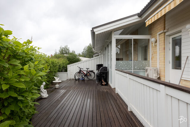 Etusivu / Keski-Suomi / Jyväskylä / Ollintie 6 1 / 1 Ollintie 6 Palokka, Jyväskylä | Rivitalo | 4h,k,kph,s,wc 277 000 € Velaton hinta 100,0 m2 Asuinpinta-ala 350,00 €/kk Hoitovastike 2012 Rakennusvuosi Unelmoitko tilavasta ja siistikuntoisesta rivitalokodista suositulla asuinalueella? Tämä kodikas rivitaloasunto Palokassa on täydellinen valinta niille, jotka arvostavat sekä laadukasta asumista että rauhallista ympäristöä.Asunnon sisätilat hurmaavat vaaleilla sisustussävyillään ja kodikkaalla tyylillään, jotka luovat tilaan avaraa ja valoisaa tunnelmaa. Yhdessä tasossa oleva pohjaratkaisu tarjoaa toimivat puitteet perheen arkeen neljän huoneen, keittiön, kylpyhuoneen, saunan ja erillisen WC:n muodossa. Asunto on erityisen sopiva lapsiperheelle, sillä tilavat huoneet ja hyvin suunnitellut tilaratkaisut tukevat perheen elämää kaikissa sen vaiheissa.Kiinteistö sijaitsee omalla tontilla, ja taloyhtiö on erinomaisessa kunnossa. Pihapiiri tarjoaa turvallisen ja tilavan leikkialueen lapsille. Omalla pihalla voi nauttia vehreästä ympäristöstä ja viettää aikaa perheen kesken.Ollintien ympäristö on rauhallinen ja erittäin suosittu, mikä tekee siitä ihanteellisen paikan asua. Alue tarjoaa kattavat palvelut, kuten koulut, päiväkodit ja monipuoliset liikuntamahdollisuudet. Täällä voi nauttia niin luonnonläheisyydestä kuin kaupungin tarjoamista palveluista, mikä lisää asumismukavuutta merkittävästi.Tämä huolellisesti ylläpidetty ja lapsiperheille ihanteellinen koti odottaa uusia asukkaita. Tule ja tutustu tähän ainutlaatuiseen kohteeseen paikan päälle! Kiinnostaako tämä kohde?Ota meihin yhteyttä tai jätä viesti Antti Saleva asuntomyyjä, KTM, partner 041 315 3527 antti.saleva@bo.fi Tutustu välittäjään Varaa aika kalenteristani HuoneistoOsakkeet1-115HallintamuotoAsunto-osakeyhtiöHuoneluku4h,k,kph,s,wcKerros/Kerroksia1/1Asuinpinta-ala100,0 m2Muut tilat0,0 m2Lisätietoja pinta-alasta Isännöitsijäntodistuksen mukainen. Yhtiöjärjestyksen mukainen.Parvekkeen ilmansuuntaLänsiKeittiön kuvaus, lisätiedot ja varustusKeittiötä päivitetty 10/2022: Alakaapistojen ovien uusiminen sekä vetolaatikostojen uusiminen. Altaan uusiminen sekä työtasot- ja välitilat uusittu. Myös jätekaappi uusittiin. LiesiKeraaminen liesiKeittiön työtasojen materiaaliLaminaattiKeittiön lattiamateriaaliLaattaKeittiön seinien materiaaliMaalattu, muuPesutilojen kuvaus, lisätiedot ja varustusKodinhoitotilaa kylpyhuoneen yhteydessä. Kiinteät kaapistot. Kulku ulos.Kylpyhuoneen varustusSuihkuseinä, pesukoneliitäntä, lattialämmitys, wc-istuin, suihkuKylpyhuoneen lattiamateriaaliLaattaKylpyhuoneen seinämateriaaliKaakeliWC-tilojen kuvausAllaskaappi ja peilikaappi. Tilaan sijoitettu huoneistokohtainen ilmanvaihtokone (wallox)Varustus: lattialämmitys, lattiakaivo, bidee-suihkuLukumäärä: 1Lattiamateriaalit: laattaSeinämateriaalit: kaakeliSaunan kuvaus, lisätiedot ja varustusHeti valmis kiuas (Harvia)Saunan lattiamateriaaliLaattaSaunan seinämateriaaliPuuMakuuhuoneen kuvaus, lisätiedot ja varustusLukumäärä: 3Lattiamateriaalit: parkettiSeinämateriaalit: tapettiOleskelutilojen kuvaus, lisätiedot ja varustusLattiamateriaalit: parkettiSeinämateriaalit: tapettiMuut säilytystilatMuu erillinen varastoMuuta kauppaan kuuluvaaIlmalämpöpumppu, kiinteät kaapistot, verhotangot, verhokiskot, markiisi, sälekaihtimet, keskuspölynimuri, rullaverhoMuutostyöt huoneistossaKeittiön päivittäminen. KuntoHyvä Kiinteistö- ja yhtiötiedotYhtiön nimiAsunto Oy Jyväskylän Ollintie 6 CTontin omistusOmaTontin koko1 541,00 m2Käyttöönottovuosi2012RakennusmateriaaliPuuKattotyyppiHarjaKateTiiliLämmitysjärjestelmäKaukoEnergiatodistusKylläEnergialuokkaC2018Tehdyt korjaukset ja remontit- Vesikalustetarkastus ja korjaukset C1, C2 ja C3, tehty v. 2022 - Kattohuolto: puhdistettu ja sammalen estoaine levitetty, tehty talkootyönä v.2021 - Ilmastoinnin puhdistus ja säätö v.2020 - Piha-asfaltin korjaus v.2020 - Talon huoltomaalaus v.2018Tiedossa olevat tulevat korjaukset/remontitHallituksen selvitys kunnossapitotarpeista seuraavan viiden vuoden aikana: - Palovaroittimet vuoden 2025 loppuun mennessä 12 kpl - Lukot - Autokatoksen sisämaalaus - Aitojen päällislautojen käsittely 2025 - Ilmastoinnin puhdistus ja säätö 2027 - Asfaltin saumojen korjaus 2025Autokatokset4Lainat0,00 €Kiinnitykset450 000,00 €IsännöitsijäHeinikari Oy / Sulkula Kari heinikari@heinikari.fi, 0405866784KiinteistönhoitoAsukkaatYhtiön tilat ja varusteluHuoneistokohtaiset varastot. Ilmanvaihto: koneellinen tulo- ja poistoilmanvaihtojärjestelmä lämmöntalteenotolla. Muita tietojaPalvelutS-market Palokka n. 1,7km, Palokan kauppakeskukset n. 2km, Palokan kirjasto n. 1,7km, Palokan terveysasema n. 1,9km.KouluJokelan koulu n. 1,6km, Palokan koulukeskus n. 1,7km.PäiväkotiJokelan päiväkoti n. 1,6km, Pappilanvuoren päiväkoti n. 1,8km.Lisätietoa kaavoituksestaJyväskylän karttapalveluVapautuuSopimuksen mukaan AsumiskustannuksetHoitovastike350,00 €/kk (3,50 €/m2)Yhtiövastike yhteensä350,00 €Vesimaksun perusteOma mittariAutopaikka36,00 €/kkMuut maksut / lisätietoa maksuistaVesimaksuennakko 20,50€/hlö/kk, tasaus kulutuksen mukaan, kylmävesi 7€/m3, lämminvesi 12€/m3. HintaMyyntihinta277 000,00 € (2 770,00 €/m2)Velaton hinta277 000,00 € (2 770,00 €/m2) Sinua voisi kiinnostaa Asunnon hinta-arvio ja arviokäynti Asunnon hinta-arvio ja arviokäynti Mitä hinta-arvio maksaa tai miten arviokäyntiä varten kannattaa valmistautua? Katso vastauksemme usein kysyttyihin ky… Sneak Peek® Sneak Peek® Sneak Peek® -palvelumme on askeleen edellä! Löydä alueesi uusimmat ja upeimmat asunnot jo ennen kuin ne ilmestyvät as… Asuntovahti Asuntovahti Etsimässä uutta asuntoa? Aseta itsellesi Bo-asuntovahti. Saat tiedon heti, kun unelmiesi asunto tulee myyntiin. Bo Match Bo Match Kun asuntounelmat ja unelmien asunnot kohtaavat, syntyy Bo Match. Tutustu uudenlaiseen