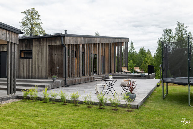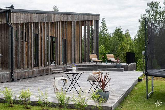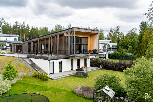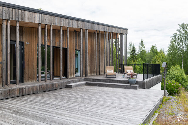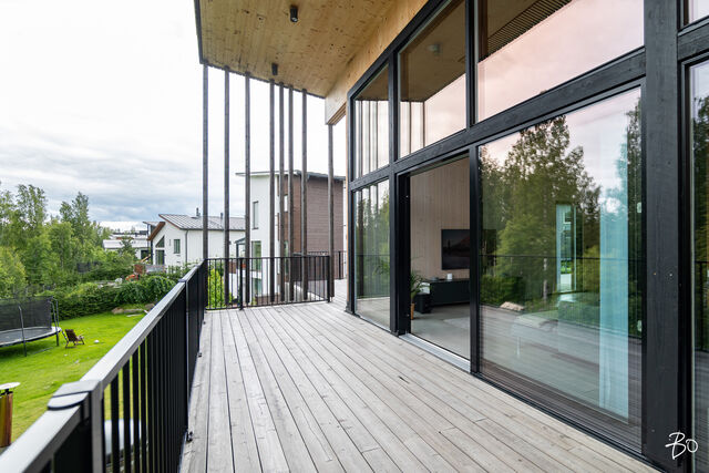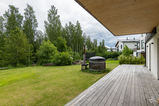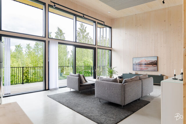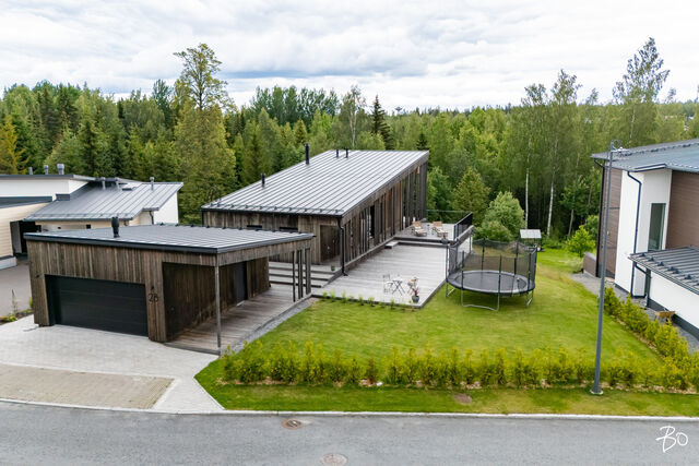 Etusivu / Pirkanmaa / Tampere / Rautalepänkatu 28 1 / 1 Rautalepänkatu 28 Vuores, Tampere | Omakotitalo | 3mh, oh, k, rt, khh, psh, s, kph/wc, erill. wc 2, vh, parveke, terassi + autotalli+varasto 719 000 € Velaton hinta 183,4 m2 Asuinpinta-ala 235,7 m2 Kokonaispinta-ala 2022 Rakennusvuosi Modernia laatua ja luonnon rauhaa Vuoreksessa - omakotitalo, joka tekee vaikutuksen.Tervetuloa Tampereen Vuorekseen, vain 15 minuutin ajomatkan päähän keskustasta, mutta keskelle luonnonrauhaa ja huolella suunniteltua arkkitehtuuria.Tämä vuonna 2022 valmistunut, Lammi-kiviharkosta ja CLT-massiivipuusta rakennettu omakotitalo on todellinen harvinaisuus. Moderni, skandinaavinen julkisivu, huoltovapaat materiaalit ja laadukkaat yksityiskohdat tekevät tästä kodista pitkäikäisen ja vaivattoman asua. Kaikki sijaitsee omalla tontilla, ja kokonaisuuden kruunaa lämmin, tilava autotalli kahdelle autolle sekä runsaasti varastotilaa (yhteensä 52,3 m²).Asuinneliöitä on 183,4 m², ja tilan tuntu on läsnä heti sisään astuttaessa: korkea olohuone, isot ikkunapinnat ja kaksi suurta lasiliukuovea yhdistävät sisä- ja ulkotilat saumattomasti. Yli 200 neliön lehtikuusiterassi tarjoaa täydelliset puitteet kesäpäivien viettoon - täysin huoltovapaasti.Kodissa yhdistyvät moderni arkkitehtuuri ja kodikkuus:· Betonilattiat ja kiviseinät tuovat rouheaa ilmettä· CLT-pintojen lämpö ja akustiikkarimoitukset luovat miellyttävän äänimaailman· Maalämpö ja vesikiertoinen patterilämmitys pitävät asumiskustannukset kurissa· Alakerrassa kolme makuuhuonetta, joista päämakuuhuoneessa oma kylpyhuone ja vaatehuone. Tarpeen mukaan tilat ovat muunneltavissa suurimmasta makuuhuoneesta voi halutessaan jakaa kaksi erillistä huonetta. Lisäksi rakennusoikeutta on jäljellä, mikä mahdollistaa laajentamisen tulevaisuudessa.Keittiö ja ruokailutila on hienosti erotettu porraskuilulla olohuoneesta luoden avointa, mutta toiminnallisesti järkevää tilankäyttöä.Arjen sujuvuutta ja luonnonläheisyyttä. Vuores tunnetaan luonnonläheisyydestään ja perheystävällisestä tunnelmastaan. Alueen palvelut ovat poikkeuksellisen hyvin saavutettavissa:· Isokuusen koulu, jossa päiväkoti, esikoulu ja luokat 12, sijaitsee vain muutaman minuutin kävelymatkan päässä· Vuoreksen pääkoulu (luokat 19 sekä päiväkoti ja esikoulu) on vain 5 minuutin ajomatkan päässä· Uimaranta ja laavu löytyvät alle kilometrin päästä· Ulkoilumahdollisuudet ovat vertaansa vailla: hiihtoladut, lenkkipolut, suppailureitit ja useat lähijärvet tarjoavat tekemistä ympäri vuodenKOHDETTA MYYMikko Lamu 0400 357 100 | mikko.lamu@bo.fi Kiinnostaako tämä kohde?Ota meihin yhteyttä tai jätä viesti Mikko Lamu asuntomyyjä, partner 0400 357 100 mikko.lamu@bo.fi Tutustu välittäjään Varaa aika kalenteristani RakennusKäyttöönottovuosi2022RakennusmateriaaliPuu, kiviKattotyyppiPulpettiKatePelti lukkoponttiKaton kuntoHyväAsuinpinta-ala183,4 m2 (235,7 m2)Lisätietoja pinta-alastaAutotalli + varasto pinta-ala 52,3 m² Asuinrakennuksen kokonaispinta-ala 205 m² Rakennusluvan mukainen kerrosala 273 m²Kerrokset2Muut tilat52,3 m2LämmitysVesikiertoinen lattialämmitys, muu. Hyvä. Lämmitysjärjestelmän kuvausMaalämpöHuoneluku3mh, oh, k, rt, khh, psh, s, kph/wc, erill. wc 2, vh, parveke, terassi + autotalli+varastoKeittiön kuvaus, lisätiedot ja varustusLattia: betoni. Seinät: CLT-massiivipuu. Työtaso: puu KVIK-keittiö. Kalusteisiin integroidut jääkaappi ja pakastekaappi, työtasoon integroitu induktioliesi, täysintegroitu astianpesukone, erillisuuni, liesituuletin (aktiivihiilisuodatin). Pesutilojen kuvaus, lisätiedot ja varustusLattia: laatta. Seinät: laatta. Sadesuihku + käsisuihku 2 kpl, linjakaivot 2 kpl. Lattialämmitys. SaunaAsunnossa on saunaSaunan kuvaus, lisätiedot ja varustusLattia: laatta. Seinät: tervaleppä. Lauteet: terveleppä. Sähkökiuas: TULIKIVI Riite, valukivi, erillinen ohjausyksikkö, lasiseinä, saunan ovi lasia. WC-tilojen kuvausYLÄKERTA Lattia: betoni. Seinät: CLT massiivipuu. IDO seinä wc-istuin + GEBERIT piiloasennettavajärjestelmä, bidee, pesuallas, allaskaapisto, peili. Lattialämmitys. ALAKERTA Päämakuuhuoneen yhteydessä kylpyhuone. Lattia: laatta. Seinät. laatta. Sadesuihku+käsisuihku, seinä IDO seinä wc-istuin, GEBERIT piiloasennettavajärjestelmä, bidee, pesuallas 2 kpl, allaskaapisto 2 kpl, peili 2 kpl. ERILLINEN WC Lattia: laatta. Seinät: laatta. IDO seinä wc-istuin, GEBERIT piiloasennettavajärjestelmä, bidee, pesuallas, allaskaapisto. Lukumäärä: 3Makuuhuoneen kuvaus, lisätiedot ja varustusLattia: betoni. Seinät: kivi, maalattu Päämakuuhuoneen yhteydessä kylpyhuone ja vaatehuone sekä erikseen vaatekaapisto. Päämakuuhuone jaettavissa kahdeksi eri tilaksi esim. väliseinällä tai tilaajaettvalla lasiseinällä. Kahdessa muussa makuuhuoneessa vaatekaapistot. Lukumäärä: 3Oleskelutilojen kuvaus, lisätiedot ja varustusLattia: betoni. Seinät: CLT-massiivipuuMuut tilatEteinen: vaatekaapisto, lasitettu terassi, parveke, vaatehuone. Erillinen sisäänkäynti aulaan, josta käynti erillisiin pesu- ja kodinhoitohuoneisiin. TakkatiedotTakkaMuut säilytystilatVaatehuoneMuuta kauppaan kuuluvaaN. 200 m² lehtikuusiterassiaKauppaan ei kuuluIrtaimistoKuntoHyväEnergiatodistusKylläEnergialuokkaC2018 KiinteistötiedotKiinteistötunnus837-327-7708-4TyyppiOmakotitaloTontin koko1 000,00 m2Tontin omistusOmaPanttikirjat600 000,00 €Lisätietoja tontistaTie perilleVesijohtoKunnanViemäriKunnanRakennusoikeus350,0 m2 AsumiskustannuksetKiinteistövero1 488,47 €Muut maksut / lisätietoa maksuistaLämmitys- ja käyttösähkön kulutus 14948 kWh/vuosi (sis. sähköauton latauksen) vuonna 2024. Vuonna 2023 kulutus n. 12 000 kWh/vuosi ilman sähköauton latausta) Vesi kulutuksen mukaan Jäteputkimaksu 324 €/vuosi Hulevesimaksu 65 €/vuosi HintaVelaton hinta719 000,00 €Myyntihinta719 000,00 € VapautuuSopimuksen mukaanMaksuehtoKäteinen. Sinua voisi kiinnostaa 