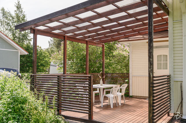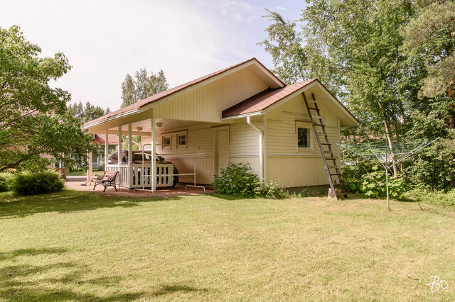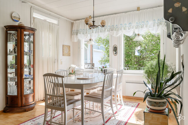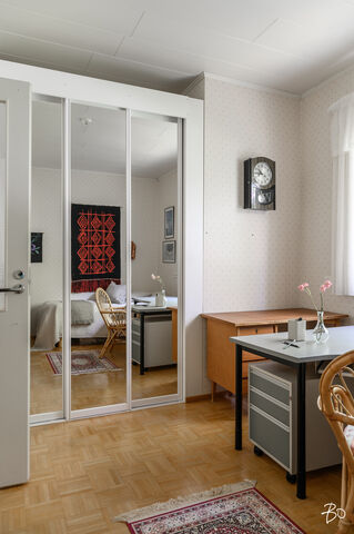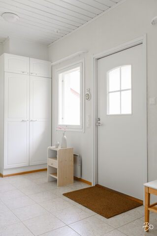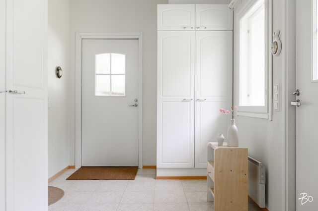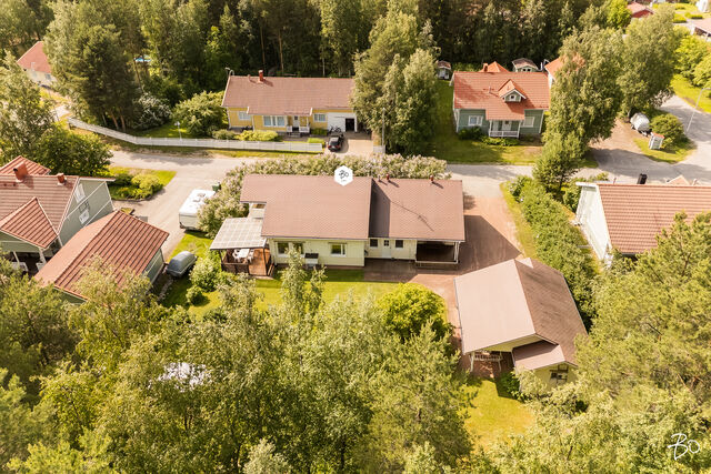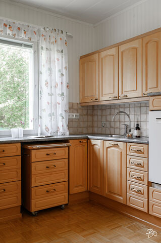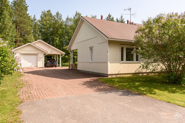 Etusivu / Pohjois-Pohjanmaa / Oulu / Pesäkuja 3 1 / 1 Pesäkuja 3 Oulunsalo, Oulu | Omakotitalo | 4h, k, wc, khh, kph, s + yksiö + autotalli, varasto 245 000 € Velaton hinta 153,7 m2 Asuinpinta-ala 196,5 m2 Kokonaispinta-ala 2000 Rakennusvuosi Vuonna 2000 rakennettu omakotitalo omalla tontilla - Pitkäkankaan asuinalueella Oulunsalossa!Tervetuloa Pitkäkankaalle! Tämä rauhallinen ja vehreä alue tunnetaan perheystävällisestä ilmapiiristään, laajoista viheralueistaan sekä erinomaisista ulkoilumahdollisuuksista. Luonto alkaa kirjaimellisesti kotiovelta, ja lähimetsät tarjoavat tilaa retkeilyyn, lenkkeilyyn ja lasten leikkeihin.Myynnissä oleva omakotitalo sijaitsee päättyvän tien varrella, omalla 1479 m² tontilla, tarjoten arjen luksusta ja omaa rauhaa. Vuonna 2000 valmistunut kaksikerroksinen koti on suunniteltu sujuvaa perhearkea ajatellen. Kokonaisuus käsittää neljä huonetta ja keittiön, jotka jakautuvat käytännöllisesti kahteen kerrokseen. Tilavat ja valoisat huoneet luovat avaran tunnelman, ja erillinen wc, kylpyhuone, kodinhoitohuone sekä oma sauna lisäävät asumismukavuutta.Kodissa on erillinen yksiö omalla sisäänkäynnillä, keittiöllä ja kylpyhuoneella. Tämä monikäyttöinen tila soveltuu loistavasti työ- tai yrityskäyttöön, vierashuoneeksi tai itsenäistyvälle nuorelle - mahdollisuuksia on runsaasti!Piha-alue on huolella hoidettu ja tarjoaa runsaasti tilaa niin oleskeluun kuin leikkeihinkin. Suojaisa takapiha rajoittuu rauhalliseen metsään, mikä luo oman rauhallisen keitaan arjen keskelle. Lisäksi talon yhteydessä on autotalli ja tilava varasto, jotka tuovat käytännöllisyyttä ja säilytystilaa.Pitkäkangas on lapsiperheiden suosima alue, jossa yhdistyy luonnonläheisyys ja hyvät palvelut. Alueelta löytyy useita päiväkoteja ja kouluja, kuten Pitkäkankaan koulu, joka tarjoaa perusopetusta aina kuudenteen luokkaan asti. Lähialueelta löytyvät myös kirjasto, urheilukenttiä, leikkipuistoja ja erinomaiset kevyen liikenteen väylät, jotka tekevät liikkumisesta turvallista ja helppoa.Oulunsalon keskustan palvelut ruokakaupat, terveyskeskus, kirjasto ja liikuntahalli ovat vain muutaman minuutin ajomatkan päässä. Julkinen liikenne kulkee sujuvasti ja Oulun keskustaan pääsee vaivattomasti niin bussilla kuin omalla autollakin.Lisätiedot ja esittelyt:Nelli Hänninenkiinteistönvälittäjä LKV, partner050 323 2300nelli.hanninen@bo.fi Kiinnostaako tämä kohde?Ota meihin yhteyttä tai jätä viesti Nelli Hänninen kiinteistönvälittäjä LKV, partner 050 323 2300 nelli.hanninen@bo.fi Tutustu välittäjään Varaa aika kalenteristani RakennusRakennusvuosi (aloitettu)1999Käyttöönottovuosi2000RakennusmateriaaliPuu, betoniKattotyyppiHarjakattoKateHuopakateAsuinpinta-ala153,7 m2 (196,5 m2)Lisätietoja pinta-alastaRakennuslupapiirrustusten mukaan: Alakerran huoneistoala on 97m2, yksiön 33m2 ja kuistin 10m2, yhteensä nämä 140m2. Alakerran, yksiön ja kuistin kerrosala on 158m2. Yläkerran kerrosala on 43m2, yläkerran makuuhuoneen huoneistoala on 23,7m2. Autotalli/varastorakennuksen kerrosala on 38,5m2. Autotallin huoneistoala on 21,3m2 ja varaston huoneistoala on 11,5m2. Ilmoitukseen merkitty seuraavanlaisesti: Asuintilojen pinta-ala: alakerran, yksiön ja yläkerran makuuhuoneen huoneistoalat. Muut tilat: kuistin, autotallin ja varaston huoneistoalat.Kerrokset2Muut tilat42,8 m2IlmanvaihtojärjestelmäHuippuimuriLämmitysjärjestelmän kuvausSähkö, ilmalämpöpumppuLämmön jakotapaSähköpatterilämmitys, sähköinen lattialämmitys, ilmalämpöpumppu, muuHuoneluku4h, k, wc, khh, kph, s + yksiö + autotalli, varastoKeittiön kuvaus, lisätiedot ja varustusKeittiön parkettilattiasta muutama palanen irronnut aikoinaan, liimattu paikalleen.Keittiön muut varusteetLiesituuletin, astianpesukoneLiesiKeraaminen liesi, erillisuuniKeittiön työtasojen materiaaliLaminaattiKeittiön lattiamateriaaliParkettiKeittiön seinien materiaaliTapetti, osalaatoitusPesutilojen kuvaus, lisätiedot ja varustusKylpyhuoneita 3kpl; yksiössä yksi, asuinrakennuksen alakerrassa yksi ja yläkerrassa yksi. Yksiössä suihkukaappi ja peilikaappi, asuinrakennuksen alakerrassa suihkuseinä ja yläkerrassa suihkuverho ja peilikaappi.Kylpyhuoneen varustusSuihkuKylpyhuoneen lattiamateriaaliLaattaKylpyhuoneen seinämateriaaliKaakeliSaunaAsunnossa on saunaSaunan lattiamateriaaliLaattaSaunan seinämateriaaliPuuWC-tilojen kuvausErillinen wc asuinrakennuksen alakerrassaLukumäärä: 1Lattiamateriaalit: laattaSeinämateriaalit: kaakeliKodinhoitohuoneVarustus: pesukoneliitäntä, kuivauskaappi, lattiakaivo, pyykkikaapit, pöytätasoLattiamateriaalit: laattaSeinämateriaalit: kaakeliMakuuhuoneen kuvaus, lisätiedot ja varustusAlakerrassa mosaiikkiparkettilattia ja seinät tapetoitu, yläkerrassa tammilautaparkettilattia ja maalatut seinät.Lukumäärä: 3Lattiamateriaalit: parkettiSeinämateriaalit: maalattu, tapettiOleskelutilojen kuvaus, lisätiedot ja varustusLattiamateriaalit: parkettiSeinämateriaalit: tapettiMuut tilatEteisessä kaksi sisäänkäyntiä sekä oma kulkuovi asuntoon ja yksiöön, joka on mahdollista jakaa omiin sisäänkäynteihin. Eteisessä laattalattia ja seinät lasikuitutapettia, jotka maalattu. Kenkäkaappi ja siivouskaappi eteisessä.TakkatiedotTakkavarausMuut säilytystilatVaatehuoneTehdyt korjaukset2011 julkisivujen huoltomaalaus 2019 ilmalämpöpumpun asennusKuntoHyväLisätietoa kunnostaTalo on alkuperäiskuntoinenEnergiatodistusKylläEnergialuokkaD2018Lisätietoja energiatodistuksestaVoimassa 05.07.2035 saakka. KiinteistötiedotKiinteistötunnus564-140-332-2TyyppiTonttiTontin tyyppiTasamaatonttiTontin koko1 479,00 m2Tontin omistusOmaLisätietoja tontistaKiinteistö sijaitsee lentomelualueen rajalla.VesijohtoKunnanViemäriKunnanRakennusoikeus250,0 m2 AsumiskustannuksetKiinteistövero327,24 €Muut maksut / lisätietoa maksuistaKiinteistövero vuodelta 2025. HintaVelaton hinta245 000,00 €Myyntihinta245 000,00 € VapautuuSopimuksen 