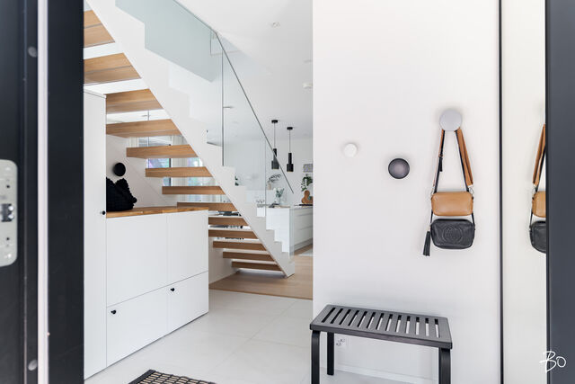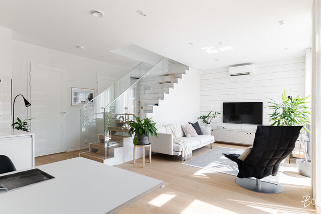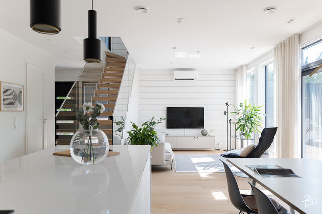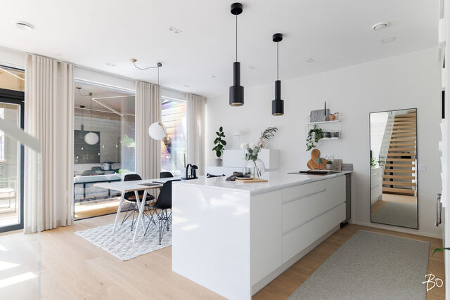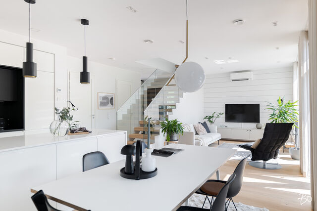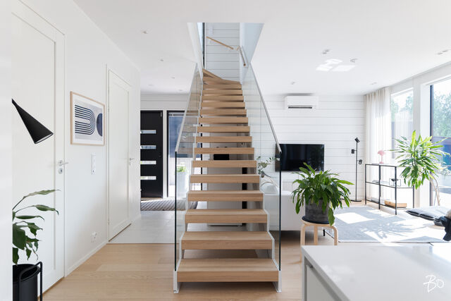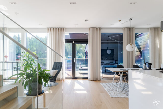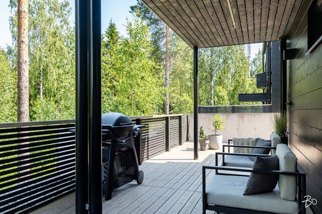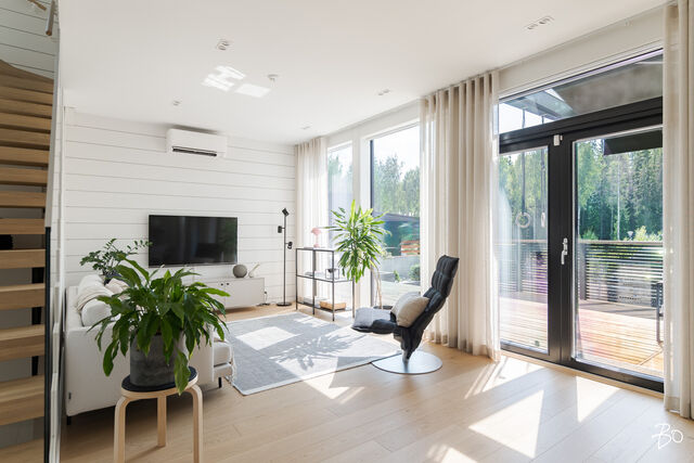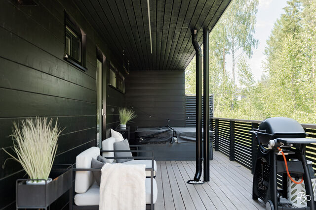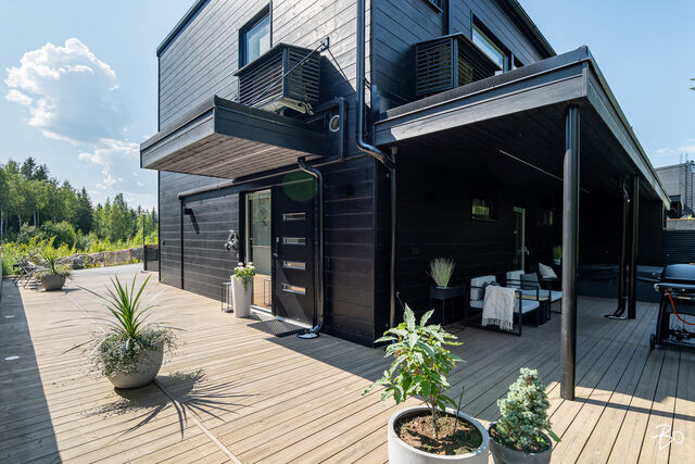 Etusivu / Pirkanmaa / Tampere / Koukkurannankatu 14 1 / 1 Koukkurannankatu 14 Vuores, Tampere | Paritalo | 5h, k, rt, psh, s, khh, kph, erill. wc, vh, et, + autokatos, pihap. terassi 535 000 € Velaton hinta 122,0 m2 Asuinpinta-ala 127,5 m2 Kokonaispinta-ala 2020 Rakennusvuosi Tervetuloa tutustumaan upeaan Honkatalojen hirsi-paritaloon Tampereen luonnonkauniissa Vuoreksen ympäristössä! Tämä valoisa ja laadukkaasti rakennettu koti tarjoaa 122 neliötä tilaa, johon kuuluu lisäksi erillinen varasto, autokatos ja pihapaikat kahdelle autolle.Kodin sydän on avara keittiö, jossa on laadukas Puustelli-keittö keraamisella tasolla ja saarekkeella täydellinen paikka niin arkeen kuin juhlaan. Avoin ruokailu- ja olohuonetila avautuu suuret ikkunat, jotka tuovat runsaasti luonnonvaloa sisään ja tarjoavat suoran yhteyden upeisiin terasseihin. Olohuoneessa on myös takkavaraus. Pihalla on suojaisa aurinkoterassi sekä takapihalla terassi poreammeineen, jossa voit rentoutua ja nauttia luonnon rauhasta.Kodin varusteluun kuuluu huippulaadukkaat mm. Paradorin tammilankkuparketti, Tapwellin vesikalusteet, heti käyttövalmis Helo Rondo -kiuas, poreamme ja Gradon teräsrunkoinen porras tammiaskelmineen ja lasikaiteineen. Lämmitys hoituu maalämmöllä, ja viilennystä tarjoaa kaksi ilmalämpöpumppua. Sähköauton latausasema on myös valmiina.Tilat on suunniteltu käytännöllisesti: kaksi erillistä wc:tä, kolme makuuhuonetta ja yksi tyylikäs työhuone lasiseinällä. Pesuhuoneesta pääsee suoraan terassille poreammeeseen, mikä tekee arjesta entistäkin miellyttävämpää.Vuoreksen alue on ihanteellinen lapsiperheille ja luonnossa liikkuville. Läheltä löytyvät koulut, päiväkodit ja ulkoilumaastot, ja Koukkujärvi on vain kivenheiton päässä. Hoitovastikkeeseen sisältyvät 100/100M valokuituyhteys, kaapeli-tv ja tonttivuokra.Tämä on yksi upeimmista kokonaisuuksista alueella tule ja ihastu! Ota yhteyttä ja varaa oma esittelyaikasi.KOHDETTA MYY Mikko Lamu0400 357 100 | mikko.lamu@bo.fi Kiinnostaako tämä kohde?Ota meihin yhteyttä tai jätä viesti Mikko Lamu asuntomyyjä, partner 0400 357 100 mikko.lamu@bo.fi Tutustu välittäjään Varaa aika kalenteristani HuoneistoOsakkeet269-390HallintamuotoAsunto-osakeyhtiöHuoneluku5h, k, rt, psh, s, khh, kph, erill. wc, vh, et, + autokatos, pihap. terassiKerros/Kerroksia1-2/2Asuinpinta-ala122,0 m2 (127,5 m2)Muut tilat5,5 m2Lisätietoja pinta-alastaVaraston pinta-ala 5,5 m²Keittiön kuvaus, lisätiedot ja varustusLattia: PARADOR lankkuparketti, pure tammi Seinät: maalattu. Työtaso: keraaminen PUUSTELLI -keittiö saarekkeella. SIEMENS -kodinkoneet. Kalusteisiin integroidut jääkaappi ja pakastin, induktioliesi liesituulettimella, erillisuuni, täysintegroitu astianpesukone, viinikaappi.Pesutilojen kuvaus, lisätiedot ja varustusLattia: laatta 60x60 Seinät: laatta 60x60 TAPWELL sadesuihku+käsisuohku, lasinen suihkuseinä, linjakaivo. Kiinteät valaisimet. Vesikiertoinen lattialämmitys. WC-tilojen kuvausLattia: laatta 60x60 Seinät: laatta 60x60 Vesikiertoinen lattialämmitys. 1. KRS Seinä WC-istuin, bidee, OTSOSON Meri marmoripesuallas + taso, allaskaapisto, TAPWELL hana, peili. Kiinteät valaisimet. 2. KRS TAPWELL sadesuihku + käsisuihku, lasiseinä + lasiovi, seinä WC-istuin, bidee, OTSOSON Meri marmori pesuallas+taso, allaskaapisto, TAPWELL hana, peili, pyyhekuivain. Lukumäärä: 2KodinhoitohuoneLattia: laatta 60x60 Seinät: laatta 60x60 Työtaso: laminaatti Pesuallas, TAPWELL hana, pyykkikaapit, seinäkaapit, tila pesutornille, pesukoneliitäntä. Vesikiertoinen lattialämmitys. Käynti suoraan ulos. Saunan kuvaus, lisätiedot ja varustusLattia: laatta Seinät: puupaneeli, musta haapa Kiuas: Heti valmis Helo Rondo Makuuhuoneen kuvaus, lisätiedot ja varustusLattia: PARADOR lankkuparketti, pure tammi Seinät: maalattu, sisustuspaneeli (MH1) Makuuhuone 1 (10,5 m² + walk-in vaatehuone 6,0 m²) - lamelliverho, verhokiskot, sälekaihtimet Makuuhuone 2 (10,5 m²) - vaatekaapisto - lamelliverho, verhokiskot, sälekaihtimet Makuuhuone 3 (10,5 m²) - vaatekaapisto - rullaverhot, verhokiskot sälekaihtimet Makuu/työtila (7,0 m²) - tyylikäs mustalla karmilla lasiseinä ja liukuovi - sälekaihtimet, rullaverhoLukumäärä: 4Oleskelutilojen kuvaus, lisätiedot ja varustusLattia: PARADOR lankkuparketti, pure tammi Seinät: maalattuMuut tilatEteinen: lattia: laatta 60x60. Vaatekaapisto, asunnon kiertävä tarassi etupihalta takapihalle missä poreamme. Lämmin varasto autokatoksen yhteydessä. Terassin alla luukullinen säilytystila ulkoiluvarusteille.,Muut säilytystilatMuu erillinen varastoMuuta kauppaan kuuluvaaIlmalämpöpumppu 2 kpl, poreamme, sähkötoiminen markiisi, varaus latausasemalle, isoissa ikkunoissa aurinkosuojakalvotKauppaan ei kuuluIrtaimistoKuntoHyväLisätietoa kunnostaYksilöllisesti suunniteltu arkkitehti SAFA Janne Kanteen suunnittelema Honkalojen hirsitalo. Erittäin laadukkaat materiaalit ja koneet, tyylikkäät sisustusvalinnat. Kiinteistö- ja yhtiötiedotYhtiön nimiAs Oy Vuoreksen Kuutiot ITontin omistusVuokrattuTontin koko2 058,30 m2Tontin vuokraajaTampereen kaupunkiTontin vuokrasopimus päättyy01.01.2077Tontin vuokra6 783,20 €Käyttöönottovuosi2020RakennusmateriaaliMuu, hirsiKattotyyppiPulpettiKateHuopaLämmitysjärjestelmäMaalämpö, muuEnergiatodistusKylläEnergialuokkaB2018Tiedossa olevat tulevat korjaukset/remontitSeuraavan viiden vuoden aika suunnitteilla: - Huoneiston C3 varaston lämmityksen korjaustyöt, - Lämpörasitteelle alttiiden julkisivujen huoltomaalaus. - Rakennukset ovat suhteellisen uusia, suoritetaan huoltokirjan mukaisia huolto- ja kunnostustehtäviä.Autokatokset4IsännöitsijäPirkanmaan Isännöintikanava PL 8, 33881 Lempäälä Isännöitsijä Juha LahtinenKiinteistönhoitoAsukkaat Muita tietojaLisätietoa kaavoituksestaTampereen kaupunkiVapautuuSopimuksen mukaan AsumiskustannuksetHoitovastike524,60 €/kk (4,30 €/m2)Yhtiövastike yhteensä524,60 €Vesimaksun perusteOma m
