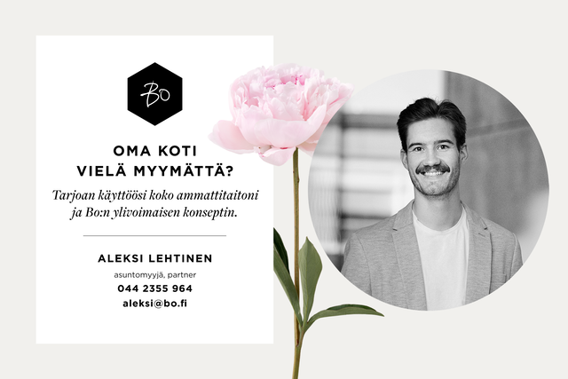 Asuntovahti Asuntovahti Etsimässä uutta asuntoa? Aseta itsellesi Bo-asuntovahti. Saat tiedon heti, kun unelmiesi asunto tulee myyntiin.