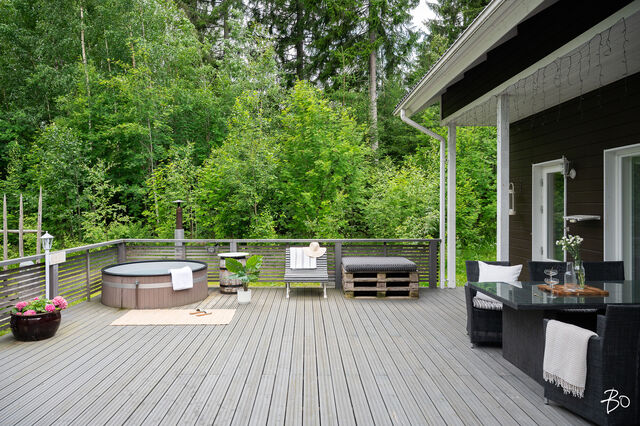Etusivu / Päijät-Häme / Hartola / Kurenlahdentie 21 1 / 1 Kurenlahdentie 21 Eko, Hartola | Mökki tai huvila | Oh, avokeittiö, 2mh, avoyläkerta, khh, kph, s, eteinen 248 000 € Velaton hinta 72,5 m2 Asuinpinta-ala 95,2 m2 Kokonaispinta-ala Hartolan Golf-kentän nurkalla vapaa-ajan asunto.Siinä ihan väylä 18 varrella on uudenveroinen Samitalon tuottama hirsihuvila.Reilunkokoisella 7100 neliön tontilla on kaikki mukavuudet (kunnallistekniikka) ja talviasuttava, moderni huvila, joka on lopputarkastettu 2018. Asuinkerroksesta löytyy valoisa ja korkea olohuone/avokeittiö, 2 makuuhuonetta, kodinhoitohuone, ph/wc ja sauna. Yläkerta on avointa tilaa lähes 30 neliötä, tänne voit majoittaa nukkumavieraita.Pihalla on laaja terassialue, katettu grillauspaikka, palju ja erillinen varastorakennus. Jääsjärvi on kivenheiton päässä ja golfkenttä naapurina. Hartolan palveluihin on muuta kilometri.Varaa tänne oma esittelyaikasi:markku.heikkila@bo.fiMarkku HeikkiläBo Lkv Lahtikiinteistönvälittäjä, LKV0400 285 007markku.heikkila@bo.fiCharlotta PöntinenBo LKV Lahtiasuntomyyjä044 9767 418charlotta.pontinen@bo.fi Kiinnostaako tämä kohde?Ota meihin yhteyttä tai jätä viesti Markku Heikkilä kiinteistönvälittäjä LKV, partner 0400 285 007 markku.heikkila@bo.fi Tutustu välittäjään RakennusRakennusmateriaaliPuuKattotyyppiHarjakattoKateTiilikattoKaton kuntoHyväAsuinpinta-ala72,5 m2 (95,2 m2)Lisätietoja pinta-alasta1. kerroksen huoneistoala on 72,5 m2 ja yläkerran parvi 22,7 m2.Kerrokset2Muut tilat22,7 m2LämmitysSähköinen lattialämmitys. HyväLämmitysjärjestelmän kuvausPuu, sähkö, ilmalämpöpumppu, muuHuonelukuOh, avokeittiö, 2mh, avoyläkerta, khh, kph, s, eteinenKeittiön muut varusteetMikroaaltouuni, astianpesukone, kiinteät valaisimet, liesituuletin / hormiLiesiInduktioliesi, erillisuuniKeittiön työtasojen materiaaliLaminaattiKeittiön lattiamateriaaliLaminaattiKeittiön seinien materiaaliMaalattu, tapettiKylpyhuoneen varustusSuihkuseinä, lattialämmitys, wc-istuin, suihku, peili, kiinteät valaisimetKylpyhuoneen lattiamateriaaliLaattaKylpyhuoneen seinämateriaaliKaakeliSaunaAsunnossa on saunaSaunan kuvaus, lisätiedot ja varustusSaunan seinät ja lauteet tervaleppää. Kiukaan vieressä seinä koristekiveä. Saunassa on kaksi ikkunaa. Saunassa on kaiutin (vaatii vahvistimen)Saunan lattiamateriaaliLaattaSaunan seinämateriaaliPuuKodinhoitohuoneVarustus: pesukone, pesukoneliitäntä, kuivausrumpu, lattialämmitys, lattiakaivo, pyykkikaapitLattiamateriaalit: laattaSeinämateriaalit: maalattuMakuuhuoneen kuvaus, lisätiedot ja varustusLukumäärä: 2Lattiamateriaalit: laminaattiSeinämateriaalit: maalattu, tapettiOleskelutilojen kuvaus, lisätiedot ja varustusOlohuoneen seinät osa raakalautaa ja yksi koristekiviseinä.Lattiamateriaalit: laminaattiSeinämateriaalit: maalattu, tapettiMuut tilatAvoin yläkerta.TulisijaVaraava takka, TulikiviTakkatiedotTakkaTehdyt korjauksetParven laajennus , muutospiirros 17.9.2018Muuta kauppaan kuuluvaaTerassi 90 m2, palju, ulkogrilli.KuntoHyväLisätietoja energiatodistuksestaKohteelle ei lain mukaan tarvita energiatodistusta. KiinteistötiedotKiinteistötunnus08140100013370TyyppiTilaTontin koko7 100,00 m2Tontin omistusOmaPanttikirjat250 000,00 €Lisätietoja tontistaTasamaatonttiTie perilleVesijohtoKunnanViemäriKunnanRakennusoikeus280,0 m2Rakennusoikeus, e-luku0.10Lisätietoja rakennusoikeudestaRakennusoikeus on 280 k-m2 AsumiskustannuksetSähkölämmitys120,00 €Tiemaksut138,00 € HintaVelaton hinta248 000,00 € (3 420,69 €/m2)Myyntihinta248 000,00 € (3 420,69 €/m2)VapautuuSopimuksen mukaanMaksuehtoKäteinen. Sinua voisi kiinnostaa Asunnon hinta-arvio ja arviokäynti Asunnon hinta-arvio ja arviokäynti Mitä hinta-arvio maksaa tai miten arviokäyntiä varten kannattaa valmistautua? Katso vastauksemme usein kysyttyihin ky… Sneak Peek® Sneak Peek® Sneak Peek® -palvelumme on askeleen edellä! Löydä alueesi uusimmat ja upeimmat asunnot jo ennen kuin ne ilmestyvät as… Asuntovahti Asuntovahti Etsimässä uutta asuntoa? Aseta itsellesi Bo-asuntovahti. Saat tiedon heti, kun unelmiesi asunto tulee myyntiin. Bo Match Bo Match Kun asuntounelmat ja unelmien asunnot kohtaavat, syntyy Bo Match. Tutustu uudenlaiseen tapaan käydä asuntokauppaa.