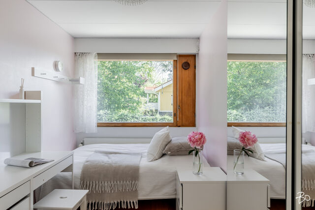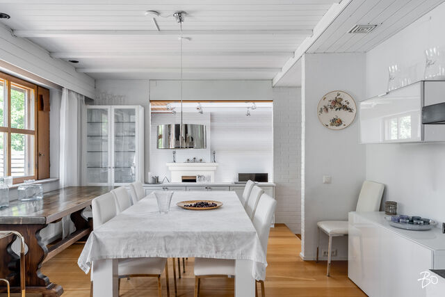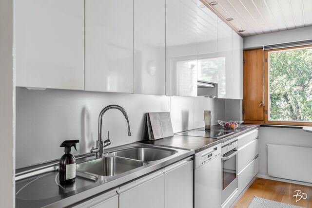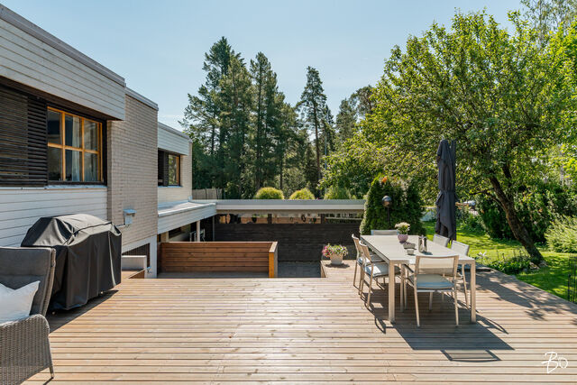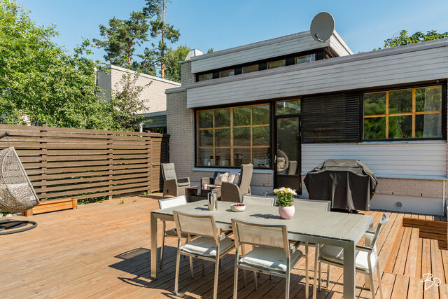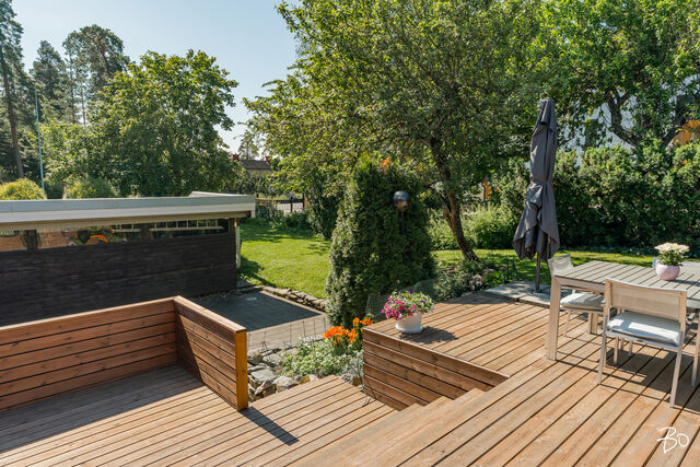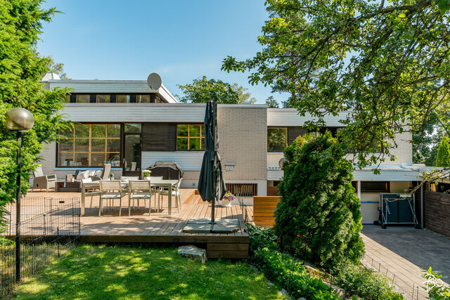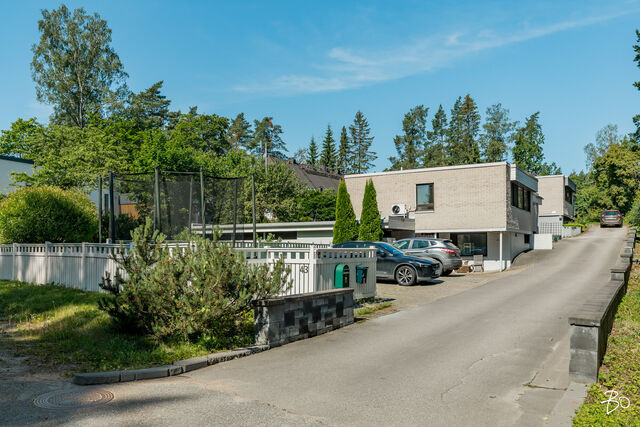 Etusivu / Uusimaa / Kauniainen / Bredantie 43 1 / 1 Bredantie 43 Kauniainen, Kauniainen | Paritalo | 7h+k+aputilat 890 000 € Velaton hinta 165,0 m2 Asuinpinta-ala 213,0 m2 Kokonaispinta-ala 1970 Rakennusvuosi Tilava ja toimivapohjainen paritalo rauhallisella ja arvostetulla alueella. Tässä vaaleassa kodissa nautit oman suuren atriumpihan ja upean puutarhan tarjoamasta rauhasta.Astuttaessa sisään tähän viehättävään kotiin, vastassa on valoisa ja avara tila, joka jakautuu käytännöllisesti kahteen kerrokseen. Varsinaiset asuintilat sekä kaikki neljä makuuhuonetta sijaitsevat sisääntulokerroksessa. Toiminnalliset ja monipuoliset aputilat, jotka tuovat arkeen helppoutta ja lisäävät asumismukavuutta, sijaitsevat alakerrassa. Takapihalle on kulku molemmista kerroksista.Asuntoon kuuluu lisäksi kaksi sähköauton latauspaikkaa, kaksi pihapaikkaa ja kylmä autokatos/varastorakennus.Puutarhamainen piha on kuin oma keidas, jossa voit nauttia luonnon rauhasta. Iso terassi on täydellinen paikka kesäisille juhlille tai rauhallisille aamukahvihetkille. Rauhallinen sijainti, mutta kuitenkin hyvät liikenneyhteydet tekevät tästä kodista erinomaisen paikan asua.Kauniainen tarjoaa asukkailleen erinomaiset lähipalvelut. Alueella on useita kouluja ja päiväkoteja, sekä laaja valikoima kaupallisia palveluita ja harrastusmahdollisuuksia. Kaunis ja vehreä ympäristö kutsuu ulkoilemaan ja nauttimaan luonnon rauhasta.Tervetuloa Kauniaisiin!Myynti ja esittelyt;Pia Lundenberg | pia.lundenberg@bo.fi |040 522 1967 Kiinnostaako tämä kohde?Ota meihin yhteyttä tai jätä viesti Pia Lundenberg myyntipäällikkö, asuntomyyjä, KED, partner 040 522 1967 pia.lundenberg@bo.fi Tutustu välittäjään Varaa aika kalenteristani HuoneistoOsakkeet1-39, 40-40HallintamuotoAsunto-osakeyhtiöHuoneluku7h+k+aputilatKerros/Kerroksia1-2/2Asuinpinta-ala165,0 m2 (213,0 m2)Muut tilat48,0 m2Lisätietoja pinta-alastaMuut tilat; autotalli 48m2. Edellä mainittu pinta-ala saattaa tämän ikäisessä kohteessa poiketa olennaisestikin huoneiston nykyisen ja rakentamisaikaisen mittaustapojen ja standardien mukaan laskettavasta pinta-alasta. Huoneiston todellinen pinta-ala voi siis olla yhtiöjärjestyksessä, isännöitsijäntodistuksessa ja esitteessä mainittua pienempi tai suurempi. Yhtiöjärjestyksen mukainen. Isännöitsijäntodistuksen mukainen.Keittiön kuvaus, lisätiedot ja varustusVaaleat kaapistot, keraaminen liesi, erillisuuni, liesituuletin, astianpesukone.Pesutilojen kuvaus, lisätiedot ja varustusAlakerran kylpyhuoneessa kaksi suihkua, seinät ja lattia laatoitettu. Yläkerran kylpyhuoneessa suihku, amme, wc-istuin, kaksi käsienpesuallasta kaapistolla, peilikaappi, seinät ja lattia laatoitettu.WC-tilojen kuvausLukumäärä: 3KodinhoitohuoneKodinhoitohuoneessa kaapistot, pesukoneliitäntä, kuivauskaappi, työtasot, pesuallas, laattalattia.Saunan kuvaus, lisätiedot ja varustusIkunnallisessa saunassa sähkökiuas, seinät paneloitu, laattalattia.Makuuhuoneen kuvaus, lisätiedot ja varustusMakuuhuoneissa seinät maalattu, kaapistot, parkettilattia.Lukumäärä: 5Oleskelutilojen kuvaus, lisätiedot ja varustusValoisa korkea olohuone josta käynti terasille sekä puutarhaan.Muutostyöt huoneistossaKts tehdyt remontitKuntoHyväTakkaAvotakka ruokailutilassaTakkatiedotTakka, muu Kiinteistö- ja yhtiötiedotYhtiön nimiAs Oy Kauniaisten Bredantie 43Tontin omistusOmaTontin koko2 302,00 m2Käyttöönottovuosi1970RakennusmateriaaliPuu, kivi, betoniKattotyyppiTasakatto bitumikermikatteellaLämmitysjärjestelmäKauko, ilmalämpöpumppuTehdyt korjaukset ja remontitAsuntoon A tehdyt korjaukset 2024 ilmalämpöpumpun asennus 2023 aidan uusiminen 2021 katon kuntotarkastus 2017 sokkelin maalaus, talon ulkopuolisten puuosien uusiminen ja maalaus 2013 hiottu ja öljytty keittiö puutasot, yläkerran pienten makuuhuoneiden maalaus, puukaiteen rakentaminen, spottien laitto, eteisen ja olohuoneen parketti+ alakertaan vievien portaiden parketti 2011 ulkoterassin teko 2008 kaivopumppujen asennus 2007 salaojien uusiminen 2006 kattosokkelin uusiminen, ulkoaltaan täyttäminen ja kivilaatoituksen tekeminen, kodinhoitohuoneen kaappien uusiminen, saunan uusittu, alakerran kylpyhuoneen laatat uusittu, uusi vesieriste, katto uusittu, rättipatterin asennus, takkahuoneen sein ja katto uusittu, keittiön kaapit uusittu, sisätilojen maalaus, eteisen kuraeteinen rakennettu, pienen wc:n laatat uusittu, uusi vesieriste, yläkerran kylpyhuoneen laatat vaihdettu, uusi vesieriste, kylpyamme lisätty, hanat ja wc-istuin uusittuLunastusoikeus osakkaillaKylläMuut rajoituksetLunastuslauseke yhtiöjärjestyksen 9§IsännöitsijäDaniella Norio Bredantie 43, KauniainenKiinteistönhoitoAsukkaat Muita tietojaLisätietoa kaavoituksestaKauniaisten kaupunki, kaavoitus, https://kartat.kauniainen.fiVapautuuSopimuksen mukaan AsumiskustannuksetYhtiövastike yhteensä0,00 €Vesimaksun perusteOma mittariMuut maksut / lisätietoa maksuistaSähkönkulutus 20 872 kWh/vuosi, sähkölaskussa mukana kahden sähköauton lataukset. Vesi-, ja jätevesi viiden hengen asukkailta noin 84€/kk, jätehuolto 28€/kk. Kunnossapitovastuuta koskevat yhtiöjärjestysmääräykset, yhtiökokouspäätökset ja sopimukset: Molemmat osakkaat vastaavat täysimääräisesti omassa hallussa olevien tilojen kunnossapidosta. Taloyhtiön osakeluettelo on siirretty huoneistotietojärjestelmään. Ostajan tulee hakea omistusoikeuden rekisteröintiä Maanmittauslaitokselta kaupan jälkeen. Ostaja vastaa omistusoikeuden rekisteröintikustannuksista, mahdollisista osakekirjan mitätöinnistä aiheutuvista kustannuksista. Varainsiirtovero velattomasta myyntihinnasta 1,5% HintaMyyntihinta890 000,00 € (5 393,94 €/m2)Velaton hinta890 000,00 € (5 393,94 €/m2) Sinua voisi kiinnostaa Asunnon hinta-arvio ja arviokäynti Asunnon hinta-arvio ja arviokäynti Mitä hinta-arvio maksaa tai miten arviokäyntiä varten kannattaa valmistautua? Katso vastauksemme usein kysyttyihin ky… Sn
