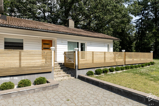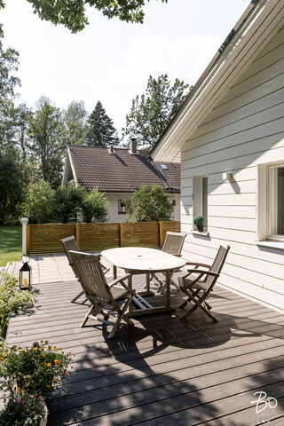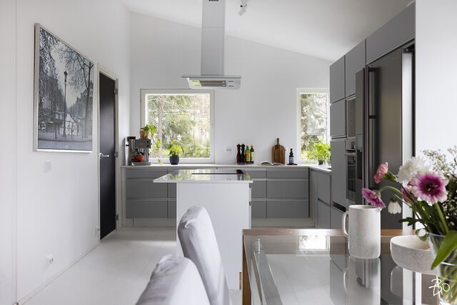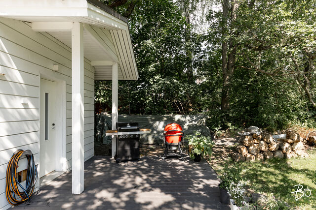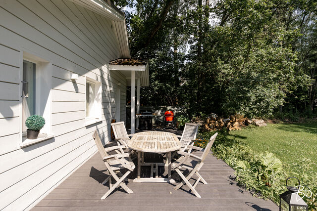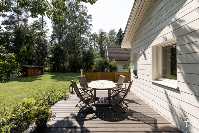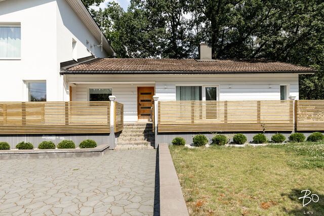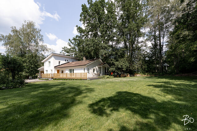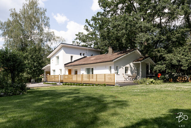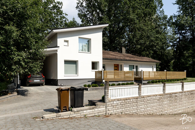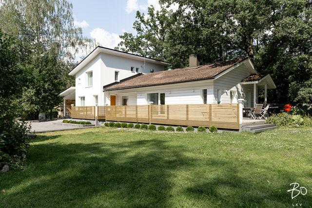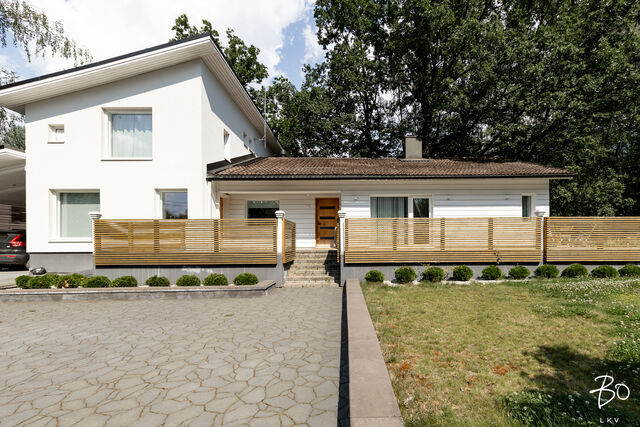 Etusivu / Uusimaa / Espoo / Tapiontie 5A 1 / 1 Tapiontie 5A Laaksolahti, Espoo | Omakotitalo | 6h, k, khh, 2x kph, s, 2x wc, ak, varasto 745 000 € Velaton hinta 173,0 m2 Asuinpinta-ala 185,0 m2 Kokonaispinta-ala 2016 Rakennusvuosi Tyylikäs ja nykyaikainen isommankin perheeen maalämpötalo! Tässä kodissa kaikki on kohdillaan - sekä pohjaratkaisussa että tunnelmassa. Laaksolahden viihtyisällä pientaloalueella, rauhallisen Tapiontien varrella seisoo jykevä ja tyylikkäästi uudistettu harkko/hirsitalo, jonka sydämessä sykkii valo, tila ja toimivuus. Talo on rakennettu alun perin 90-luvulla, mutta vuosien varrella siitä on muovattu kattavan remontin ja laajennuksen myötä moderni ja laadukas kokonaisuus, joka vastaa tämän päivän asumisen toiveisiin.Talon alakerta on suunniteltu arkea varten. Olohuoneen ja ruokailutilan muodostama avara, korkea tila toimii kodin keskipisteenä, jonka tunnelman kruunaa kaunis takka. Keittiö avautuu tilaan selkeästi, täällä laitetaan ruokaa ja nautitaan yhteisistä hetkistä perheen ja ystävien kanssa. Lattiasta kattoon ulottuvat ikkunat tuovat luonnonvalon osaksi arkea, ja olohuoneesta pääsee suoraan suurelle, osittain katetulle terassille, jossa auringonsäteet lämmittävät aamusta iltaan.Kodissa on kolme makuuhuonetta, ja yläkerran suuri aulatila mahdollistaa vielä kahden makuuhuoneen lisärakentamisen. Ja jos lisämakuuhuoneille ei ole tarvetta, yläkerran aulatila toimii mainiosti arkiolohuoneena, työtilana tai lasten leikkimaailmana. Tämän ansiosta koti taipuu monenlaisiin elämäntilanteisiin - isonkin perheen tarpeisiin tai etätyön ja harrastusten vaatimaan rauhaan. Kylpyhuoneita on kaksi, lisäksi yläkerran erillinen wc sekä käytännöllinen kodinhoitohuone, josta löytyy oma uloskäyntinsä. Saunaosasto on viimeistelty tummilla sävyillä ja laadukkailla materiaaleilla, ja tunnelma on kuin omassa spassa. Kaikki tekniikka, kuten sähköt, putket, ilmanvaihto ja lattialämmitys, on uusittu remontin yhteydessä, ja talon lämmitys hoituu energiatehokkaasti maalämmöllä.Pihapiiri on viimeistelty kivetyksin ja istutuksin, ja tasaisella tontilla riittää tilaa leikeille, viljelyksille ja kesäpäivien vietolle. Etupihalta löytyy lisäksi varasto ja autokatos, jotka vastaanottavat heti pihaan saapuessa.Sijainti on monella tapaa täydellinen: päiväkodit, koulut ja kaupat löytyvät kävelyetäisyydeltä, ja Leppävaaran kattavat palvelut ovat vain lyhyen ajomatkan päässä. Helsingin keskustaan pääsee helposti julkisilla tai omalla autolla, ja luonnonläheisyys - Laaksolahden urheilupuistot, Oittaan ulkoilumaastot ja Nuuksion kansallispuisto - tuo ulottuville mahdollisuuden nauttia vehreydestä ja raittiista ilmasta.Tämä ei ole vain talo - tämä on koti, joka on valmis seuraavaan lukuunsa. Olisiko se teidän tarinanne?Tervetuloa tutustumaan! Myynti:LAURI KATAS | LKV, LVV, KiAT, Partner040 9522 145 | lauri@bo.fi Kiinnostaako tämä kohde?Ota meihin yhteyttä tai jätä viesti Lauri Katas kiinteistönvälittäjä LKV, LVV, KiAT, partneryrittäjä Lauri Katas Oy 040 9522 145 lauri@bo.fi Tutustu välittäjään Varaa aika kalenteristani RakennusRakennusvuosi (aloitettu)2016Käyttöönottovuosi2016RakennusmateriaaliPuu, muu, hirsiKattotyyppiHarja- ja pulpettikattoKateTiiliAsuinpinta-ala173,0 m2 (185,0 m2)Lisätietoja pinta-alastaRakennuspiirustusten mukaan alkuperäisen rakennuksen huoneistoala on 81 m² ja kerrosala 96,7 m², vintin pinta-ala 19,2 m². Rakennusluvan mukaan alkuperäisen rakennuksen kerrosala on 97 m². Kerrosalakaavion mukaan alkuperäisen rakennuksen huoneistoala on 85 m² ja kerrosala 97 m². Laajennuksen 1. krs huoneistoala on 46 m² ja kerrosala 60 m², 2. krs huoneistoala 42 m² ja kerrosala 56 m². Varaston pinta-ala 12 m² Rakennus- ja huoneistorekisteriotteen mukaan käytetty rakennusoikeus 97 m², kokonaisala 225 m².Kerrokset2Muut tilat12,0 m2Lämmitysjärjestelmän kuvausMaalämpöLämmön jakotapaVesikiertoinen lattialämmitysHuoneluku6h, k, khh, 2x kph, s, 2x wc, ak, varastoTehdyt korjaukset2024 Laajennuksen lopputarkastus 2023 Takapihan terassi 2021 Pihan kivetys 2016 Laajennuksen työt aloitettu ja kesällä maalämmitys käynnistetty, piha uusittu, vanhan puolen täysremontti valmistunut (sähköt, viemärit, vedet, ilmastointi, lattialämmitys, lattiat, seinät, katot, ikkunat, ovet, keittiö, vessat, suihkut, sauna, kaakelit pl. ulkokatto ja hirsirunko) 2025 Tielle luvattu asfaltti ja samalla liityttävä kaupungin hulevesiverkkoon. N. 1 metrin liittymä pitää itse tehdä/teettää. Kaupunki ilmoittaa tarkemman aikataulun. KuntoHyvä KiinteistötiedotKiinteistötunnus49-60-95-4TyyppiTonttiTontin tyyppiTasamaatonttiTontin koko1 096,00 m2Tontin omistusOmaPanttikirjat433 600,00 €Rasitukset ja rasitteetTieoikeusLisätietoja tontistaTie perilleVesijohtoKunnanViemäriKunnanRakennusoikeus, e-luku0.20Lisätietoja rakennusoikeudestaKaavanmukainen rakennusoikeus: 219,2 k-m². Muita tietojaPalvelutParin sadan metrin päässä K- ja R- ja S-ketjut, Leppävaarassa kaikki palvelut. Kattavat urheilumahdollisuudet: Laaksolahden urheilupuisto, Oittaa ja Nuuksio myös lähellä.KouluPäiväkodit ja koulut parin minuutin kävelyn etäisyydellä.LiikenneyhteydetBussit 100-300 metrin päässä. Juna Leppävaarasta. Helsinkiin autolla 15 min, lentokentälle 25 min. AsumiskustannuksetKiinteistövero1 520,00 €Muut maksut / lisätietoa maksuistaSähkön kulutus: n. 800 €/v, ei sisällä sähköauton latausta Vesi ja viemäri: n. 250 €/ 3kk Roska-astiat ja tyhjennys HSY sopimuksen mukaan. Ilmoitetut kustannukset ja kulutusperusteiset maksut perustuvat nykyiseen kulutukseen ja ne saattavat muuttua ilmoitetuista käytön mukaan ja voivat siten olla pienempiä tai suurempia riippuen asukasmäärästä, asumistottumuksista ja palveluntarjoajasta. Sähkö kulutuksen/oman sähkösopimuksen mukaisesti. Sähköisten panttikirjojen siirtomaksusta vastaa ostaja. Varainsiirtovero 3 % kauppahinnasta. Hinta