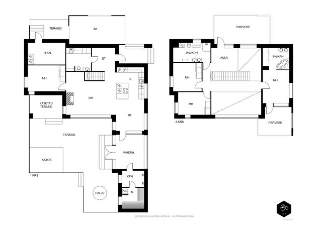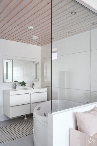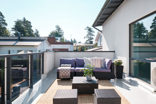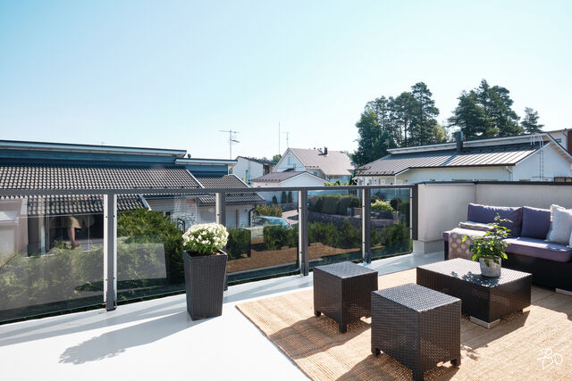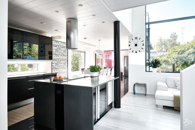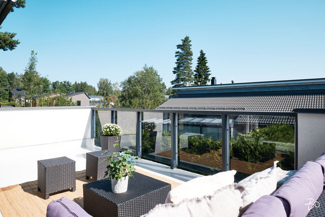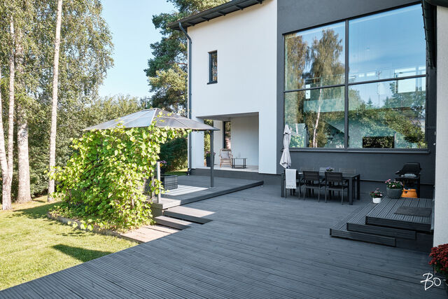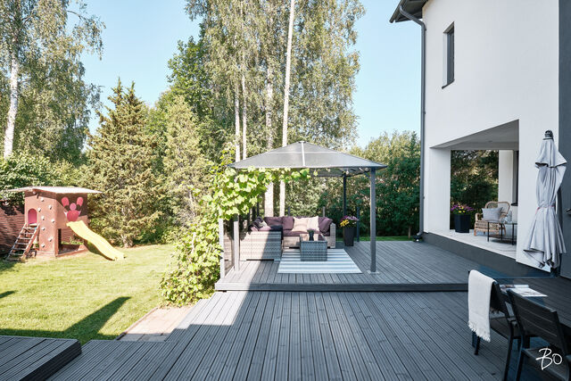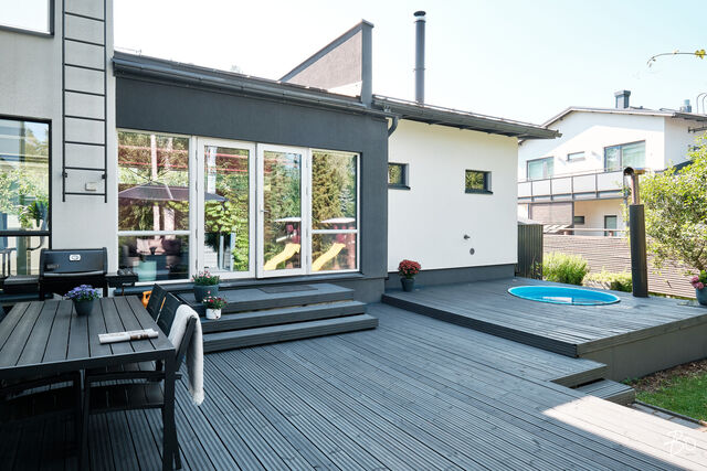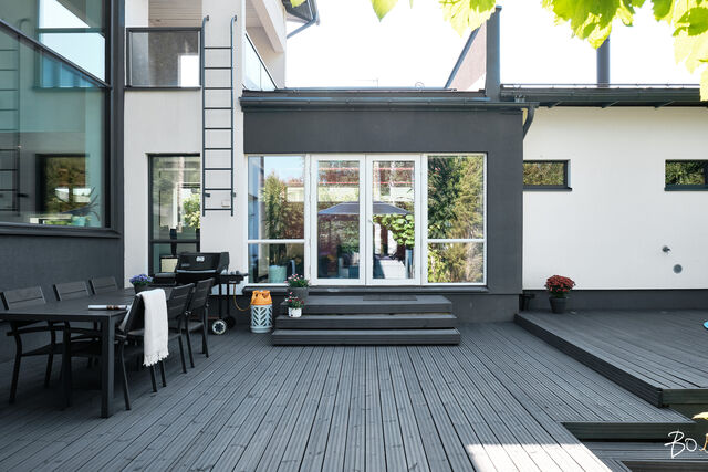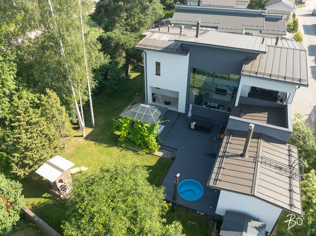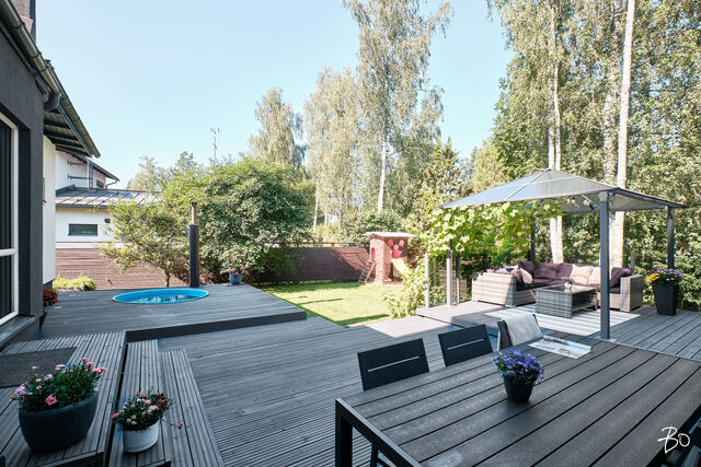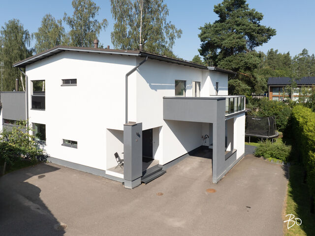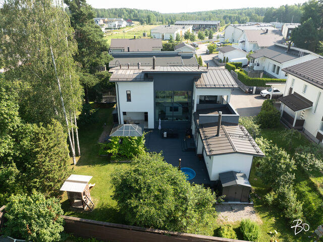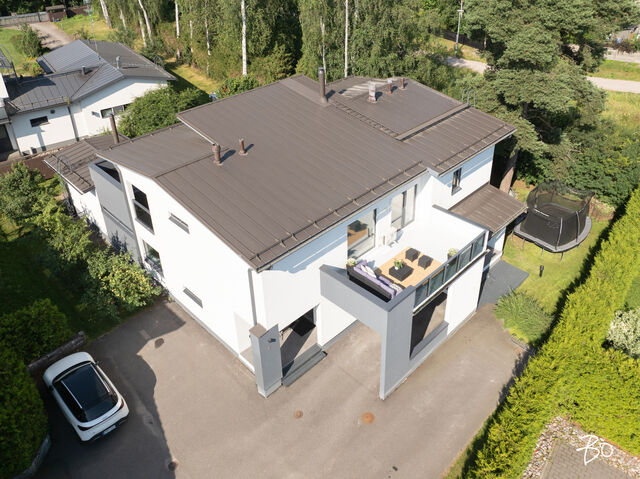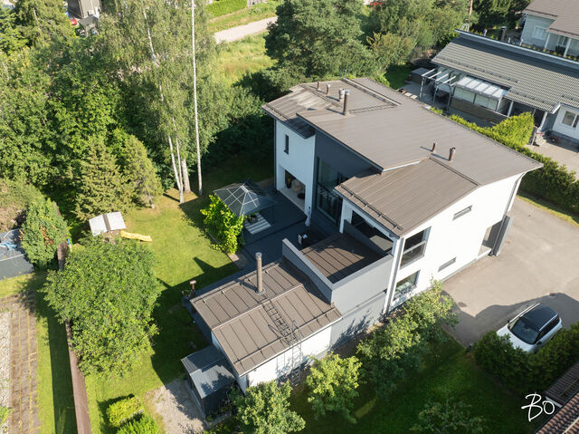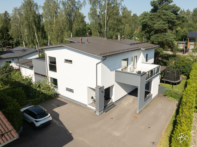 Etusivu / Uusimaa / Espoo / Donabacka 8C 1 / 1 Donabacka 8C Kurttila, Espoo | Omakotitalo | 5h, avok. rt, viherh. aula, 2kph, s, 2wc/khh, 2 parveke, terassi, piha 864 000 € Velaton hinta 174,0 m2 Asuinpinta-ala 184,0 m2 Kokonaispinta-ala 2013 Rakennusvuosi Vuonna 2013 omalle tontille valmistunut Jämerä-kivitalo on persoonallinen ja käytännöllinen, mutta samalla arkkitehtonisesti kiinnostava. Pohjaratkaisu on viihtyisä ja lämpimän kodikas; tilat lomittuvat toisiinsa luontevasti ja ne tuovat asumiseen väljyyttä ja monikäyttöisyyttä. Huomio kiinnittyy väistämättä olohuoneeseen, jossa suuret ikkunapinnat, huonekorkeus ja koko talon läpi virtaava luonnonvalo luovat henkeäsalpaavan tunnelman. Olohuoneen yhteydessä sijaitseva avokeittiö on suunniteltu palvelemaan intohimoisen kotikokin vaatimuksia ja se on käytännöllinen runsaiden säilytystilojen ja työskentelypintojen ansiosta. Keittiön vieressä on luonnollinen paikka suuremmallekin ruokailuryhmälle. Oleskelutilat jatkuvat saumattomasti viherhuoneen kautta suojaisalle terassialueelle, jossa mielellään vietetään nautinnollisia kesäpäiviä. Makuuhuoneita on neljä, joista kolme yläkerrassa ja yksi olohuoneen yhteydessä alakerrassa. Alakerrassa omassa siivessään sijaitsee kylpyhuone sekä puulämmitteinen sauna, joka tarjoaa pehmeät löylyt ja rauhallisen hetken päivän päätteeksi. Rentoutuminen on selvästi otettu huomioon myös yläkerrassa, jossa päämakuuhuoneen yhteydessä sijaitsee kodin oma mini-spa: poreamme, pukeutumistila ja rauhallinen tunnelma tekevät tästä arjen ylellisestä yksityiskohdasta ainutlaatuisen - kuin hotellihuone kodin sisällä. Päämakuuhuoneesta on myös käynti katetulle parvekkeelle. Kodin arkea helpottavat kaksi kodinhoitohuonetta - yksi kummassakin kerroksessa. Tilat on suunniteltu järkevästi, niin että käytännöllisyys ja toiminnallisuus tukevat perheen elämää kiireisinäkin hetkinä. Yläkerrassa on oivallinen tila pyykkihuollolle ja alakerran kodinhoitohuone on käytännöllisesti eteisen yhteydessä. Lämmitysmuotona on energiatehokas ilmavesilämpöpumppu ja lämmönjakotapana on miellyttävä vesikiertoinen lattialämmitys. Viilennystä kesähelteillä tuo ilmalämpöpumppu. Kivirunko ja nykyaikainen talotekniikka takaavat miellyttävän sisäilman ja vakaat lämpöolosuhteet - koti tuntuu aina juuri sopivalta.Oma 721m2 tontti on suojaisa ja se rajoittuu osittain Espoon viheralueeseen. Pihalla on nurmialuetta lasten leikeille sekä suuri terassi, jossa on tilaa kesäkeittiölle, olohuoneelle ja kesäpäivien iloksi puulämmitteinen palju. Pihaa koristavat omena-, kirsikka- ja luumupuut sekä viinimarjapensaat. Suojaisa tontti sijaitsee päättyvän tien päädyssä, joten täällä on lasten turvallista leikkiä. Pihalla on paikka kolmelle autolle, joista yksi on autokatospaikka. Katoksessa on valmiina myös sähköauton latauspiste. Kurttilan rauhallinen ympäristö ja hyvät ulkoilumahdollisuudet tekevät asuinalueesta ihanteellisen valinnan lapsiperheille. Lähistöltä löytyvät koulut, päiväkodit ja muut arjen tärkeät palvelut, jotka tekevät arjesta sujuvaa ja vaivatonta. Nyt on tarjolla tarkkaan harkittu kokonaisuus, jossa yhdistyy yksilöllinen pohjaratkaisu, läpi talon kulkeva valoisuus sekä arkea palvelevat yksityiskohdat. Täällä on helppo viihtyä. Tämän kodin esittelyt järjestetään yksityisinä esittelyinä, joten varaathan oman aikasi ja mennään ihastumaan. Myynti ja tiedustelut:Mari Rautio LKV, LVV, KiAT, Partner040-1202701mari@bo.fi Kiinnostaako tämä kohde?Ota meihin yhteyttä tai jätä viesti Mari Rautio kiinteistönvälittäjä LKV, LVV, KiAT, partner 040 120 2701 mari@bo.fi Tutustu välittäjään Varaa aika kalenteristani RakennusRakennusvuosi (aloitettu)2012Käyttöönottovuosi2013RakennusmateriaaliKiviRakennusmateriaalien kuvausJämerä kevytbetoniKattotyyppiHarja- ja pulpettiKatePeltiKaton kuntoHyväAsuinpinta-ala174,0 m2 (184,0 m2)Lisätietoja pinta-alastaRakennuspiirustusten mukainen asuinpinta-ala on 1. krs 97,4m2 ja 2.krs 66,9m2 sekä viherhuone 10,1m2 yhteensä 174m2. Muut tilat tarkoittaa teknistä tilaa / varastoa 10,4m2. Espoon kaupungin rakennus- ja huoneistorekisteriotteen mukaan asuinpinta-ala on 174m2, Kerrosala: 237m2, Kokonaisala: 256m2. Kerrokset2Muut tilat10,0 m2LämmitysVesikiertoinen lattialämmitys. HyväLämmitysjärjestelmän kuvausIlmavesilämpöpumppu, ilmalämpöpumppuHuoneluku5h, avok. rt, viherh. aula, 2kph, s, 2wc/khh, 2 parveke, terassi, pihaKeittiön kuvaus, lisätiedot ja varustus2 x jääkaappi/pakastin, astianpesukone, erillisuuni, induktioliesi, integroitu mikro, integroitu kahvikone, liesituuletin, 2 x viinikaappi. Tamminen työtaso. Kaapistojen välitila laatoitettu, muuten seinät maalattu. Lattia laatta. Pesutilojen kuvaus, lisätiedot ja varustusKylpyhuone saunan yhteydessä: 2 sadesuihkua, seinät ja lattia laatoitettu. Makuuhuoneen yhteydessä (kph / pukeutumishuone): kahden hengen poreamme, käsisuihku, kahden altaan allaslaatikosto ja valopeili. Lattia ja seinät laatoitettu. Liukuovikaapisto. SaunaAsunnossa on saunaSaunan kuvaus, lisätiedot ja varustusPuukiuas, lattia laatoitettu, seinät paneeli. WC-tilojen kuvausAlakerran wc / khh: wc-istuin, allaslaatikosto, valopeili, käsisuihku, kaapistot, kookas pesuallas (sopiva mm. lemmikkien pesuun), pyyhekuivain, naulakko. Työtaso tammea. Kaapistojen välitila laatoitettu, muuten seinät maalattu. Lattia laatta. Yläkerran wc / khh: wc-istuin, allaslaatikosto tupla-allastaso, valopeili, suihkukaappi, pesukoneliitäntä, pyykinkuivausteline. Kaapistoa. Yksi seinä laatoitettu, muuten maalattu. Lattia laatta. Lukumäärä: 2Makuuhuoneen kuvaus, lisätiedot ja varustusMH1: Seinät maalattu, lattia laminaatti, käynti parvekkeelle MH2: Seinät maalattu, lattia, laminaatti, liukuovikaapisto MH3: Seinät maalattu, lattia laminaatti, liukuovikaapisto MH4: Seinät maalattu ja osin tapetoitu, lattia laminaatti, liukuovikaapisto (a