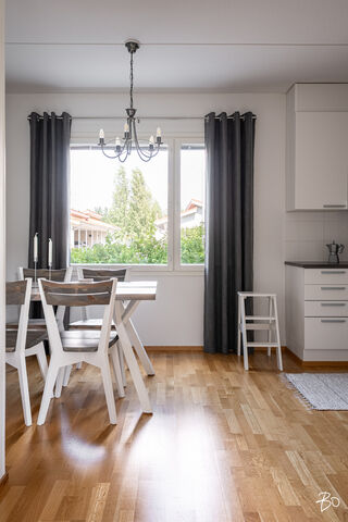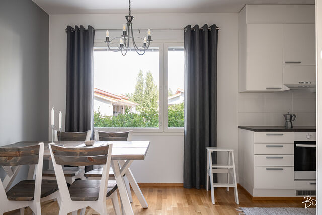 Etusivu / Pohjois-Pohjanmaa / Oulu / Pohjantähdentie 17 1 / 1 Pohjantähdentie 17 Talvikangas, Oulu | Rivitalo | 3h, k, kph, kh/wc, s, terassi, 2x parveke 188 000 € Velaton hinta 76,5 m2 Asuinpinta-ala 267,75 €/kk Hoitovastike 2014 Rakennusvuosi Rivitalonpäätykoti kahdessa tasossa modernia mukavuutta ja huolettomuutta Talvikankaalla!Tervetuloa kotiin, jossa moderni ilme kohtaa käytännöllisen arjen. Tämä poikkeuksellisen siisti ja huolella pidetty päätyhuoneisto tarjoaa asuintilaa kahdessa kerroksessa ja hurmaa harkituilla yksityiskohdillaan. Vuonna 2014 valmistunut asunto on lähes uudenveroisessa kunnossa - muutto onnistuu ilman huolta pintaremontista!Kahden makuuhuoneen, olohuoneen, keittiön, saunan ja kahden kylpyhuoneen kokonaisuus tarjoaa sujuvat puitteet niin pienelle perheelle kuin pariskunnallekin. Molempien kerrosten kylpyhuoneet suihkuineen helpottavat arkea, ja olohuoneesta on suora kulku näppärälle terassille. Yläkerrassa on kaksi parveketta, joista isompi on päämakuuhuoneen yhteydessä.Hyvin hoidettu taloyhtiö tarjoaa huoletonta asumista ja pitkäjänteistä vakautta. Hoitovastike on hyvin maltillinen - 3,50€ neliöltä ja taloyhtiön taloustilanne on vakaalla pohjalla. Kodin yhteydessä myydään autopaikka erillisenä osakkeena, ja sähköautonlatausinfra on autopaikalle toteutettavissa, mikäli tarvetta latauspaikalle on.Talvikankaan rauhallinen ja suosittu asuinalue Oulussa tarjoaa erinomaiset puitteet erityisesti lapsiperheille. Lähistöllä sijaitsevat koulut, päiväkodit ja monipuoliset palvelut tekevät arjesta sujuvaa, ja alueen ulkoilumahdollisuudet takaavat viihtyisän elinympäristön.Tämä koti tarjoaa enemmän kuin neliöitä - huolettoman ja toimivan arjen viihtyisässä ympäristössä. Tervetuloa tutustumaan paikan päälle:Nelli Hänninenkiinteistönvälittäjä LKV, partner050 323 2300nelli.hanninen@bo.fi Kiinnostaako tämä kohde?Ota meihin yhteyttä tai jätä viesti Nelli Hänninen kiinteistönvälittäjä LKV, partner 050 323 2300 nelli.hanninen@bo.fi Tutustu välittäjään Varaa aika kalenteristani HuoneistoOsakkeet1741-2505HallintamuotoAsunto-osakeyhtiöHuoneluku3h, k, kph, kh/wc, s, terassi, 2x parvekeKerros/Kerroksia1-2/2Asuinpinta-ala76,5 m2Muut tilat0,0 m2Lisätietoja pinta-alasta Toimeksiantajan ilmoittama.NäkymätParvekkeita kaksi; isompi parveke päämakuuhuoneen yhteydessä ja pienempi parveke yläkerran aulan yhteydessä.Parvekkeen ilmansuuntaEtelä, länsi, lounasLiesiKeraaminen liesi, erillisuuniKeittiön työtasojen materiaaliLaminaattiKeittiön lattiamateriaaliParkettiKeittiön seinien materiaaliMaalattu, osalaatoitusPesutilojen kuvaus, lisätiedot ja varustusYläkerrassa erillinen pesuhuone, jossa yksi suihkuKylpyhuoneen lattiamateriaaliLaattaKylpyhuoneen seinämateriaaliKaakeliWC-tilojen kuvausAlakerran wc/kph, jossa suihku+suihkuseinä ja yläkerrassa wc/khhVarustus: pesukoneliitäntäLukumäärä: 2Lattiamateriaalit: laattaSeinämateriaalit: kaakeliSaunan lattiamateriaaliLaattaSaunan seinämateriaaliPuuMakuuhuoneen kuvaus, lisätiedot ja varustusLukumäärä: 2Lattiamateriaalit: parkettiSeinämateriaalit: maalattuOleskelutilojen kuvaus, lisätiedot ja varustusLattiamateriaalit: parkettiSeinämateriaalit: maalattuKuntoHyväLisätietoa kunnostaAsunto erinomaisessa kunnossa, käytön jälkiä on ikään nähden hyvin vähän. Kiinteistö- ja yhtiötiedotYhtiön nimiAsunto Oy Oulun TähtitalvikkiTontin omistusVuokrattuTontin koko8 549,00 m2Tontin vuokraajaOulun kaupunkiTontin vuokra16 750,00 €Käyttöönottovuosi2014RakennusmateriaaliPuuKattotyyppiHarjakattoKateHuopakateLämmitysjärjestelmäKaukoEnergiatodistusKylläLisätietoja energiatodistuksestaVoimassa 11.06.2034 saakka. EnergialuokkaB2018Tehdyt korjaukset ja remontit2025 IV-kanavien nuohous, 2024 Palovaroittimien uusiminen, energiatodistuksen päivitys, sähköautopaikkojen rakentamisen aloitus, autokatoksen rännien alaosien korjaukset, keskipihan maapinnan korotus kaivon ympärillä, 2020 Jätekatoksen metalliovi, sähköauton latauskartoitus, 2019 Kaukolämmön jatkohälytys GSM modeemi, 2018 Lisäautopaikkojen rakentaminen 3 kpl, tikkaiden nousukiskot ja kiipeilyeste, 2016 Lisäautopaikkojen rakentaminenTiedossa olevat tulevat korjaukset/remontitHallituksen selvitys kunnossapitotarpeista vuosille 2025-2029: Huoltomaalaus, eteläpäädyt 2026Autokatokset27Pihapaikkoja9Lainat59 779,97 €IsännöitsijäKodin Isännöinti, Aleksi Ojala p. 0107395483 aleksi.ojala@kodinisannointi.fiKiinteistönhoitoHuoltoyhtiöYhtiön tilat ja varusteluVäestönsuoja, huoneistokohtaiset varastot. Muita tietojaLisätietoa kaavoituksestaOulun kaupunki, asemakaavoitus@ouka.fiVapautuuSopimuksen mukaan AsumiskustannuksetHoitovastike267,75 €/kk (3,50 €/m2)Yhtiövastike yhteensä267,75 €Vesimaksun perusteOma mittariMuut maksut / lisätietoa maksuistaVesimaksuennakko 20€ / hlö / kk Autopaikkavastike 10€ / kk Ostaja vastaa omistusoikeuden rekisteröintikustannuksista, mahdollisista osakekirjan mitätöinnistä aiheutuvista kustannuksista sekä mahdollisesta hakemusmaksun korotuksesta. Ostajan pankin ostajalta mahdollisesti veloittamista kaupantekoon, omistusoikeuden rekisteröintiin tai panttausmerkinnän hakemiseen liittyvistä kustannuksista ostaja saa tiedon pankiltaan. Sähköisen DIAS-kaupan kulusta (96€) per osake vastaa ostaja. HintaMyyntihinta188 000,00 € (2 457,52 €/m2)Velaton hinta188 000,00 € (2 457,52 €/m2)MaksutapaKäteinen. Sinua voisi kiinnostaa Asunnon hinta-arvio ja arviokäynti Asunnon hinta-arvio ja arviokäynti Mitä hinta-arvio maksaa tai miten arviokäyntiä varten kannattaa valmistautua? Katso vastauksemme usein kysyttyihin ky… Sneak Peek® Sneak Peek® Sneak Peek® -palvelumme on askeleen edellä! Löydä alueesi uusimmat ja upeimmat asunnot jo ennen kuin ne ilmestyvät as… Asuntovahti Asuntovahti Etsimässä uutta asuntoa? Aseta itsellesi Bo-asuntovahti. Saat tiedon heti, kun unelmiesi asunto tulee myyntiin. Bo Match Bo Match K