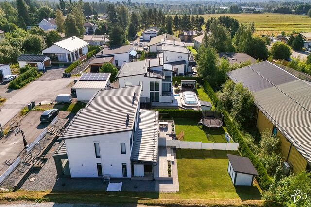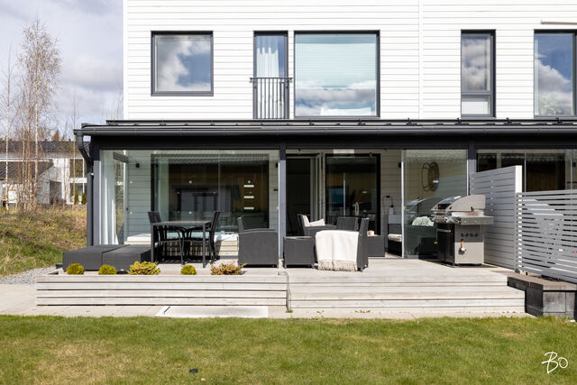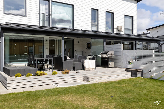 Etusivu / Pirkanmaa / Tampere / Yli-Heikkilänkuja 18 A 1 / 1 Yli-Heikkilänkuja 18 A Takahuhti, Ristinarkku, Tampere | Paritalo | 4h, k, kph/s, erill. wc, khh/wc, 2x lasitettu terassi (Drop -amme) 458 000 € Velaton hinta 100,0 m2 Asuinpinta-ala 117,0 m2 Kokonaispinta-ala 2018 Rakennusvuosi Tervetuloa Itä-Tampereelle Ristinarkkuun moderniin, viihtyisään ja huolettomaan kotiin!Tämä tyylikäs paritaloasunto sijaitsee rauhallisella ja suositulla alueella, kadun päädyssä ja vieläpä omalla tontilla. Valoisa ja hyvin suunniteltu koti tarjoaa niin toimivaa arkea kuin arjen luksusta täydellinen yhdistelmä nykyaikaiselle asumiselle.Asunnon sydän on avara olohuone-keittiöyhdistelmä, jossa on runsaasti tilaa perheen ja ystävien kanssa yhdessäoloon, ruoanlaittoon ja rentoutumiseen. Suuri ruokailuryhmä mahtuu vaivatta tilaan, ja isot ikkunat päästävät luonnonvalon virtaamaan sisään koko päivän ajan. Olohuoneesta on suora kulku kodin katetulle ja lasitetulle terassille, joka on ehdottomasti yksi tämän kodin helmistä.Terassilla sinua odottaa upea Drop-poreallas, joka tarjoaa ylellisiä hetkiä vuoden ympäri. Etelänsuuntainen piha-alue puolestaan tarjoaa erinomaiset puitteet ulkoiluun, leikkiin ja kesäpäivien viettoon. Alakerrasta löytyy tyylikäs kylpyhuone ja saunaosasto, sekä erillinen wc. Yläkerrassa sijaitsee kolme hyvänkokoista makuuhuonetta, jotka mukautuvat vaivattomasti niin perhe-elämän kuin etätyöskentelyn tarpeisiin. Yläkerrassa on myös kodinhoitohuone ja toinen wc, mikä lisää asumismukavuutta arjen keskellä.Kodin sisustus on kauttaaltaan vaaleasävyinen ja harmoninen, mikä korostaa luonnonvaloa ja tekee tiloista raikkaita ja ilmavia. Lämmityksestä vastaa energiatehokas maalämpö, joka toimii vesikiertoisen lattialämmityksen kautta kaikissa asuintiloissa tämä tuo sekä mukavuutta että merkittäviä säästöjä asumiskustannuksiin. Pihan perällä on käytännöllinen varastotila esim. pihavälineiden ja pyörien talvisäilytykseen. Tämän lisäksi pääsisäänkäynnin yhteydessä on lämmin varastotila. Asunnon edustalla on virallisesti kaksi autopaikkaa, mutta siihen mahtuu helposti kolmekin autoa tai vaihtoehtoisesti siinä on hyvä tila peräkärryn, venetrailerin tai asuntovaunun säilytykseen. Sijainti on erinomainen: luonnonläheinen mutta silti lähellä Linnainmaan kattavia palveluita. Ohitustien läheisyyden ansiosta kulkeminen eri puolille Tamperetta ja ympäryskuntiin sujuu joustavasti ja erittäin nopeasti. Tässä kodissa yhdistyvät rauha, laatu ja moderni asumisen helppous tavalla, joka hurmaa heti ensi hetkestä alkaen.Tämä koti on heti vapaana uusille asukkaille, joten muuttamaan pääset välittömästi kauppojen jälkeen. Järjestämme yksityisesittelyitä hyvin joustavasti, joten ota heti yhteyttä niin pääsette tutustumaan paikan päälle. KOHDETTA MYY:Marko Lamu040 801 3166 I marko.lamu@bo.fi Kiinnostaako tämä kohde?Ota meihin yhteyttä tai jätä viesti Marko Lamu myyntijohtaja, kiinteistönvälittäjä LKV, KiAT 040 801 3166 marko.lamu@bo.fi Tutustu välittäjään Varaa aika kalenteristani RakennusKäyttöönottovuosi2018RakennusmateriaaliPuuKattotyyppiHarjakattoKatePeltiKaton kuntoHyväAsuinpinta-ala100,0 m2 (117,0 m2)Lisätietoja pinta-alastaPinta-alatiedot perustuvat rakennuspiirustuksiin. Huoneistoala on piirustusten mukaan 100 m², mihin ei ole laskettu mukaan lasitettuja etu- ja takaterassia sekä lämmintä varasto ja teknistä tilaa. Kauppahinta ei ole pinta-alaperusteinen. Tarkistusmitattu.Muut tilat17,0 m2Lämmitysjärjestelmän kuvausMaalämpö, ilmalämpöpumppuLämmön jakotapaVesikiertoinen lattialämmitysHuoneluku4h, k, kph/s, erill. wc, khh/wc, 2x lasitettu terassi (Drop -amme)Keittiön kuvaus, lisätiedot ja varustusValkoiset kaapistot (sis. aamiaiskaappi), mustat vartsitasot, korkea jääkaappi ja pakastekaappi, erillisuuni, induktioliesi, integroitu mikroaaltouuni, astianpesukone, lattia laattaa (vesikiertoinen lattialämmitys), seinät maalattu. Pesutilojen kuvaus, lisätiedot ja varustusAlakerran kph; kaksi suihkua, kiinteät valaisimet, lattia ja seinät laattaa, vesikiertoinen lattialämmitys. SaunaAsunnossa on saunaWC-tilojen kuvausAlakerran wc; peili, allaskaapisto, wc-istuin, bideesuihku, lattia laattaa, seinät maalattu, vesikiertoinen lattialämmitys.Lukumäärä: 1KodinhoitohuoneYläkerrassa tilava kodinhoitohuone/wc: kiinteät kaapistot, pöytätaso, pesukoneliitäntä ja paikka kuivausrummulle, wc-istuin, allaskaapisto, bideesuihku, lattia laattaa, seinät maalattu, vesikiertoinen lattialämmitys. Varustus: pesukoneliitäntä, lattialämmitys, pyykkikaapit, pöytätasoLattiamateriaalit: laattaSeinämateriaalit: maalattuMakuuhuoneen kuvaus, lisätiedot ja varustusMakuuhuoneissa kaapisto / vaatehuone, lattia parkettia, seinät maalattu, lattia vinyylikorkki. Lukumäärä: 3Oleskelutilojen kuvaus, lisätiedot ja varustusOlohuoneesta käynti lasitetulle terassille, lattia laattaa, seinät maalattu. Muut säilytystilatVaatehuone, ulkovarastoTehdyt korjaukset2022 etu ja takaterassin lasitusMuuta kauppaan kuuluvaaDrop -poreallas, sähköauton latausasema.Kauppaan ei kuuluIrtaimistoKuntoHyväEnergiatodistusKylläEnergialuokkaB2013 KiinteistötiedotTyyppiTonttiTontin tyyppiTasamaatonttiTontin koko1 000,00 m2Tontin omistusOmaPanttikirjat500 000,00 €Lisätietoja tontistaMyytävä määräosa A käsittää hallinnanjakosopimuksen piirroksen mukaan noin puolet eli 500 m2 alueen koko tontista. Tie perilleVesijohtoKunnanViemäriKunnan AsumiskustannuksetKiinteistövero777,08 €Muut maksut / lisätietoa maksuistaKokonaissähkönkulutus on ollut vuonna 2024 myyjällä noin 16200 kWh, joka pitää sisällään käyttösähkön, lämmityksen, kahden sähköauton latauksen ja poreammeen jatkuvan lämmityksen 4-5 hengen taloudessa. Puhtaanapito paikallisen jätehuoltoyrityksen taksojen ja tyhjennyskertojen mukaan. Vesimaksu oman mittarin ja kulutuksen mukaan. Esitetyt asumiskustannukset per