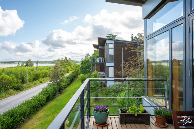 Etusivu / Varsinais-Suomi / Turku / Papinjyrkkä 4 1 / 1 Papinjyrkkä 4 Hirvensalo, Turku | Rivitalo | 3h, avok, rt, kh, s, khh, wc, vh, 2p, var, ak (yj 3-4h+k+s+autokatos+ulk.välinevarasto) 398 000 € Velaton hinta 113,0 m2 Asuinpinta-ala 143,5 m2 Kokonaispinta-ala 2007 Rakennusvuosi Merinäköalaa ja modernia mukavuutta upea paritalohuoneisto Papinsaaressa!Tervetuloa tutustumaan tähän hienoon huoneistoon Turun merellisessä Papinsaaressa! Vuonna 2007 valmistunut Asunto Oy Papinvalkaman Majakanvartija sijaitsee omalla tontilla ja tarjoaa laadukasta asumista upeissa maisemissa vain muutaman kilometrin päässä keskustasta.Tämä kahdessa kerroksessa oleva paritalohuoneisto yhdistää modernin asumismukavuuden, tyylikkäät sisätilat ja merellisen tunnelman.Yläkerrassa sijaitsee avara olohuone, jonka tunnelmaa kruunaa merinäköala, takka ja käynti yläkerran parvekkeelle. Vuonna 2024 täysin uusittu Noblessan saarekkeellinen avokeittiö ja ruokailutila luovat täydelliset puitteet ruoanlaittoon ja yhdessäoloon. Lisäksi yläkerrassa on erillinen wc.Siistit ja vankat portaat johdattavat alakertaan, josta löytyy kaksi tilavaa makuuhuonetta, joista toisesta on suora käynti alakerran parvekkeelle. Rentoutumishetket kruunaa oma sauna ja kylpyhuone. Kylpyhuoneen yhteydessä on myös toinen wc. Erillisessä, tilavassa kodinhoitohuoneessa on runsaasti säilytys- ja laskutilaa.Huoneistolle kuuluu reilun kokoinen nurmipiha, joka sopii niin oleskeluun kuin lasten leikkeihin. Yhtiön piha-alueelta löytyy myös erillinen lasten leikkipaikka. Asumismukavuutta lisää kahden auton katos, jossa on valmius sähköauton lataukselle.Säilytystiloja on runsaasti. Autokatoksen alla sijaitsee tilava 17m2 kokoinen lämmin varasto, joka soveltuu niin varastoksi, työtilaksi kuin "kuntosaliksikin". Lisäksi huoneistolla kaksi muutakin irtainvarastoa, joista toinen sijaitsee autokatoksen vieressä ja toinen yhtiön väestönsuojatilassa. Mahdollisuus ostaa erikseen venepaikka viereisestä satamasta (3 m x 7 m), hinta 14.000 €.Papinsaaren rauhallinen ja luonnonläheinen ympäristö tarjoaa upeat maisemat ja loistavat ulkoilumahdollisuudet silti vain muutaman kilometrin päässä Turun keskustasta. Erinomaiset liikenneyhteydet tekevät arjesta sujuvaa.Tämä koti sopii täydellisesti sinulle, joka arvostat laatua, merimaisemia ja omaa rauhaa kuitenkaan tinkimättä palveluiden ja kaupungin läheisyydestä.Tervetuloa ihastumaan!Esittelyt ja lisätiedotMiika Salmela | 0500 533 582 | miika.salmela@bo.fi________________________________________________Harkitsetko oman asuntosi myyntiä? Pyydä minut sitoumuksetta maksuttomalle arviokäynnille. Kerron samalla lisää tämänhetkisestä asuntomarkkinatilanteesta, palveluistani ja Bo:n loistavasta välityskonseptista sekä miten asunnonvaihdon suhteen kannattaa edetä. Autan mielelläni! Kiinnostaako tämä kohde?Ota meihin yhteyttä tai jätä viesti Miika Salmela asuntomyyjä, partner 0500 533 582 miika.salmela@bo.fi Tutustu välittäjään HuoneistoOsakkeet401-437HallintamuotoAsunto-osakeyhtiöHuoneluku3h, avok, rt, kh, s, khh, wc, vh, 2p, var, ak (yj 3-4h+k+s+autokatos+ulk.välinevarasto)Kerros/Kerroksia2/2Asuinpinta-ala113,0 m2Muut tilat30,5 m2Lisätietoja pinta-alastaMuihin tiloihin laskettu autokatos 28m2 + ulkovälinevarasto 2,5m2. Pinta-aloja ei ole tarkistusmitattu, huoneiston todellinen pinta-ala voi siis olla yhtiöjärjestyksessä, isännöitsijäntodistuksessa ja esitteessä mainittua pienempi tai suurempi. Isännöitsijäntodistuksen mukainen. Yhtiöjärjestyksen mukainen.NäkymätHienot ja avarat näkymät aina merelle saakka. Molemmissa kerroksissa parveke. ParvekeUlostyönnettyParvekkeen ilmansuuntaLuodeKeittiön kuvaus, lisätiedot ja varustusLaadukas 2024 uusittu Noblessan saarekkeellinen keittiökokonaisuus, jonka varustukseen kuuluu: induktioliesi, liesituuletin, erillisuuni, kalustemikro, integroitu astianpesukone, 2kpl integroituja jääkaappipakastimia ja viinikaappi. Työtasot puuta. Lattia laattaa. Pesutilojen kuvaus, lisätiedot ja varustusIkkunallinen kylpyhuone on moderni ja sijaitsee alakerrassa. Kylpyhuoneen varustukseen kuuluu: Suihku, lasiset suihkuovet, pesuallas kaapistoineen, peilikaappi ja wc-istuin. Kylpyhuoneen yhteydessä myös oma sauna. Lattia ja seinät laattaa. Lattialämmitys. WC-tilojen kuvausIkkunallinen erillinen wc sijaitsee yläkerrassa. Wc:n varustukseen kuuluu: wc-istuin, pesuallas kaapistoineen ja peilikaappi. Lattia laattaa, seinät maalatut. Lukumäärä: 2KodinhoitohuoneTilava kodinhoitohuone sijaitsee alakerrassa ja sen varustukseen kuuluu: vesipiste, iso määrä kaapistoja ja reilusti laskutilaa, pesukone ja kuivausrumpu. Lattia laattaa, seinät maalatut. Saunan kuvaus, lisätiedot ja varustusSauna sijaitsee alakerrassa kylpyhuoneen yhteydessä. Lattia laattaa ja seinät paneloituja. Makuuhuoneen kuvaus, lisätiedot ja varustusMakuuhuoneita on kaksi kappaletta ja ne sijaitsevat alakerrassa. Toisen makuuhuoneen yhteydessä on vaatehuone. Toisesta makuuhuoneesta on käynti alakerran parvekkeelle. Lattiat parkettia. Lukumäärä: 2Oleskelutilojen kuvaus, lisätiedot ja varustusTilava koko huoneiston levyinen olohuone, jossa on isot tilat oleskeluun ja ruokailuun. Ikkunoista aukeaa hienot näkymät! Olohuoneen yhteydessä on takka ja tilasta on kulku myös yläkerran parvekkeelle. Lattia parkettia.Muut säilytystilatUlkovarastoKauppaan ei kuuluIrtain.Muutostyöt huoneistossaNykyisen omistajan aikana: 2025 Kylpyhuoneen laattasaumojen uusinta, silikonisaumojen uusiminen ja kopolaattojen liimaus. Työn suorittanut Hohdepinnoitus Oy. Työlle on myönnetty 5 vuoden takuu. 2024 Keittiö on uusittu kodinkoneineen. 2023 Parvekkeiden ja kulkusillan öljyäminen 2021 Uusi ilmalämpöpumppu Mitsubishi (sisä- ja ulkoyksikkö) 2019 Sisämaalaus: keittiö & olohuone, makuuhuoneet, portaikko ja alahalliKuntoHyvä Kiinteistö- ja yhtiötiedotYhtiön nimiAsunto Oy Papinvalkaman MajakanvartijaTontin omistusOmaTontin koko